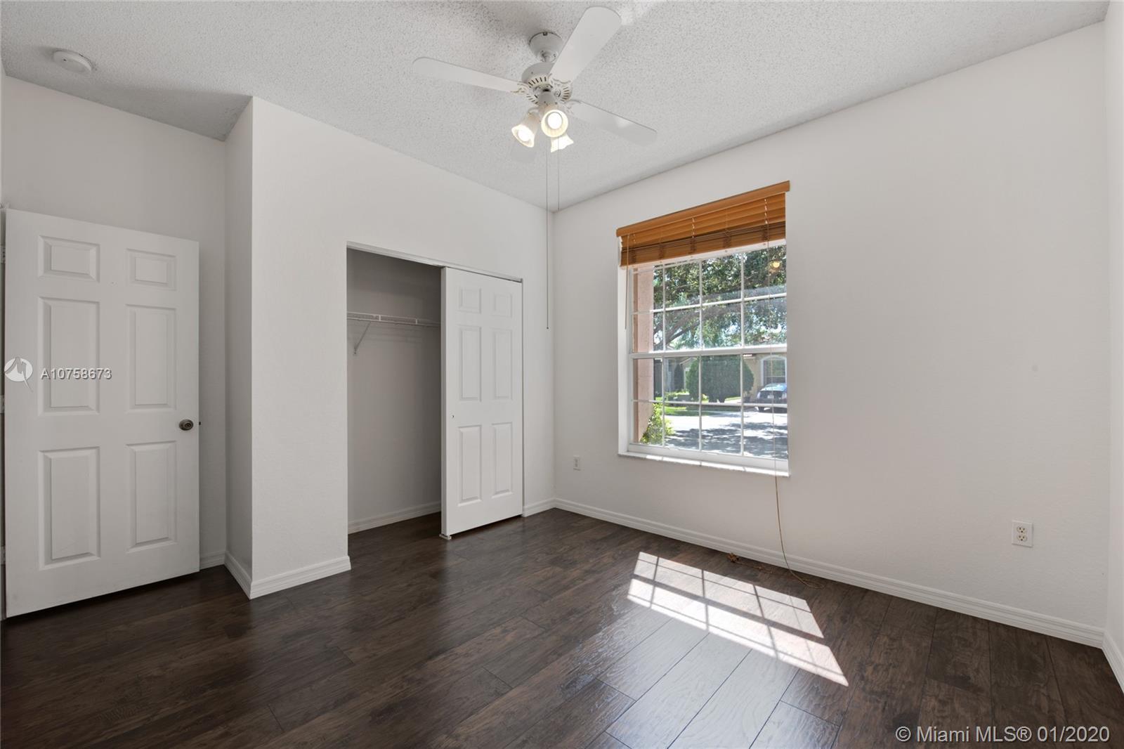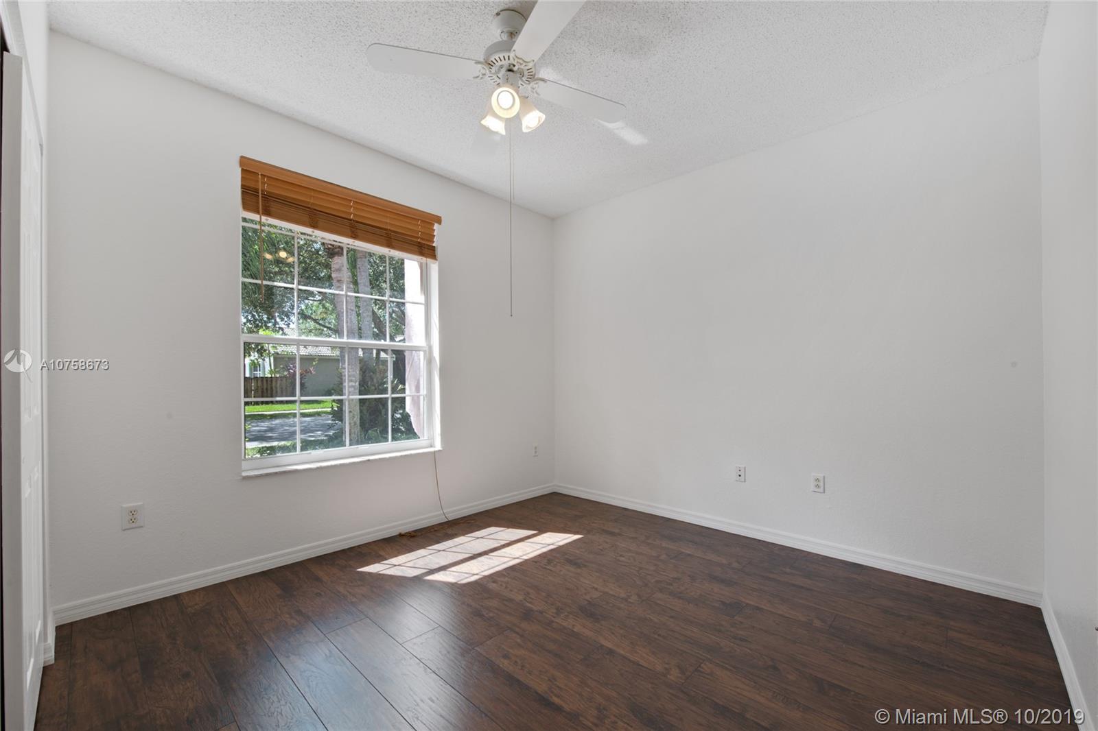 This charming 3 bedroom, 2 bathroom home ideally located in the best location in Weston. Enjoy gorgeous water views in this lakefront family home in the desirable gated community-friendly Emerald Estates just 5 minutes away from I-75. This turnkey home features stainless steel appliances & granite kitchen counter-tops, renovated bathrooms, wood flooring in all rooms and freshly painted interior. As a bonus, you are getting a converted garage to be used as an office or 4th bedroom. Association includes lawn & landscaping, basic cable, alarm monitoring, community pool, playground, exercise room & guard gate with 24-hour security patrolling in golf carts. Great community and amenities for the whole family to enjoy!