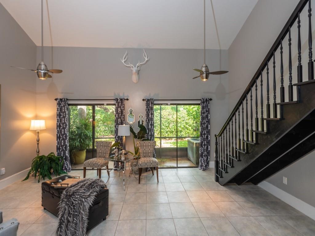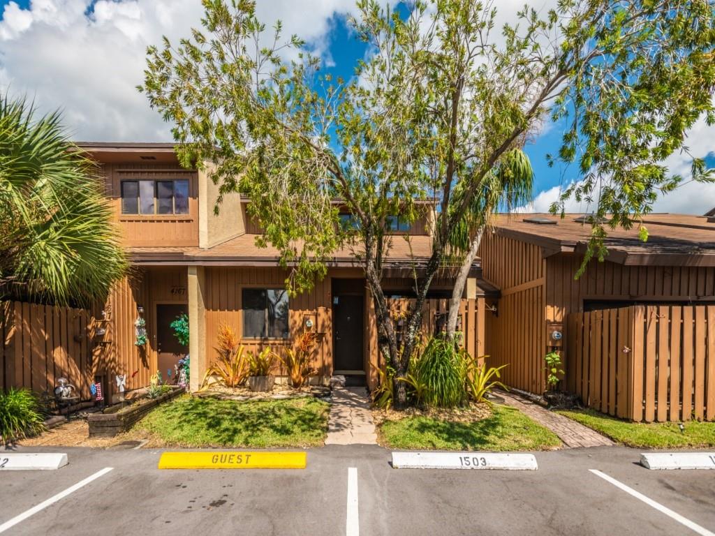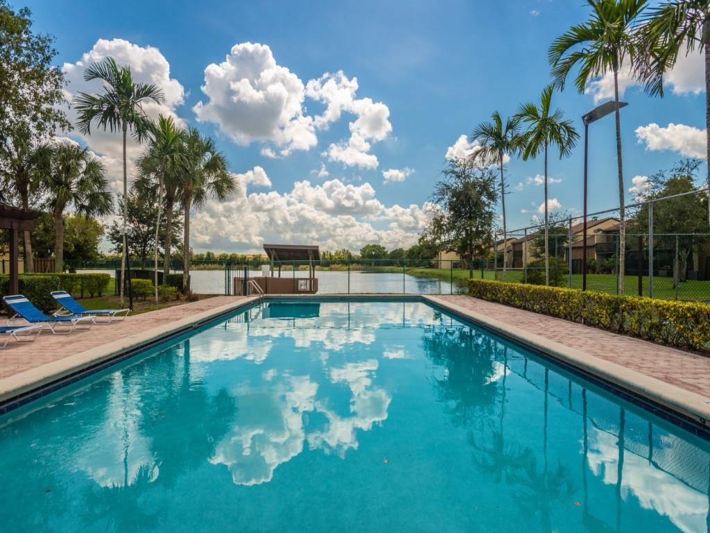 Style and elegance awaits you in this beautiful townhome. Updated kitchen and baths and freshly painted. High ceiling in living room, office and both bedrooms. Large master suite upstairs with marble shower, walk-in closet. 1 bedroom on first floor with lake view. Fabulous community with great pool right across the street over looking lake and tennis court too. Lots of guest parking right across the street too. Great location with 7 parks with in 5 min drive that has live oaks canopying the walking trails and much more to enjoy this wonderful South Florida lifestyle. All the shopping within 5 minute drive also. Beaches are a short drive away about 10 miles. Great schools and colleges. Davie has it all!! Bring your DOGS too!!