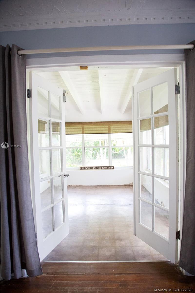 Charming home in East Hollywood with huge yard. Architectural details include hardwood floors, archways, dental crown molding & French doors. Kitchen has granite countertops, glass-front upper cabinets & gas cooking. Remodeled bathroom has new tiles & fixtures. Large bedrooms: Master bedroom has generous sitting area, walk-in plus 2nd closet and en-suite bath. Huge den with vaulted ceiling could easily be converted to a 3rd bedroom. Separate dining room. French doors lead to Florida Room with beamed ceiling & 3 walls of windows looking to patio and fenced back yard. Rear alley for utilities/services/access. Driveway for 2 cars. New roof, A/C, water heater & alarm! Close to Hollywood Lakes, Hollywood Beach, Downtown Hollywood (Young Circle ArtsPark) and Gulfstream Village.