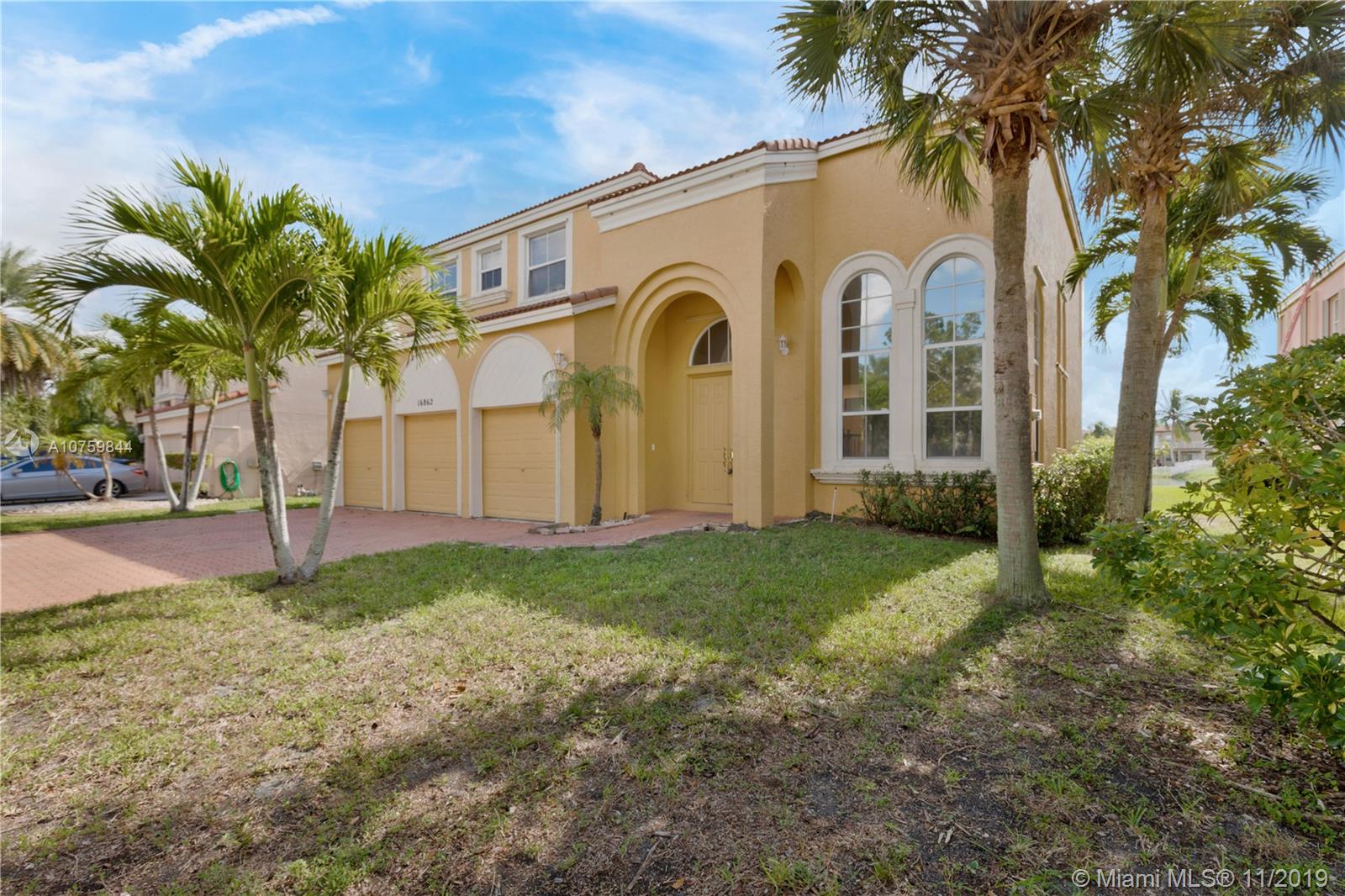 Great opportunity to own a home in Riviera Isles, LAKE FRONT! Very spacious, 4/3 with a big yard with enough room for a new pool. The house features an open kitchen area, full bedroom and bathroom downstairs, three bedrooms and two bathrooms upstairs and very open and bring living areas with views of the lake. The yard is open and spacious with lots of greenery. The house also features a 3 car garage. Riviera Isles is located in Miramar and it is a private community and excellent neighborhood near great schools, shops, restaurants and more. Full time security for peace of mind. This home won't last at this great price, please see broker's remarks for sale information.