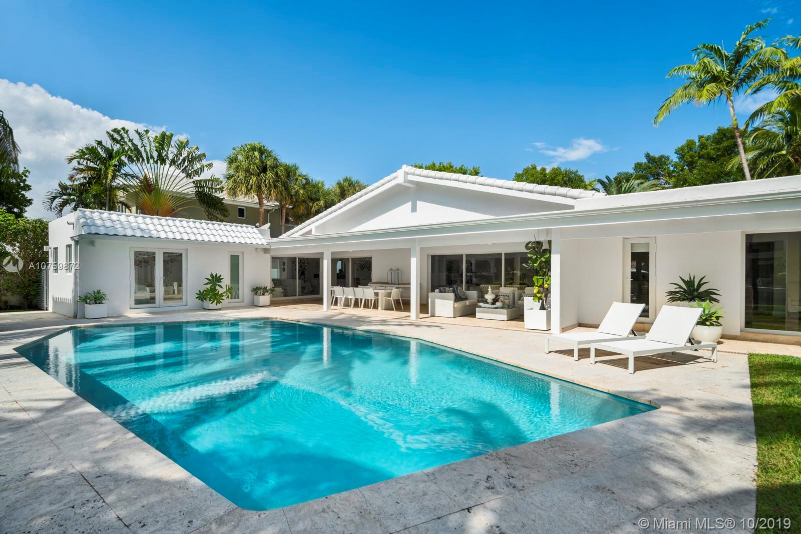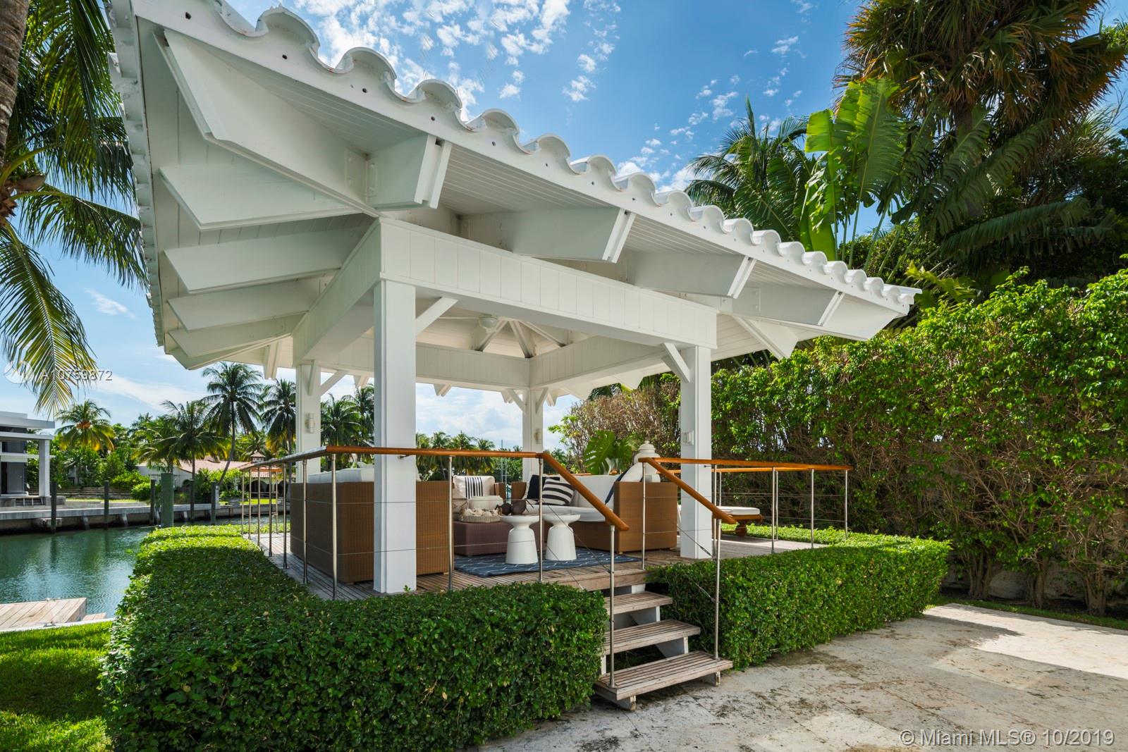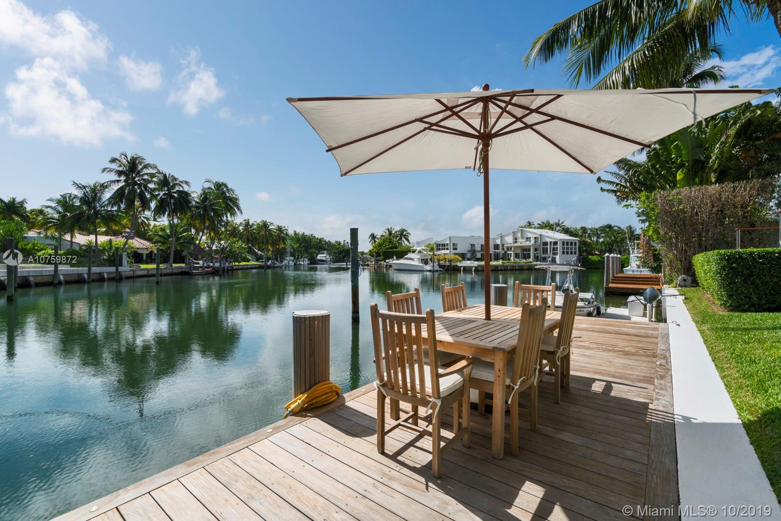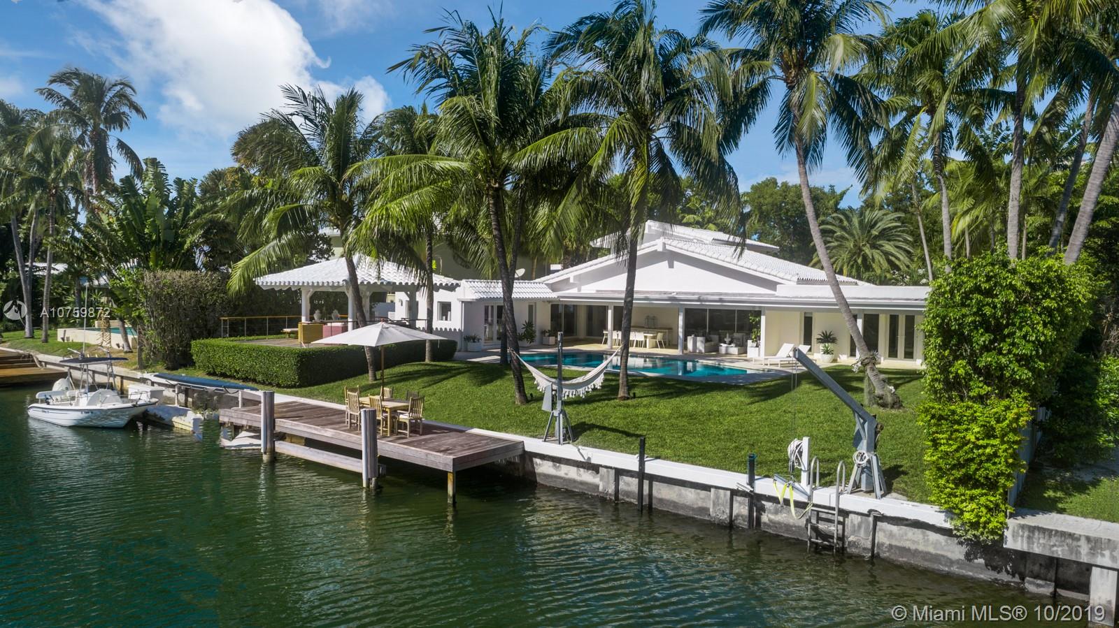 Stunning, magazine quality waterfront home on the exclusive & idyllic island of Key Biscayne. Enjoy water views from light-filled living spaces w/ soaring, vaulted wood-beamed ceilings, a striking white color palette & a modern vibe throughout. Updates include new: limestone flooring, spa-like baths, impact glass, interior & exterior Sonos sound system, new dock w/adjoining floating dock & new stone terrace & pool deck. European-style kitchen features black granite countertops, Viking appliances & breakfast area. Lush, tropical garden surrounds the resort-like outdoor space that offers an expansive covered terrace, pool & gazebo w/ spectacular sunset views. Protected, private dock w/davits & no bridges to the bay. Direct ocean access, 180’ turning basin at the head of the canal.