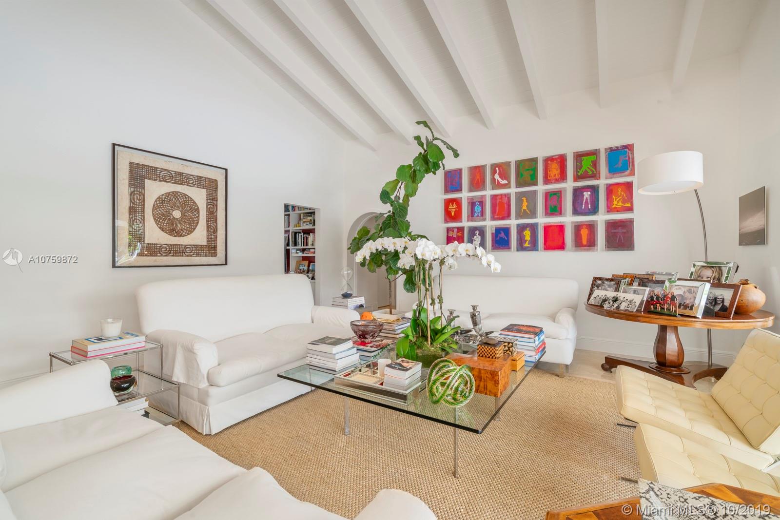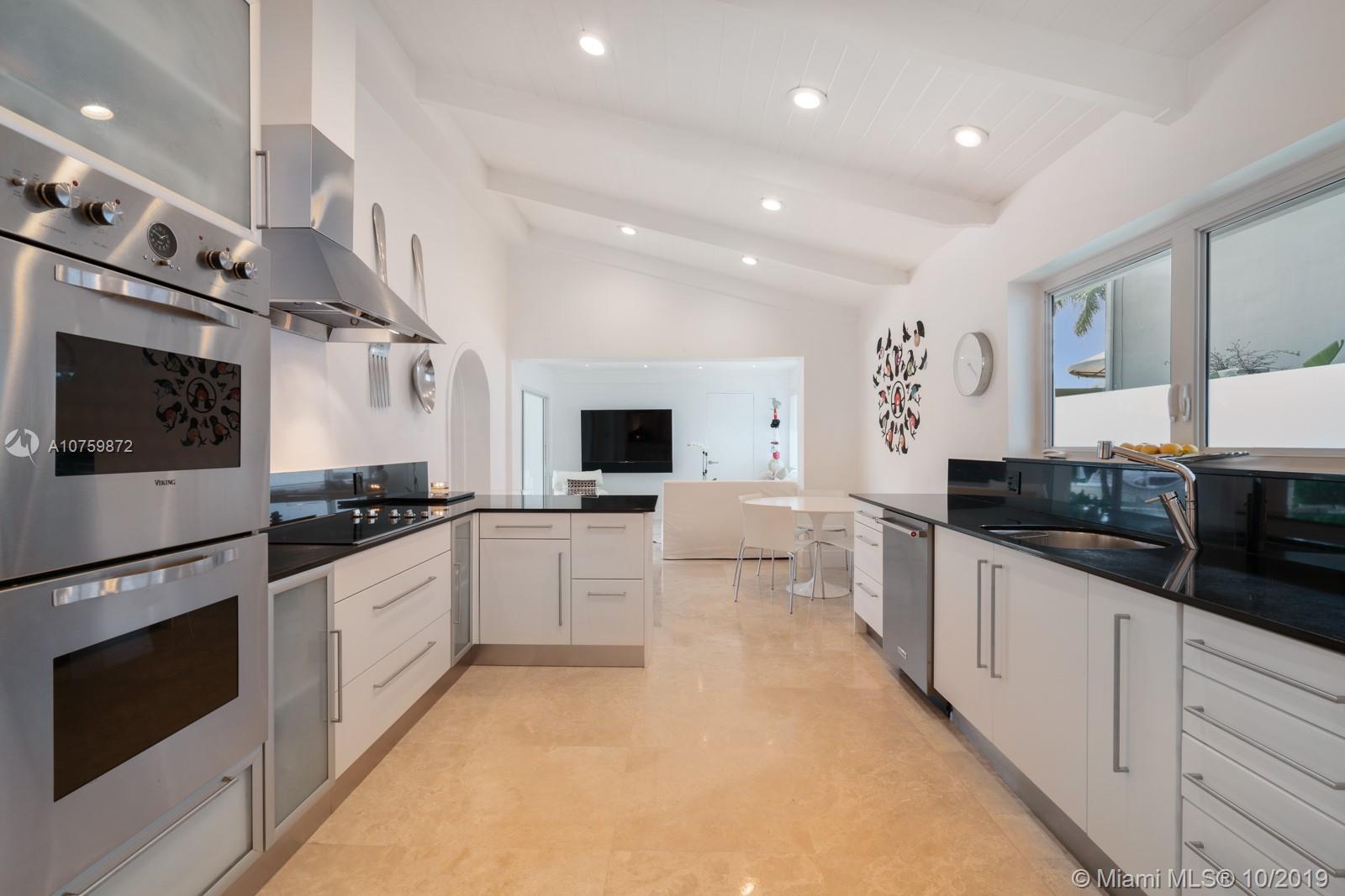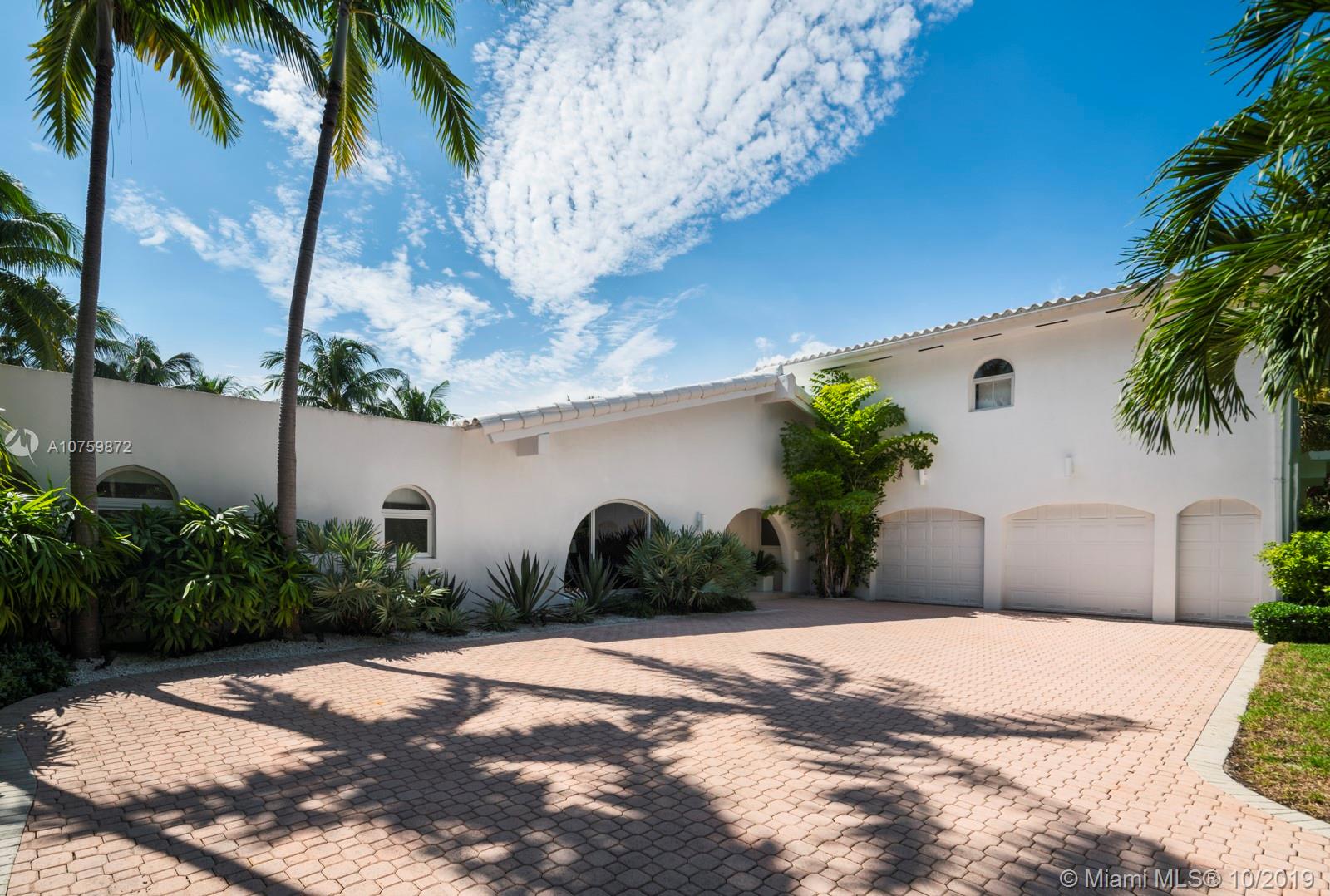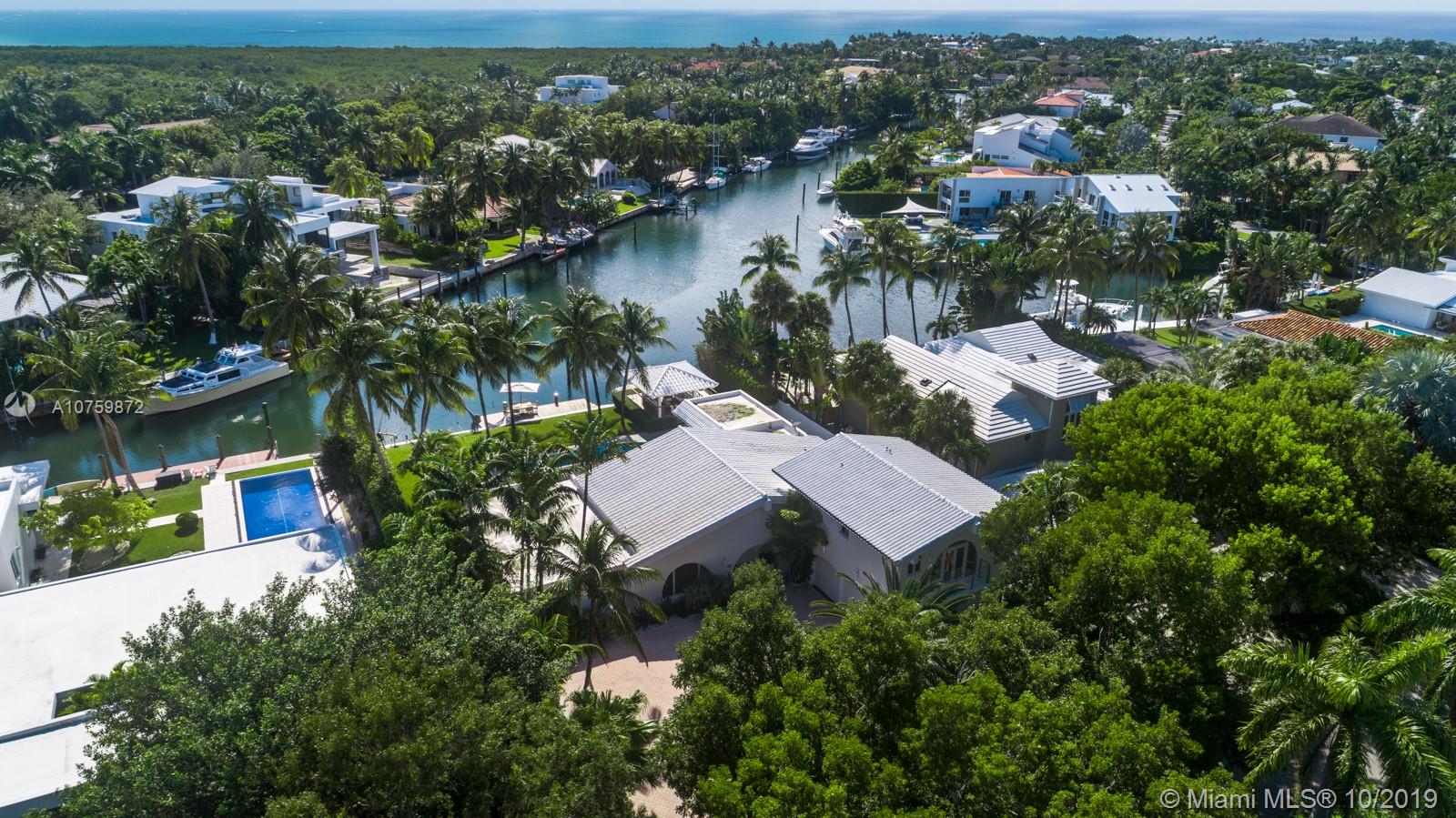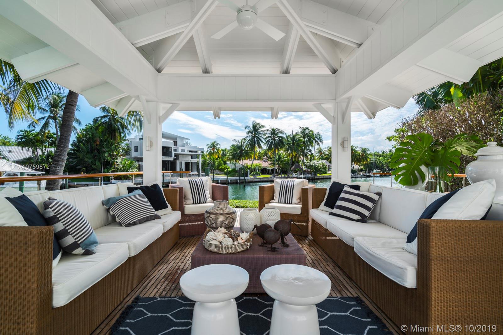 Stunning, magazine quality waterfront home on the exclusive & idyllic island of Key Biscayne. Enjoy water views from light-filled living spaces w/ soaring, vaulted wood-beamed ceilings, a striking white color palette & a modern vibe throughout. Updates include new: limestone flooring, spa-like baths, impact glass, interior & exterior Sonos sound system, new dock w/adjoining floating dock & new stone terrace & pool deck. European-style kitchen features black granite countertops, Viking appliances & breakfast area. Lush, tropical garden surrounds the resort-like outdoor space that offers an expansive covered terrace, pool & gazebo w/ spectacular sunset views. Protected, private dock w/davits & no bridges to the bay. Direct ocean access, 180’ turning basin at the head of the canal.