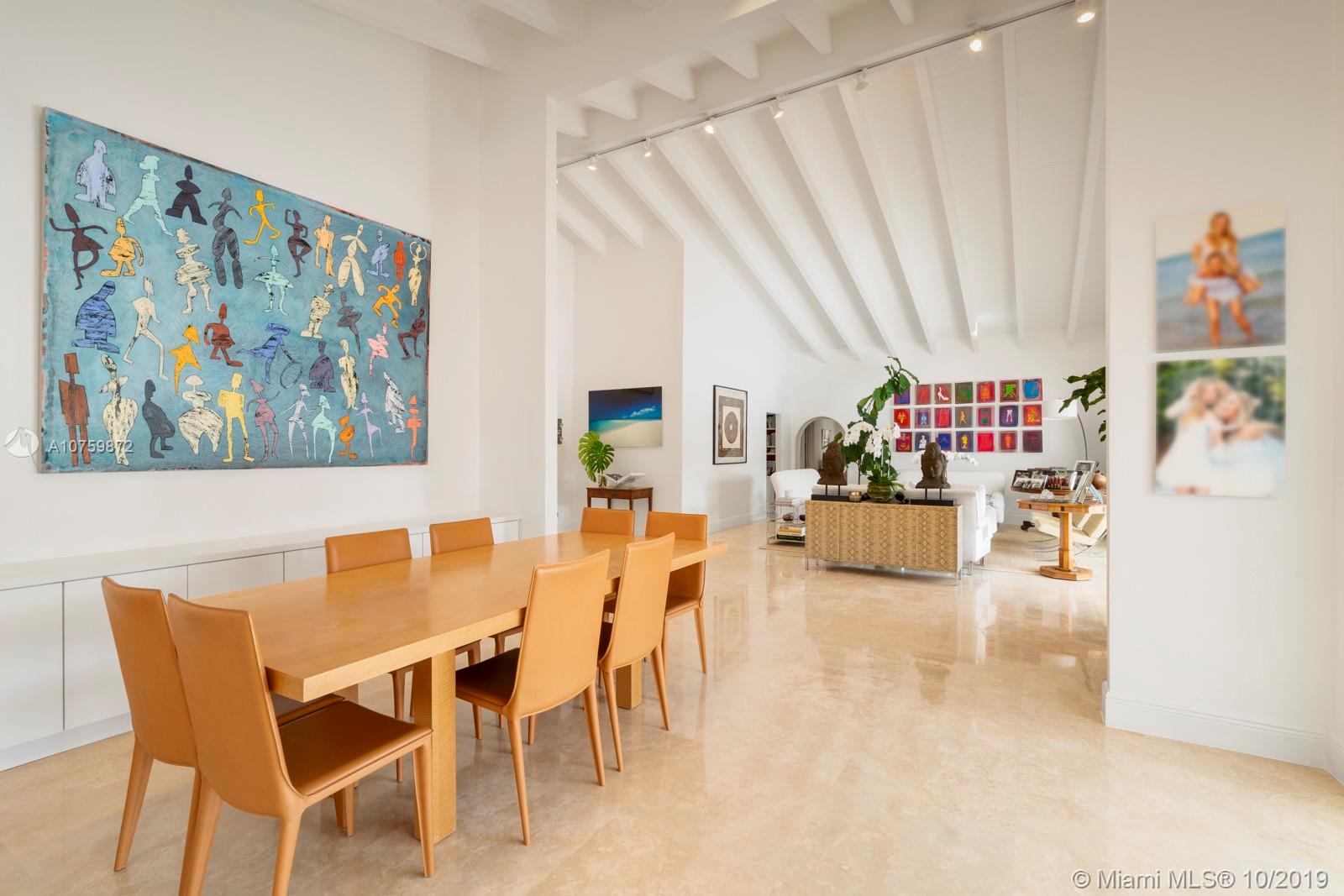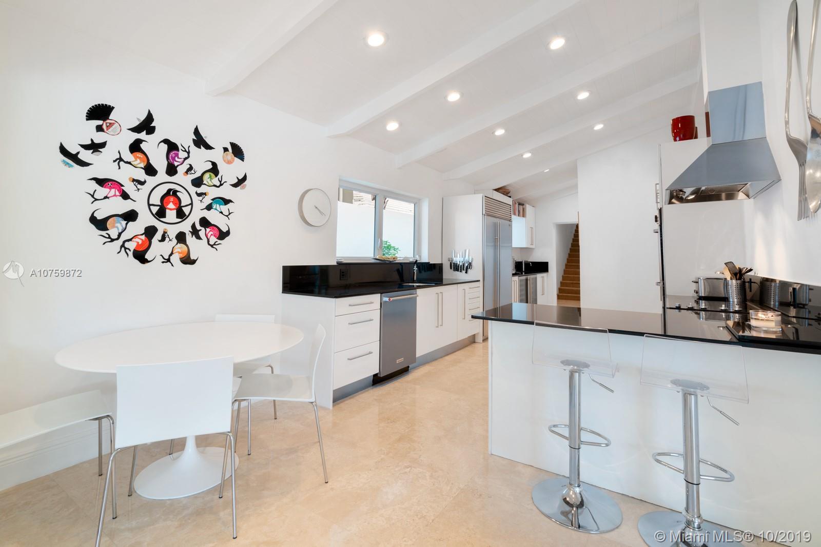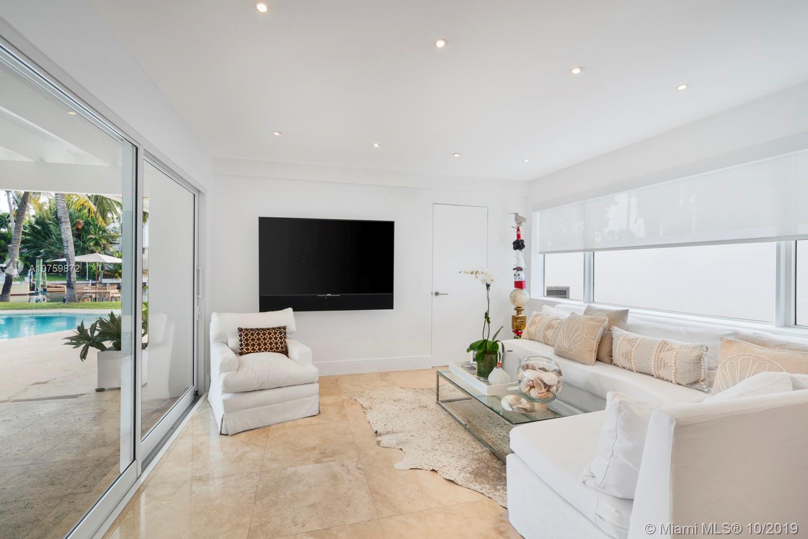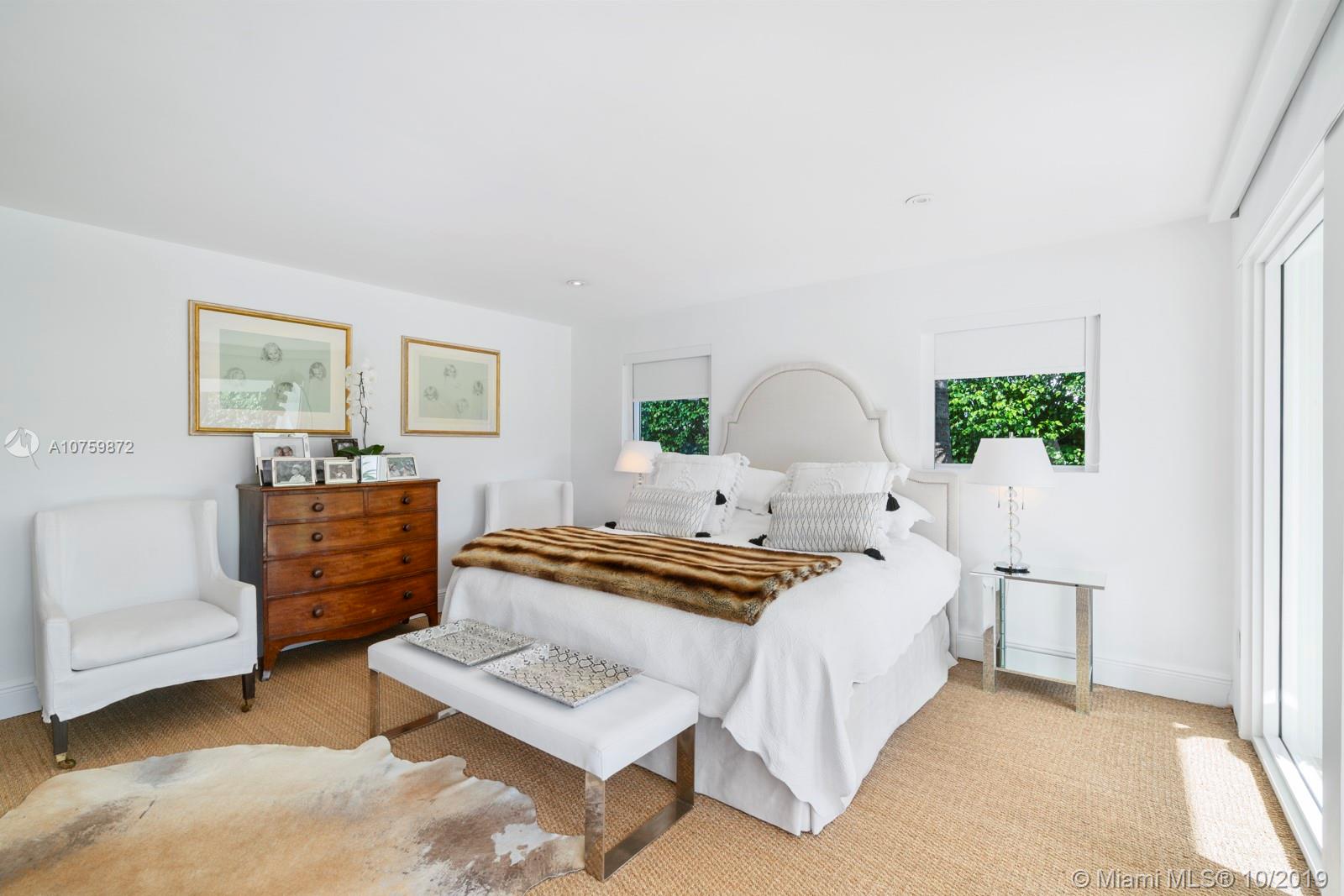 Stunning, magazine quality waterfront home on the exclusive & idyllic island of Key Biscayne. Enjoy water views from light-filled living spaces w/ soaring, vaulted wood-beamed ceilings, a striking white color palette & a modern vibe throughout. Updates include new: limestone flooring, spa-like baths, impact glass, interior & exterior Sonos sound system, new dock w/adjoining floating dock & new stone terrace & pool deck. European-style kitchen features black granite countertops, Viking appliances & breakfast area. Lush, tropical garden surrounds the resort-like outdoor space that offers an expansive covered terrace, pool & gazebo w/ spectacular sunset views. Protected, private dock w/davits & no bridges to the bay. Direct ocean access, 180’ turning basin at the head of the canal.