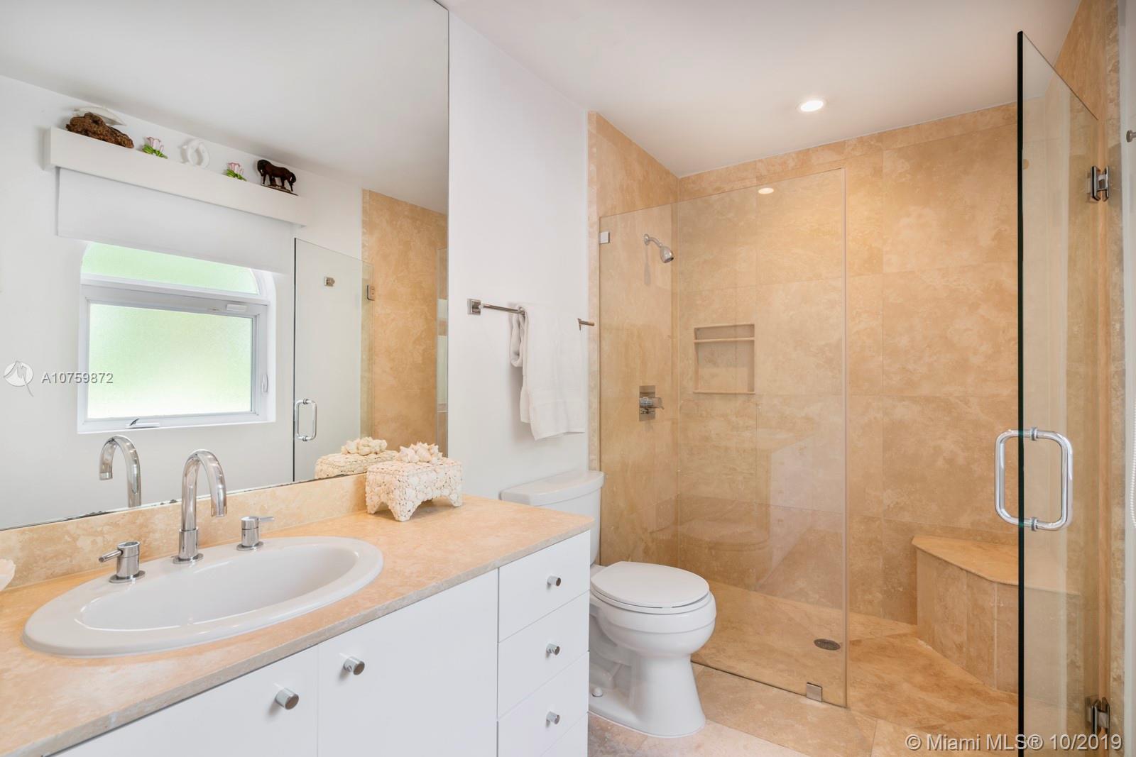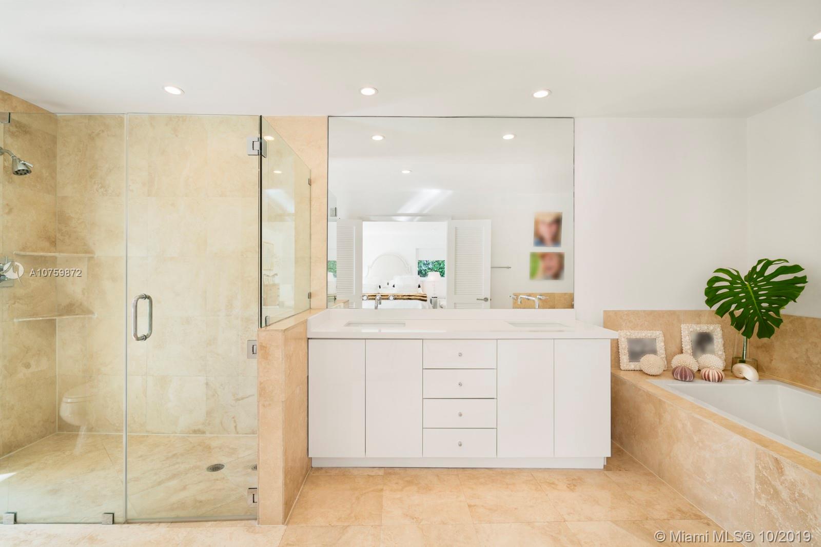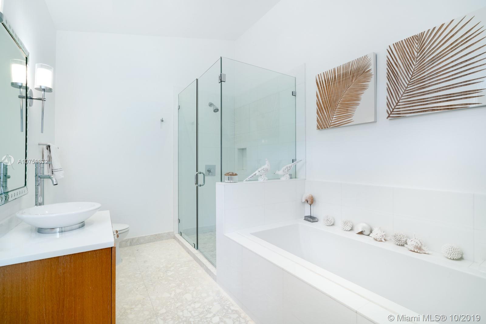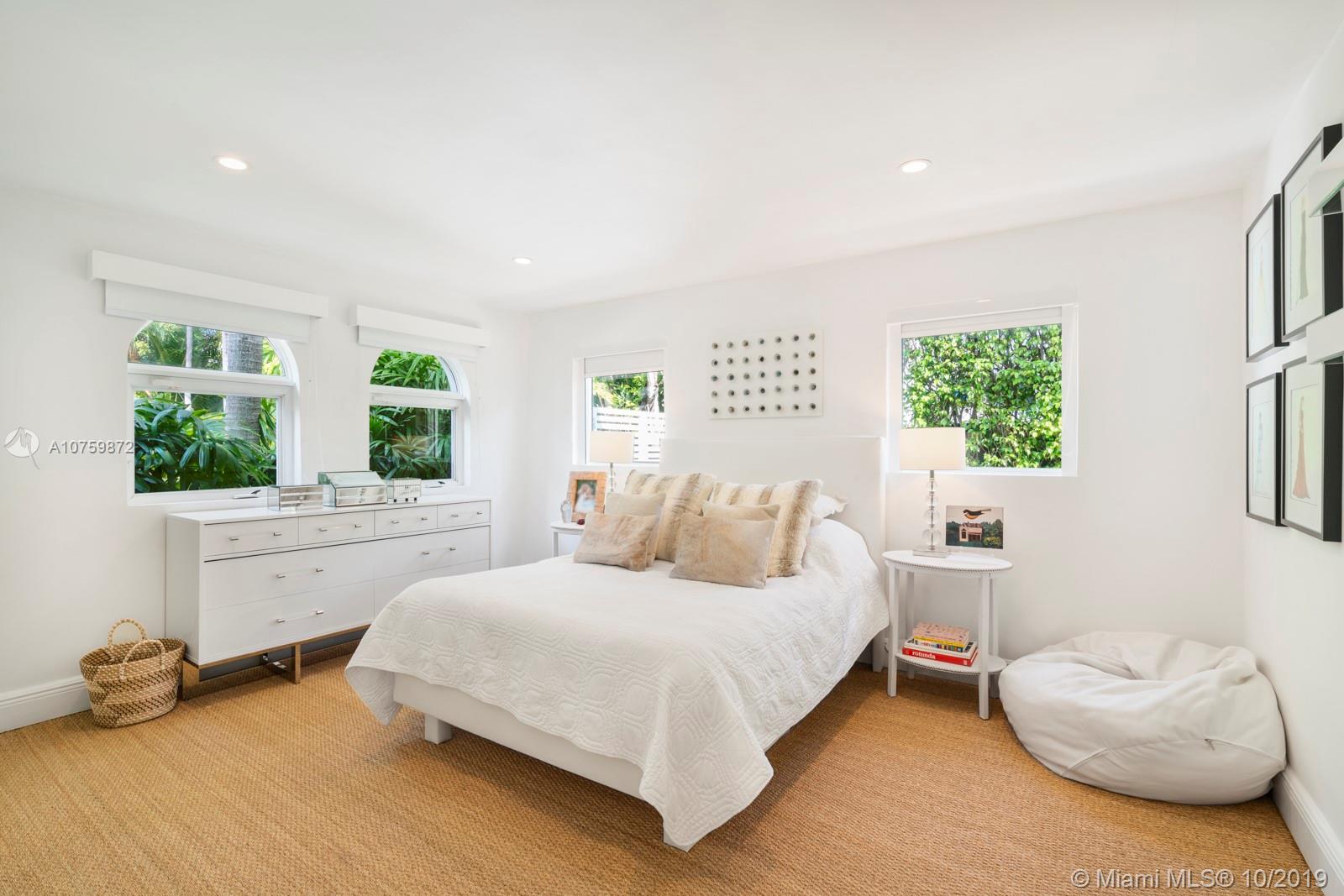 Stunning, magazine quality waterfront home on the exclusive & idyllic island of Key Biscayne. Enjoy water views from light-filled living spaces w/ soaring, vaulted wood-beamed ceilings, a striking white color palette & a modern vibe throughout. Updates include new: limestone flooring, spa-like baths, impact glass, interior & exterior Sonos sound system, new dock w/adjoining floating dock & new stone terrace & pool deck. European-style kitchen features black granite countertops, Viking appliances & breakfast area. Lush, tropical garden surrounds the resort-like outdoor space that offers an expansive covered terrace, pool & gazebo w/ spectacular sunset views. Protected, private dock w/davits & no bridges to the bay. Direct ocean access, 180’ turning basin at the head of the canal.