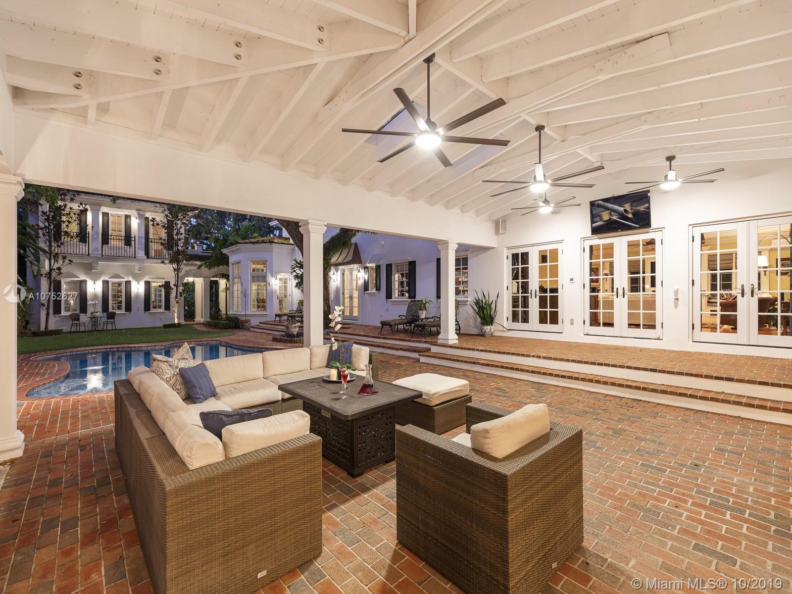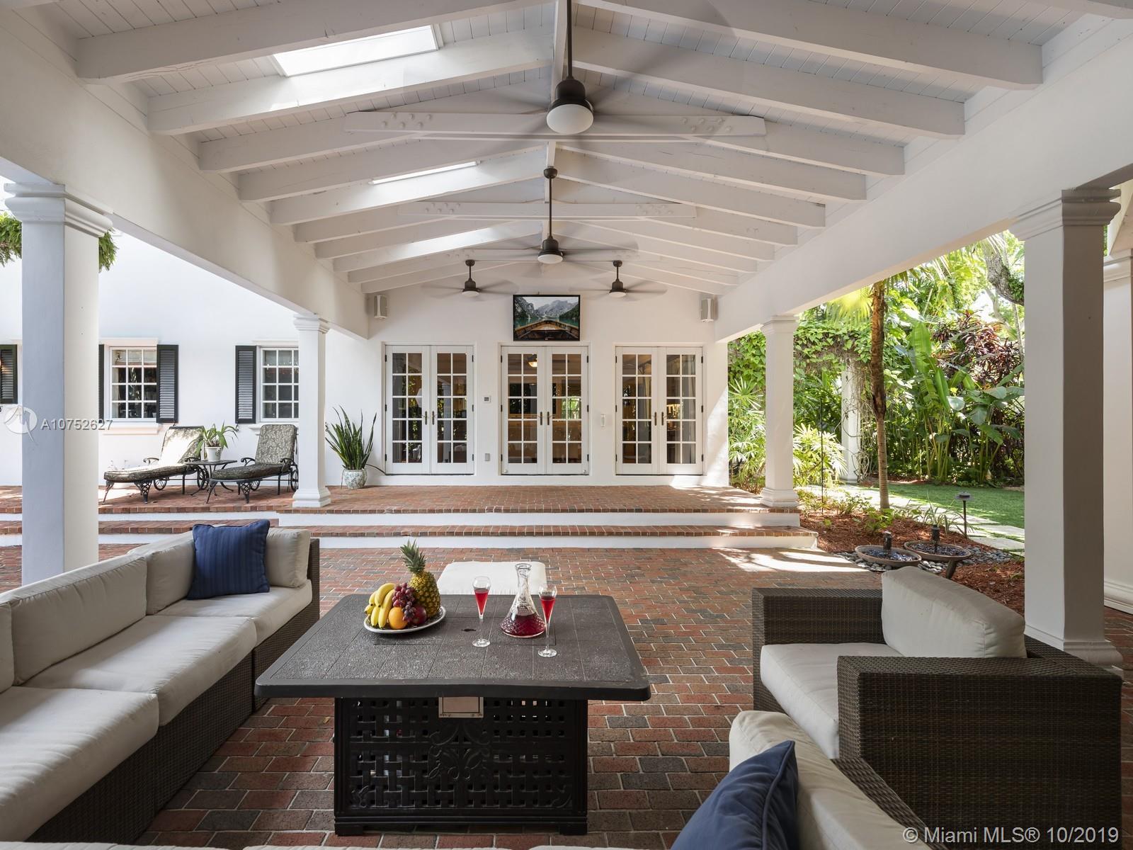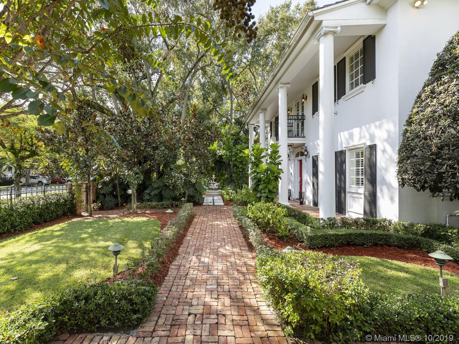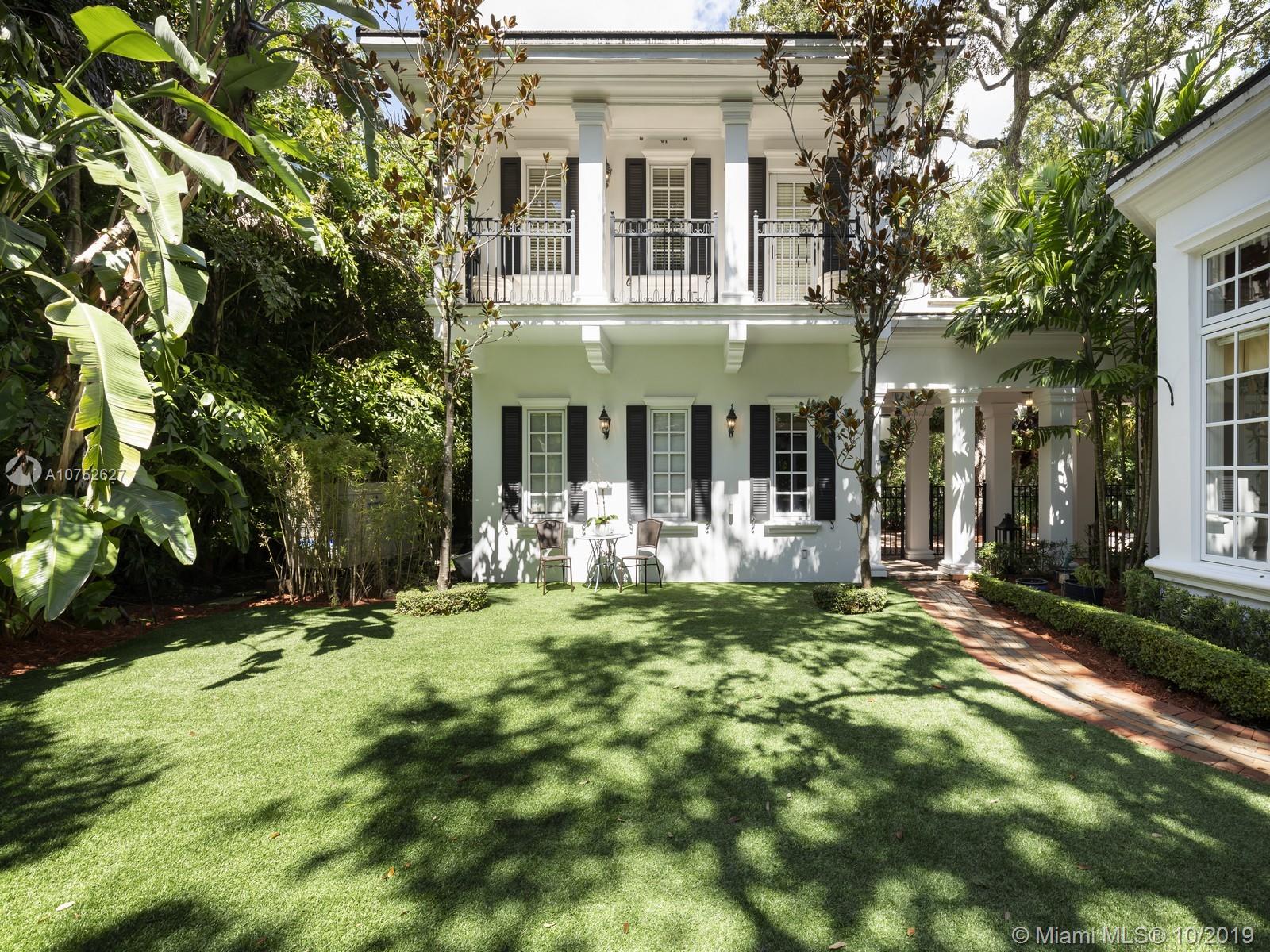 Poised to charm this Grande Dame two story colonial style architecture is everything the most discerning buyer could desire, and more. Renovated to perfection w/ the highest quality finishes: Rich custom mill work in the family room, library and kitchen, Viking gas stove, expansive outdoor entertainment areas, indoor & outdoor fireplaces, wood floors, sweeping staircase, library/den/kids study room. Enjoy decadent soirées & wine tastings in the exquisite 1,500 bottle wine cellar. Inviting tile pool, separate two story guest house, two car garage connected to the main house via a delightful covered breezeway through the garden. Completely walled, fenced and gated with the latest security system throughout. Mature oaks adorn this home in the most coveted residential area in Miami, So.Gables.