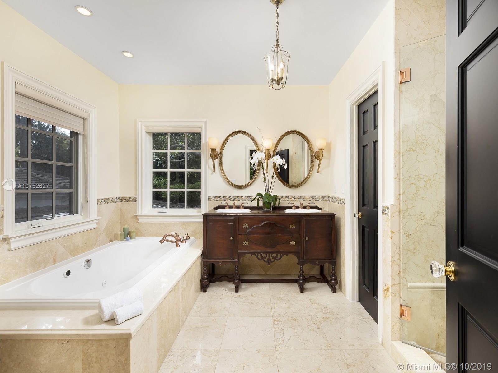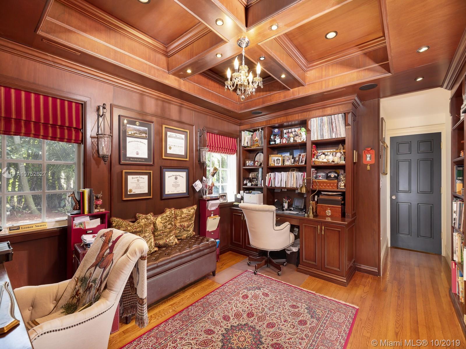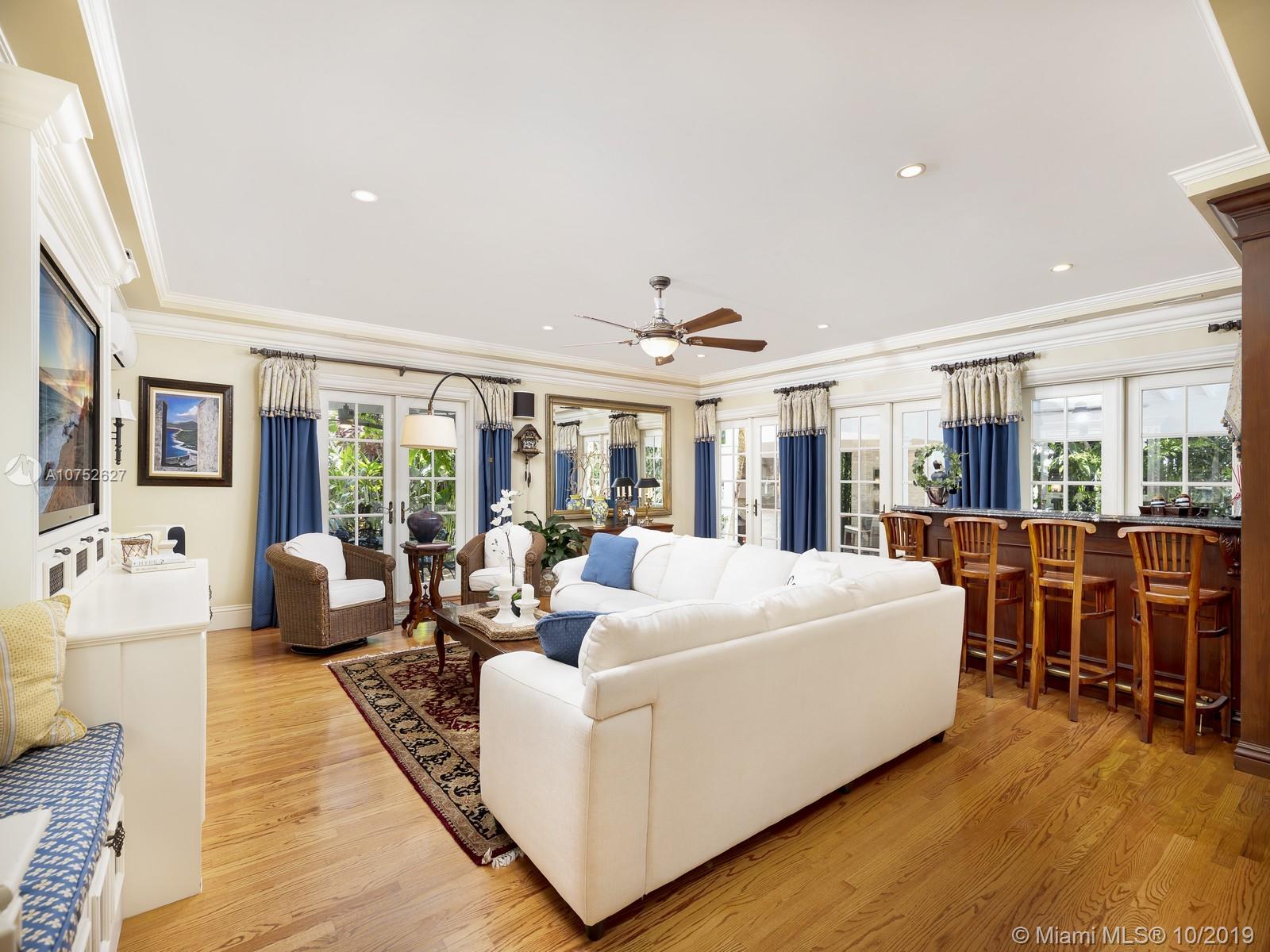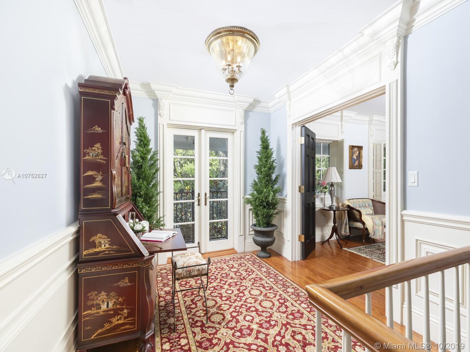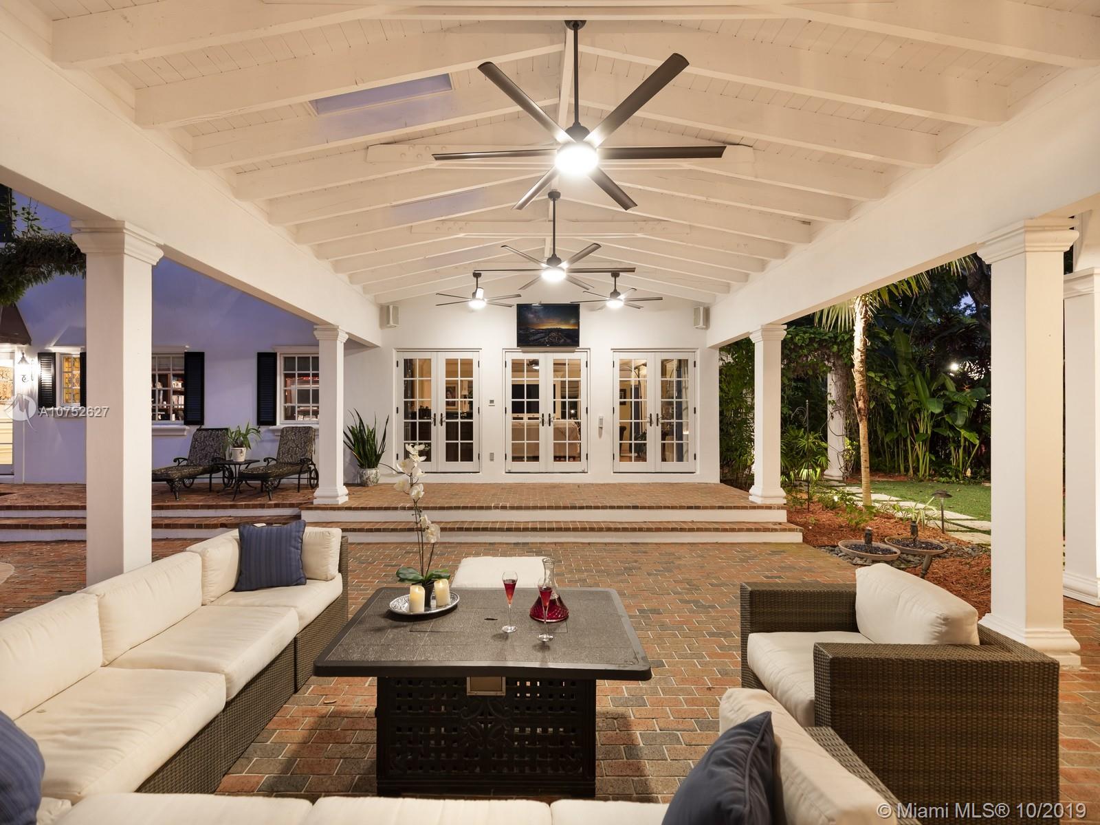 Poised to charm this Grande Dame two story colonial style architecture is everything the most discerning buyer could desire, and more. Renovated to perfection w/ the highest quality finishes: Rich custom mill work in the family room, library and kitchen, Viking gas stove, expansive outdoor entertainment areas, indoor & outdoor fireplaces, wood floors, sweeping staircase, library/den/kids study room. Enjoy decadent soirées & wine tastings in the exquisite 1,500 bottle wine cellar. Inviting tile pool, separate two story guest house, two car garage connected to the main house via a delightful covered breezeway through the garden. Completely walled, fenced and gated with the latest security system throughout. Mature oaks adorn this home in the most coveted residential area in Miami, So.Gables.