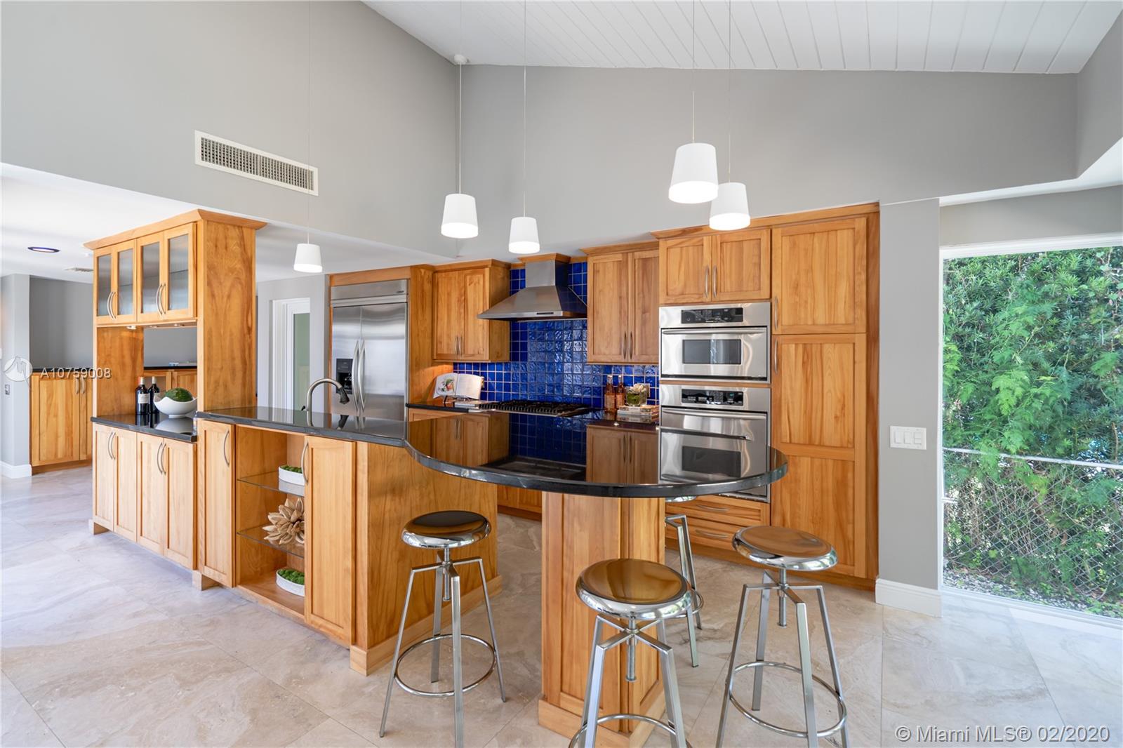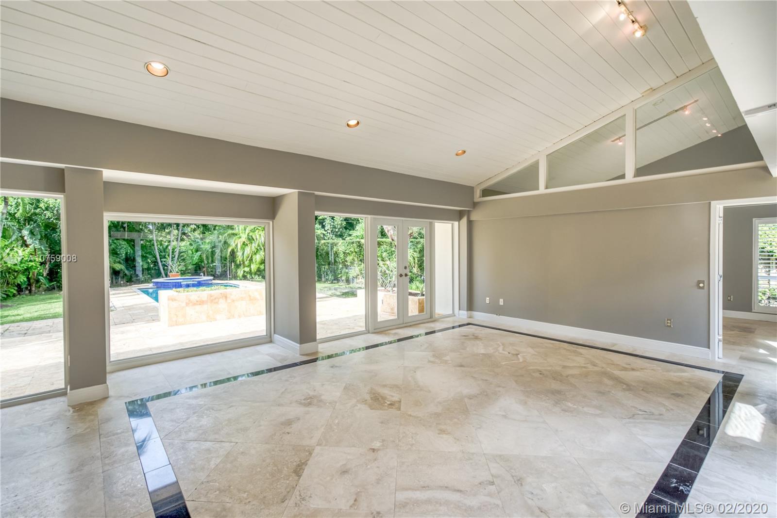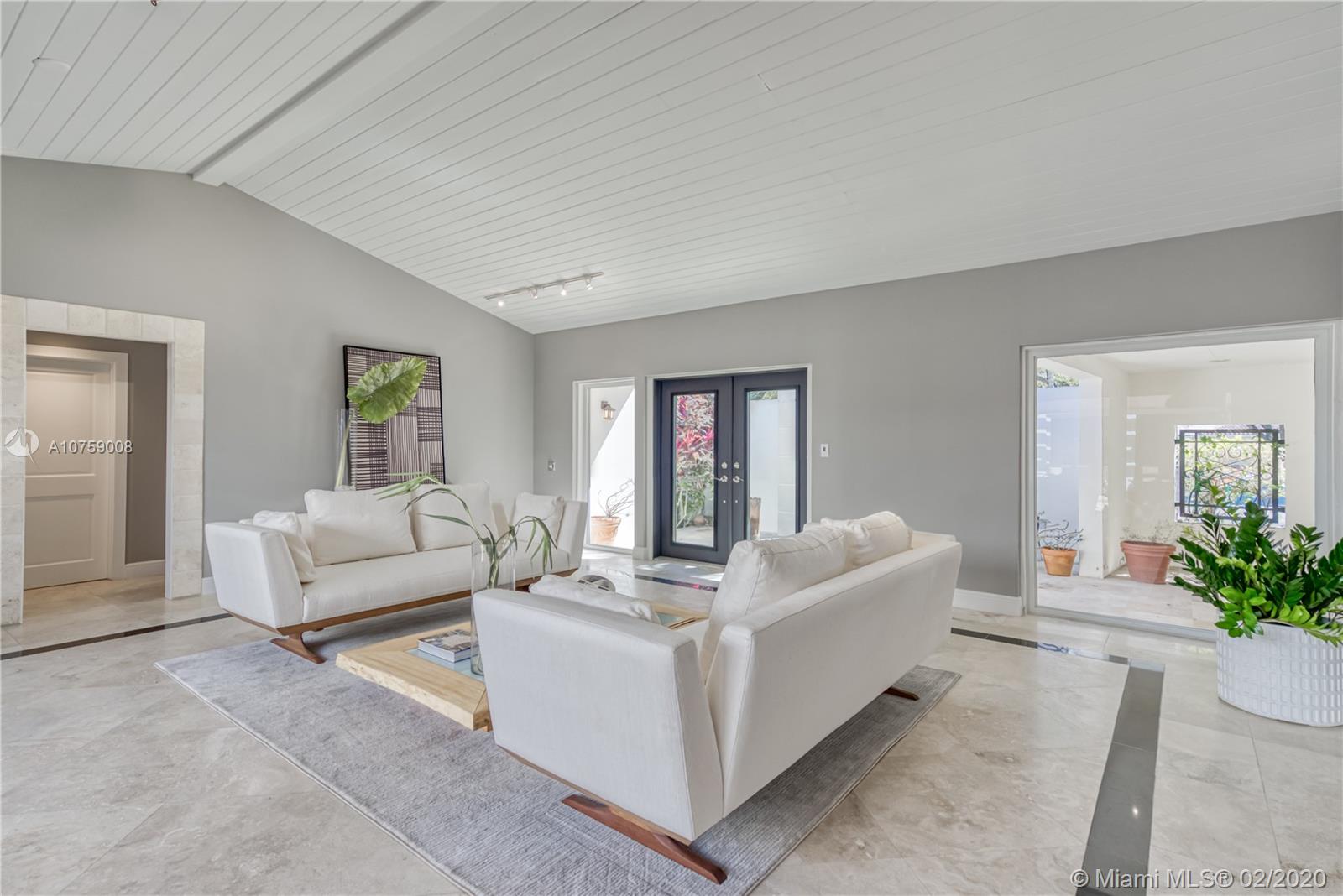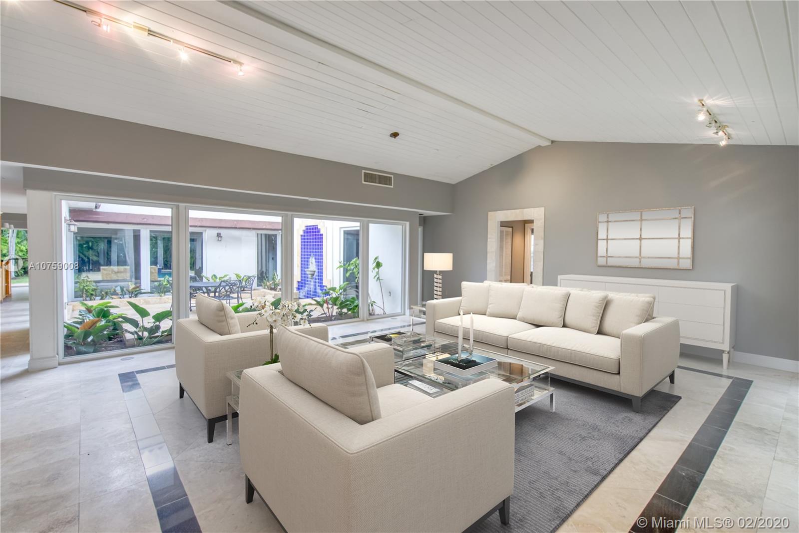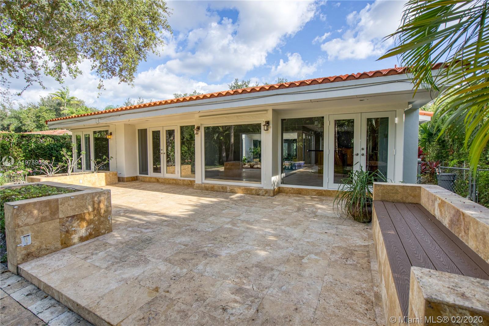 Gorgeous Coral Gables home with newly installed impact windows on an oversized 14,263 SF lot. This residence offers a spacious, light-filled floor plan with an open roof courtyard, oversized master bedroom with direct access to the pool area and three additional bedrooms with en-suite bathrooms. The kitchen offers a chef style gas range, wine cooler and extra storage custom made cabinetry. Huge backyard with oversized pool, which feels like a tropical oasis!!