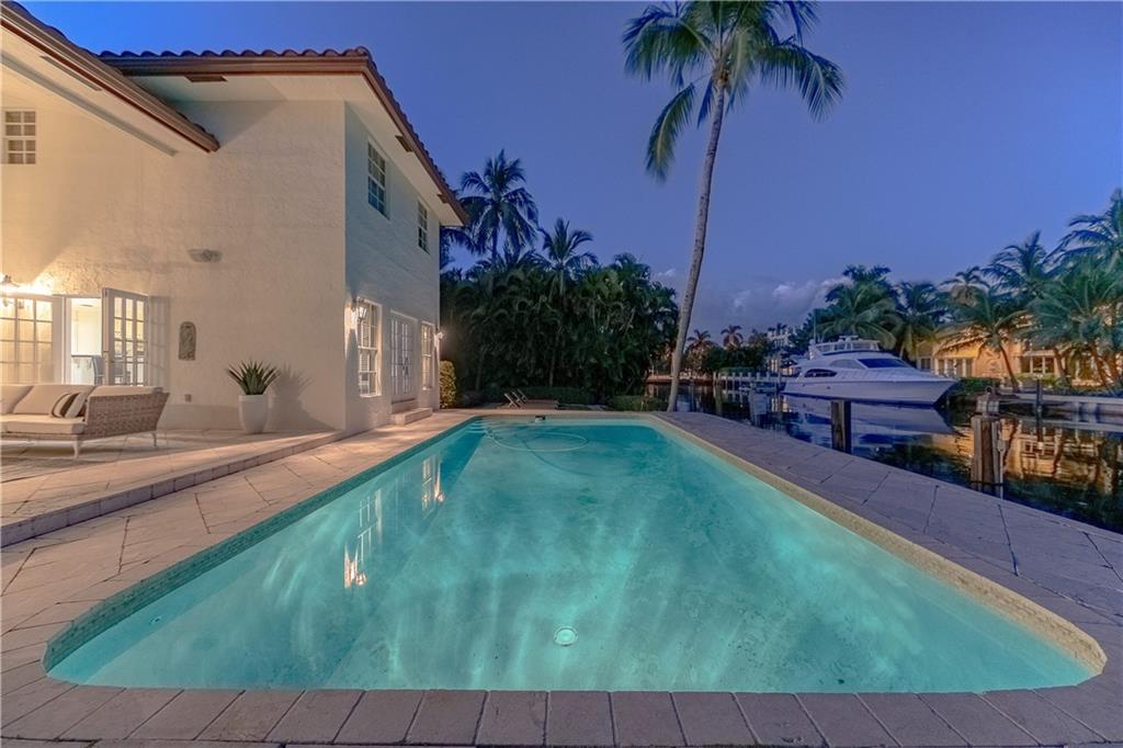 Magnificent waterfront estate recently renovated! Newly painted many updates & designer furnishings thru-out (furnishings not included in purchase price). A classic Mediterranean reads soft modern/transitional. Looking east on 100' of deep-draft waterfront minutes from ocean. Backyard features full-length waterside terrace & grounds that surround a sun-splashed pool, w/ great outdoor entertainment space. Vaulted ceilings as you enter thru arched hardwood doors w/ French doors leading to pool & patio from living room. Downstairs master suite w/ pool access & amazing views. Formal office on 1st floor, 3 bedrooms + spacious loft upstairs. Circular Chicago brick driveway 2-car garage. "Las Olas Living at it's best". Enjoy shopping, restaurants, beaches & minutes to Ft. Lauderdale Int'l Airport