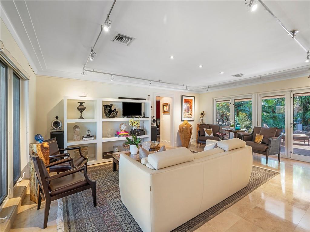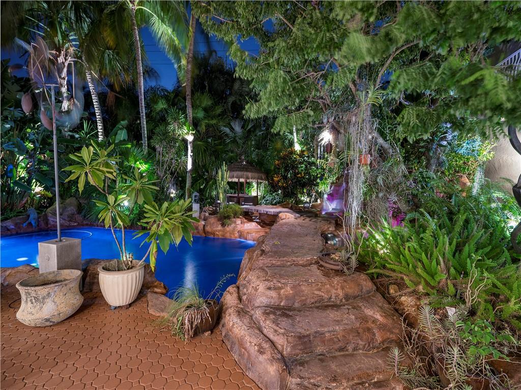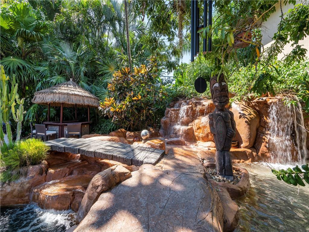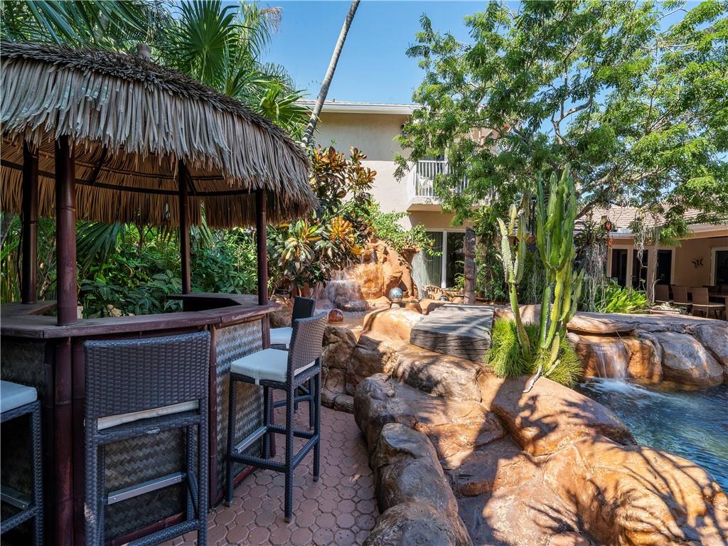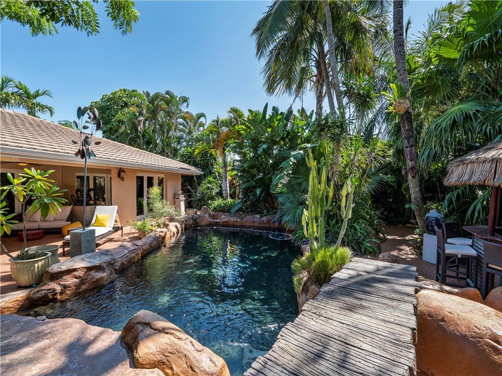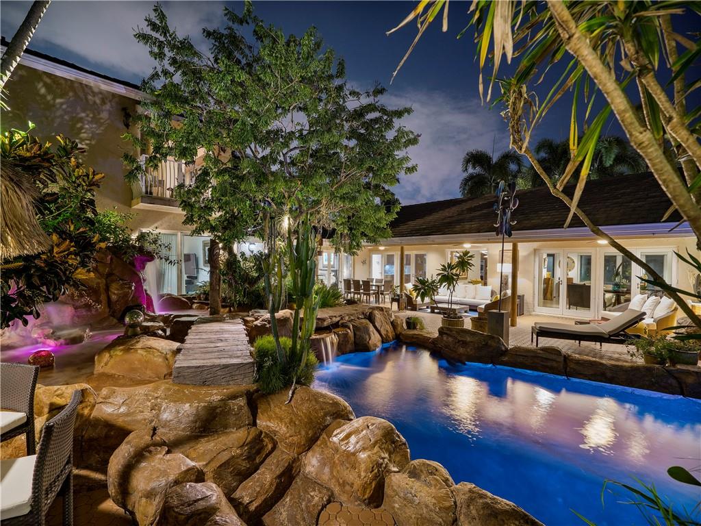 You will be swept away when you enter this exceptional resort-style residence situated on an oversized lot in Coral Ridge Country Club. This outstanding home features stunning indoor living spaces that flow seamlessly to an outdoor paradise. Throughout the residence you will find luxurious living area designed for comfort and entertainment. Superior finishes, chef's kitchen, split bedroom floor plan, custom closets, media/home theater room, impact windows and doors, and custom a/c garage. Outside boasts a tropical pool paradise with waterfalls, heated pool, hot tub, tiki bar, grill and intimate walkways with lush landscape filled with exotic orchids. The two-story guest residence with separate entrance is not to be missed! This impeccable estate home is priced to sell. See it today!