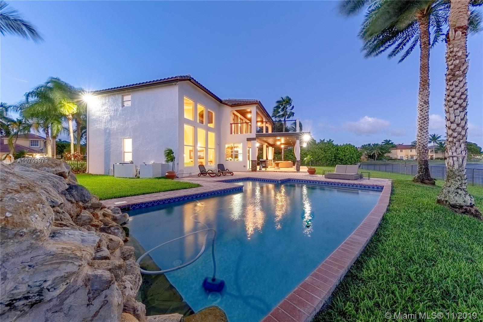Proudly presenting the best home in Las Brisas / Vizcaya community. Absolutely stunning 5 bedroom w/ extra room (den) waterfront pool home overlooking breath taking lake. Never before offered to the public this is the BEST lot on the lake. Home has been freshly painted inside & out.. Gorgeous new impact glass doors make way for the entertaining. Enjoy your rock waterfall pool or enjoy your South Florida lifestyle from my your luxurious outside area. Large master suite comes with a massive master balcony / deck. Home fully protected for a hurricane. BRAND NEW ROOF. Gourmet kitchen fit for a chef. Updated bathrooms. New lighting & fans are found throughout. Lush landscaping on oversized lot provides complete privacy. There is NO HOME in the community like this one.