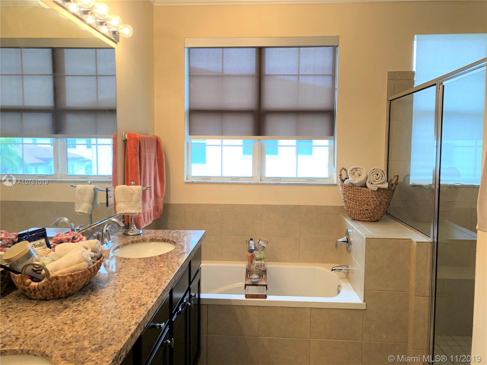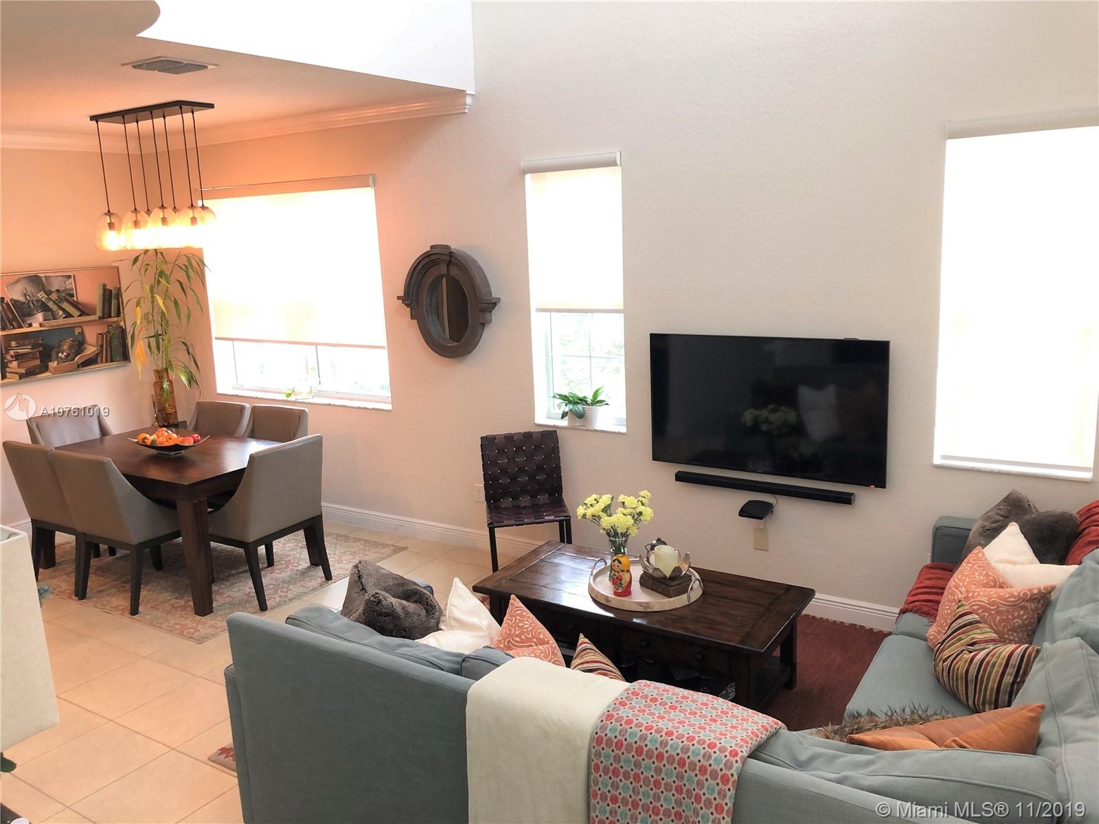 Beautiful Corner 3 bedroom 3 bathroom townhouse built in 2014 with upgraded espresso kitchen cabinets with granite countertops, tile throughout, hardwood floors in the master bedroom, crown molding, custom window shades, laundry room on the main floor, tri-level with nice size rooms, and more. There is one bedroom conveniently located on the first floor. This gated community is centrally located near the turnpike and I75. Must see!!!