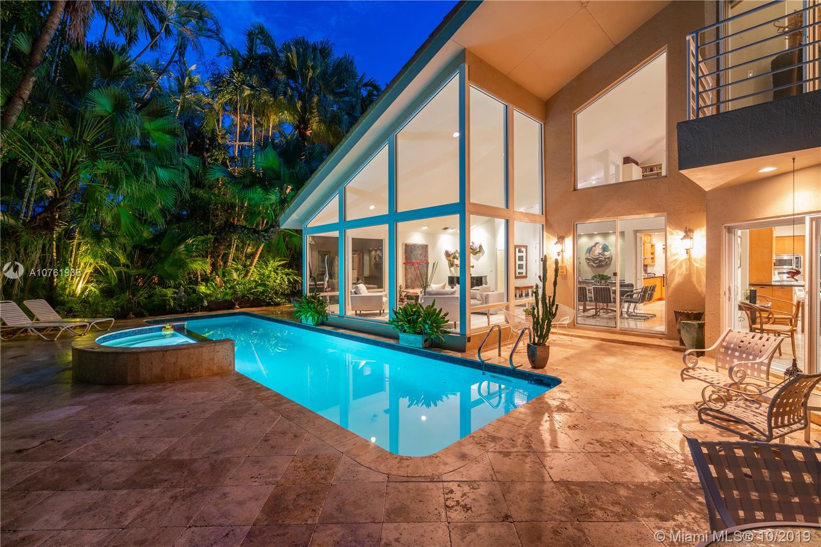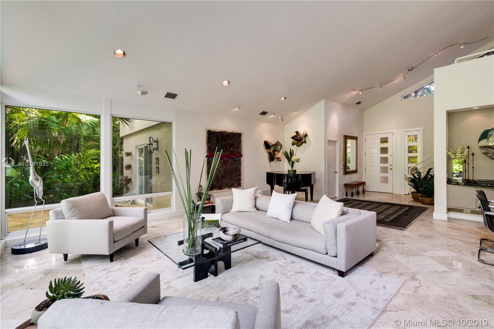 The allure of Coconut Grove is prevalent in this stunning home on one of South Coconut Grove’s most magical streets. A gated entry leads to a serene setting filled with an abundance of greenery, orchids, bougainvillea and the gentle sound of a waterfall and koi pond. Step inside and be greeted by dramatic walls of glass overlooking a tropical paradise in this exceptional residence. A gorgeous cook’s kitchen with custom cabinetry, Sub Zero & Miele appliances and tons of storage, wraps around to a wet bar and cozy, inviting family room. Besides the 3 bedrooms, there is a handsome library with gorgeous built-ins and a small bonus room adjoining the kitchen. The balcony off the oversized, second-floor master overlooks the lap pool & garden,your own personal Shangri-La. A Very Special Home.