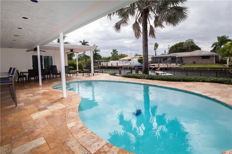 Great Scott!! Incredible remodeled from roof to floor pool home with ocean access**New AC air handler ( 2017)** newer SS appliances** granite counter tops ** breakfast bar center island ** white wood cabinets**teak wood floors through-out**all impact sliding doors and windows**remodeled master and guest bath** recess lighting through-out**surround sound system** nest system**open salt water pool with extended travertine patio** covered entertainment area**circular paver driveway**close to beaches and I95** Florida living at its BEST!! Please note: water heater and grill are hooked up to gas PLEASE EXCLUDE DINING ROOM FIXTURE