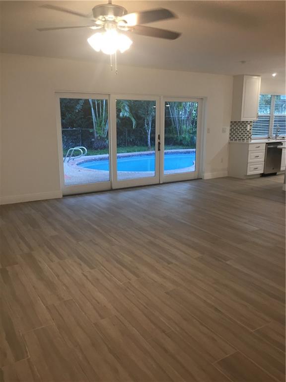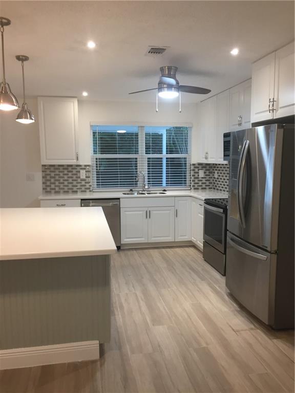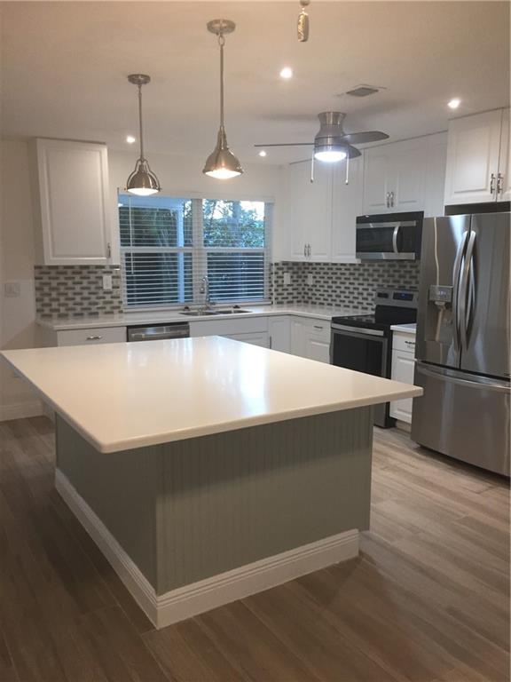 Redone and ready this home has a Lovely open floor plan , starting at the front door beautiful wide wood look tile leads you through the entire home. the kitchen is new with plenty of cabinets and drawers including a floor to ceiling pantry , all stainless steel appliances and a huge 5x7 island that seats 4+ with storage underneath . All baths have been redone . very good closet space , all windows and doors are hurricane impact as is the newer 2 car garage door. the pool has recently been refinished with a new skimmer and pool pump. fresh paint in and out , fully fenced private yard. wonderful location, near everything entertainment transportation and a short drive to the best beach in the area