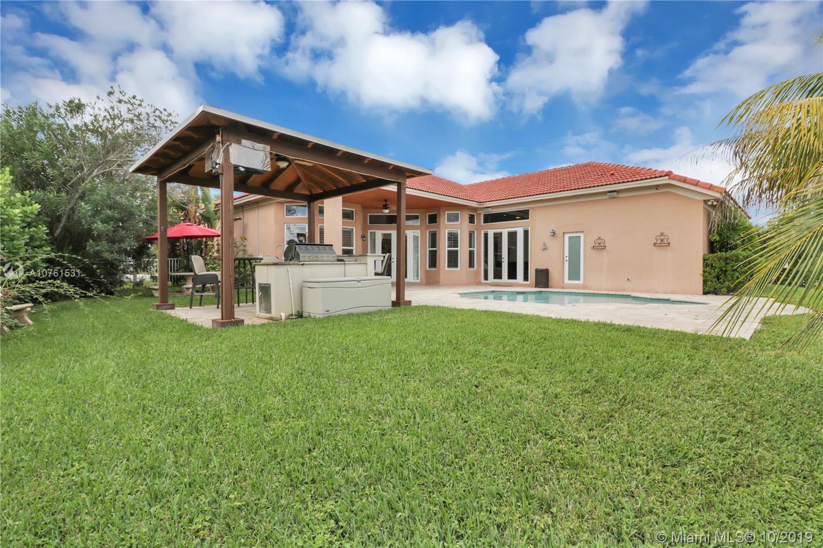 Absolutely stunning 5 Bed/ 3 Bath home sitting on an Oversized 13,332 sq-ft Cul-de-sac lot nestled in the very sought-after gated community. This One story beauty has everything you have ever wished for! It features Gorgeous Lake Views, Impact doors and windows for worry-free hurricane seasons, remodeled kitchen and baths, tile floors, Huge master 2 large walk-in closets, custom window treatments, wood trimmed ceilings, built-in computer desk. Iindoor/outdoor surround sound system, Trendy summer kitchen and Gazebo, basketball court, Kid’s playset, travertine floors, and a recently resurfaced beautiful pool overlooking the lake just waiting for you to relax in! Sunset Lake’s Resort-style clubhouse includes pool, tennis courts, gym, basketball courts, kids pool, and playground.