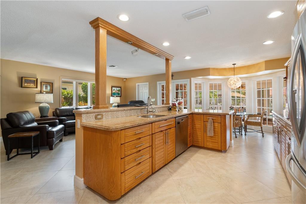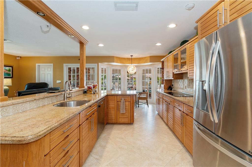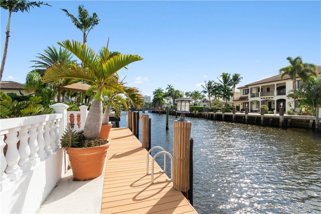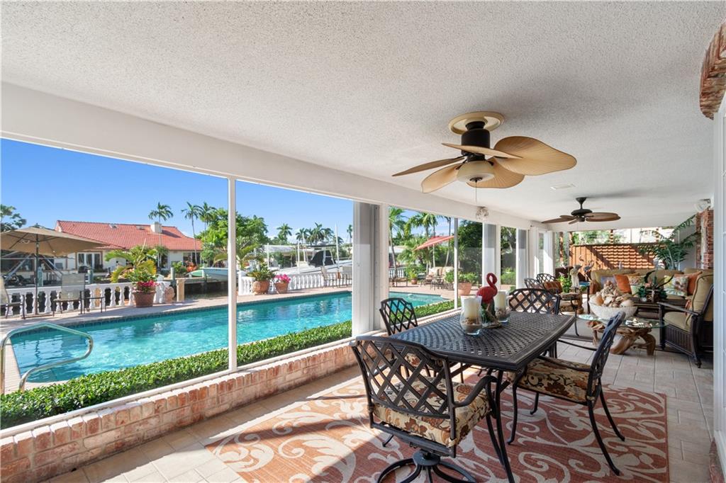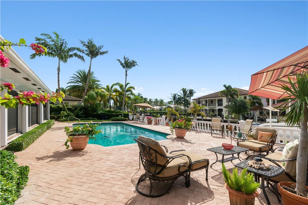 Absolutely gorgeous residence on 90 feet of prime no fixed bridges canal situated just 3 lots to the Intracoastal w/ desirable south exposure. There have been many elegant and quality updates made throughout the last few years. Custom eat-in kitchen w/ oak cabinets & stainless appliances. Kitchen is open to a wonderful family room w/ French doors leading you the most amazing 55 foot screened porch with hot-tub offering serene views of the waterway and heated pool area. Amazing over-sized master suite w/ sitting room, sumptuous master bathroom w/ double sinks & glass enclosed shower. Tasteful Porcelain tile flooring, crown molding and formal dining room. 80 foot dock w/ a 20,000 lb boat lift. This is one of the nicest streets in the neighborhood w/ beautiful curb appeal.