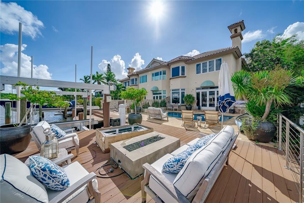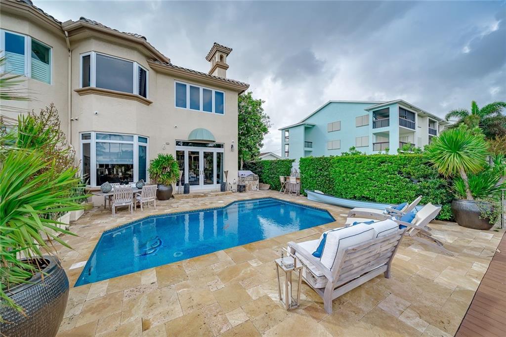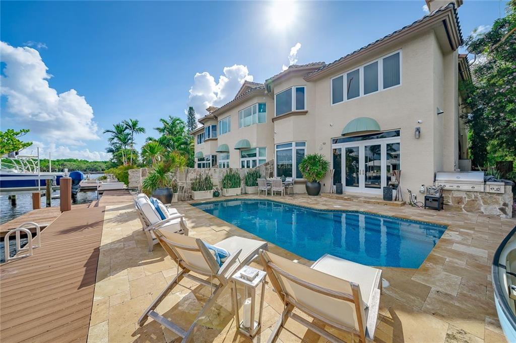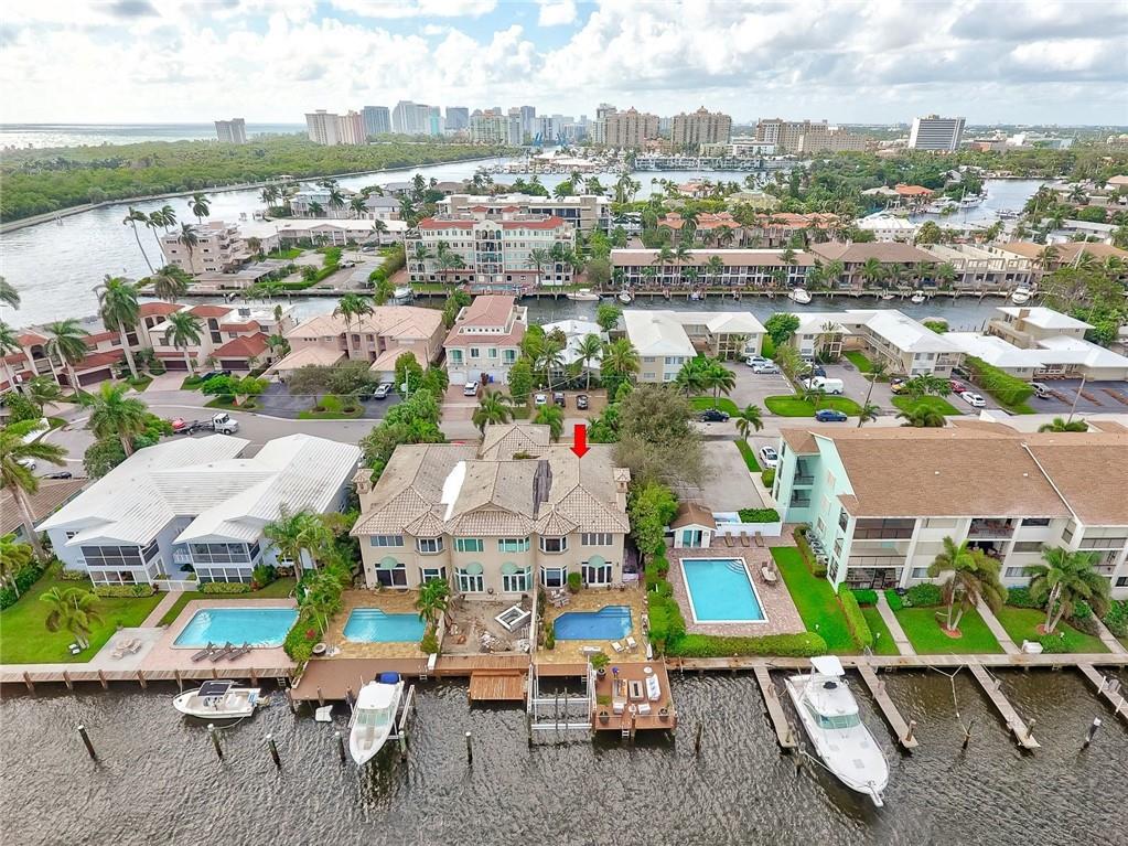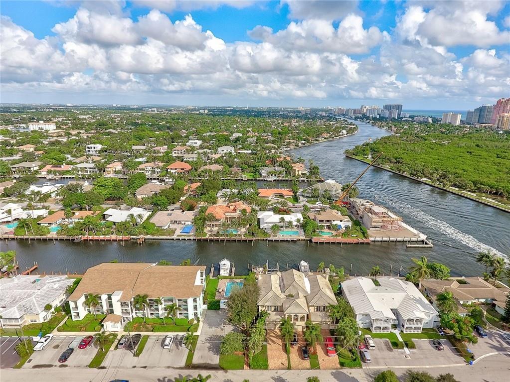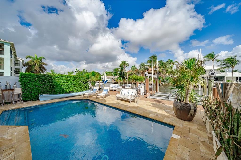 No Fixed bridges w/boat lift! Two-story spacious townhome with the absolute best design & finishes available! 12FT ceilings immediately bring your eye to the beautiful wooden beams above the kitchen featuring top of the line appliances. Bedrooms are perfectly situated upstairs with large master bedroom overlooking the waterway & 2 guest bedrooms with their own private ensuite bath & private balcony. The master bedroom features 2 walk-in closets & one very large bathroom. You must see the shower! Beautiful extended dock looking straight out to the intracoastal & a brand new summer kitchen make outdoor entertainment as luxurious as it gets. Only a couple buildings from the point of the canal so very private & so close to the city. Walking distance to beach & Galleria. 5 minutes to Las Olas.