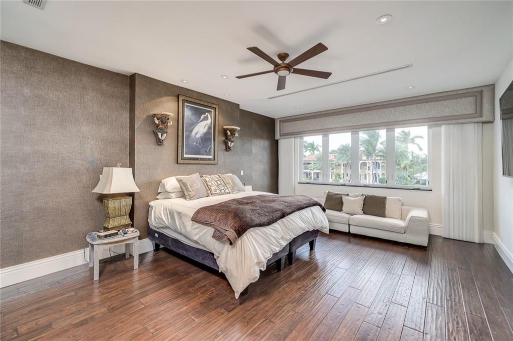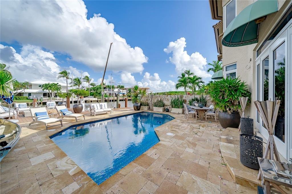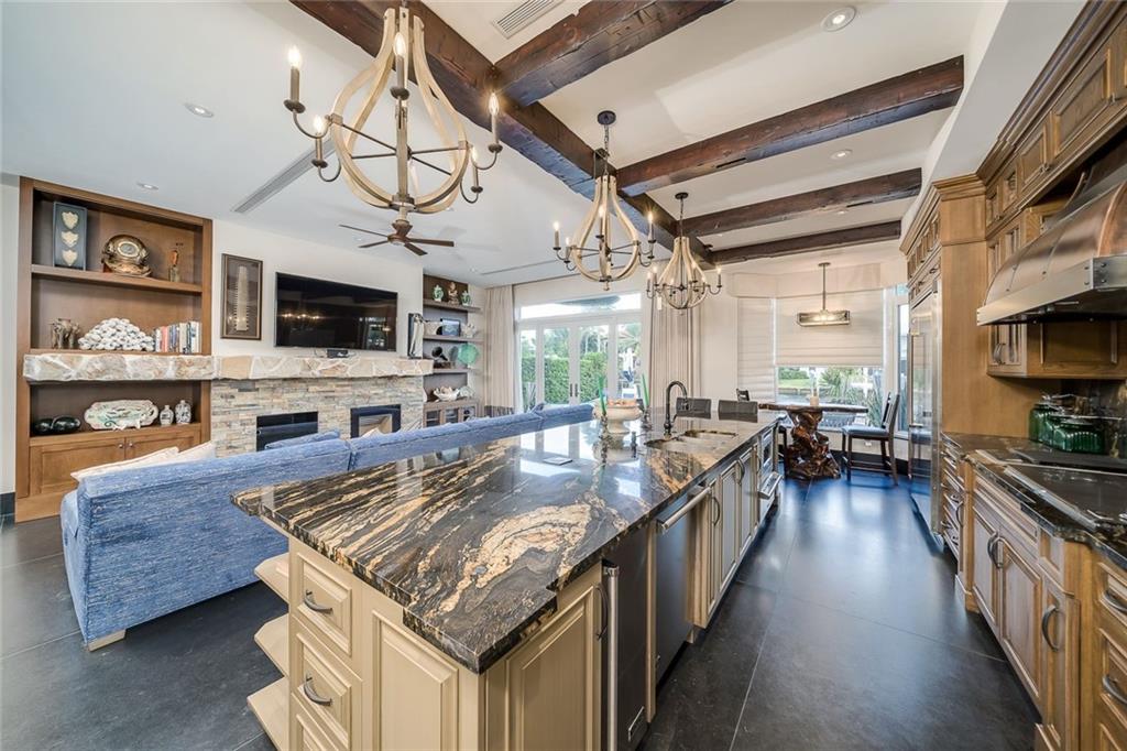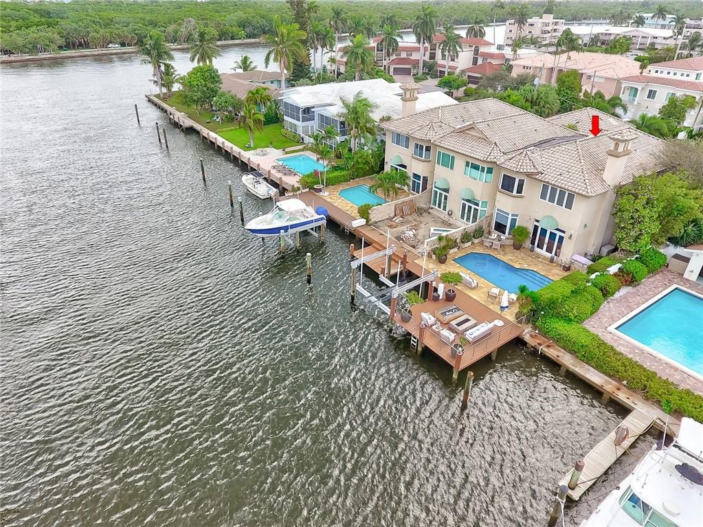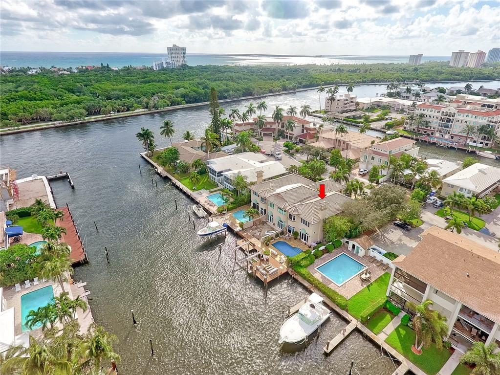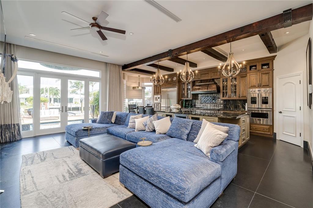 No Fixed bridges w/boat lift! Two-story spacious townhome with the absolute best design & finishes available! 12FT ceilings immediately bring your eye to the beautiful wooden beams above the kitchen featuring top of the line appliances. Bedrooms are perfectly situated upstairs with large master bedroom overlooking the waterway & 2 guest bedrooms with their own private ensuite bath & private balcony. The master bedroom features 2 walk-in closets & one very large bathroom. You must see the shower! Beautiful extended dock looking straight out to the intracoastal & a brand new summer kitchen make outdoor entertainment as luxurious as it gets. Only a couple buildings from the point of the canal so very private & so close to the city. Walking distance to beach & Galleria. 5 minutes to Las Olas.