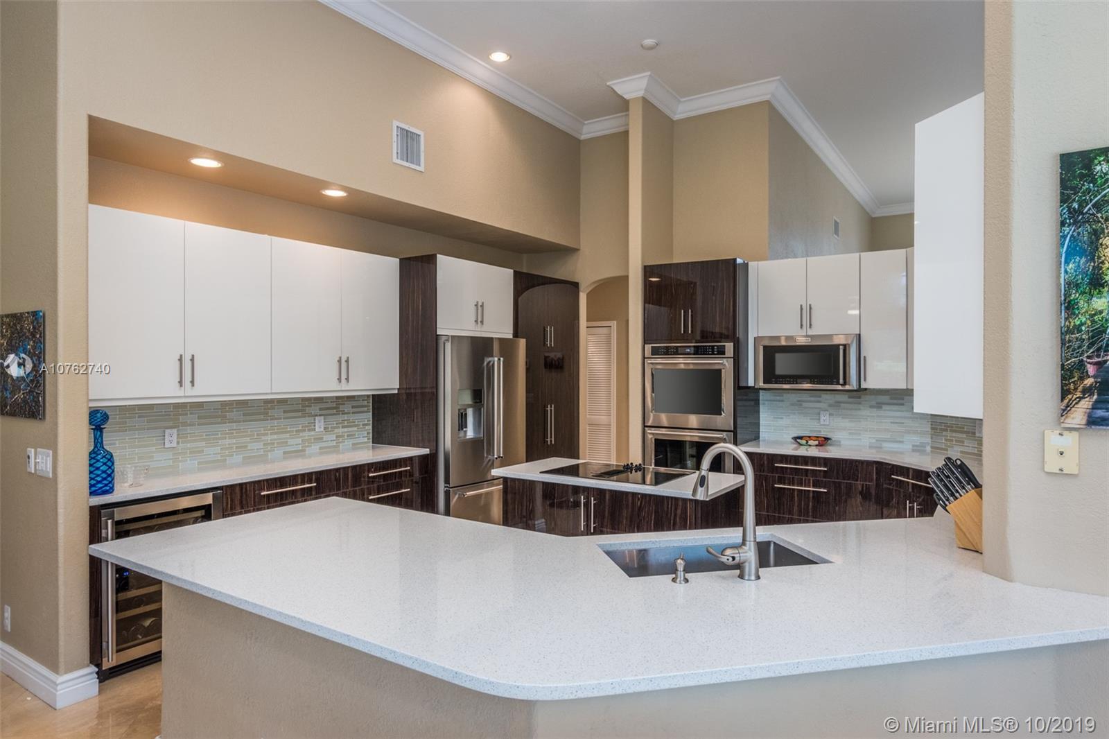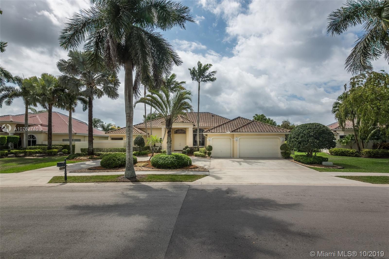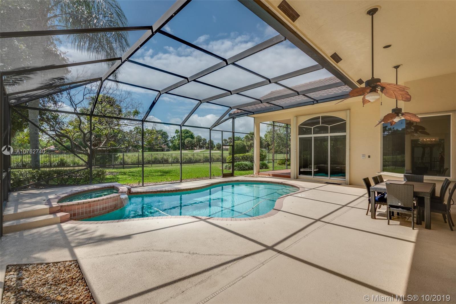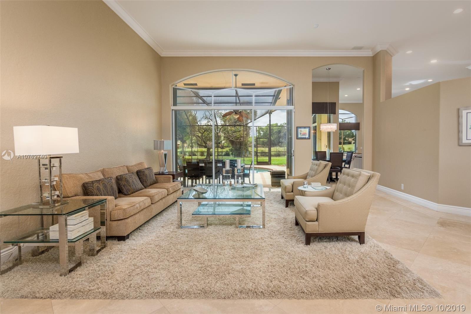 SPECTACULAR VIEWS!! Take in expansive views of the golf course from one of the largest yards in Weston Hills! Gorgeous renovated contemporary kitchen w/ stainless steel appliances, double oven, warming drawer, wine fridge & quartz countertops make it a chef's dream. Phenomenal chandeliers sparkle in dining room, entry and kitchen. Soaring ceilings, large windows & open floor plan with gleaming marble floors create spacious home flowing into sensational screened-in patio & porch and oversized yard. Grand master suite features built-in closets. Perfect for entertaining, this private oasis is located on a tranquil cul-de-sac street and features a three car garage and circular driveway with room for 7-8 cars. Accordion shutters and newer roof.