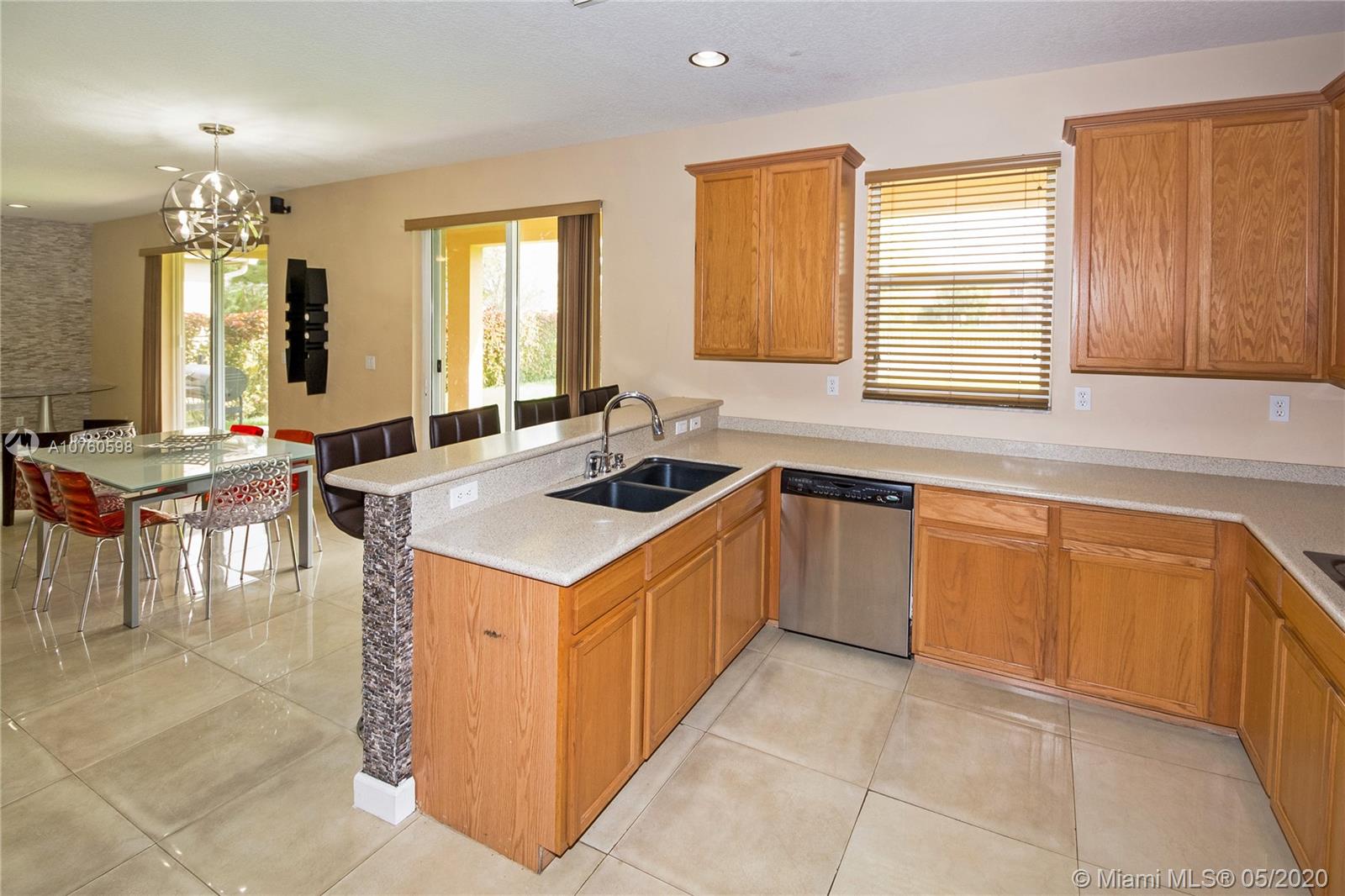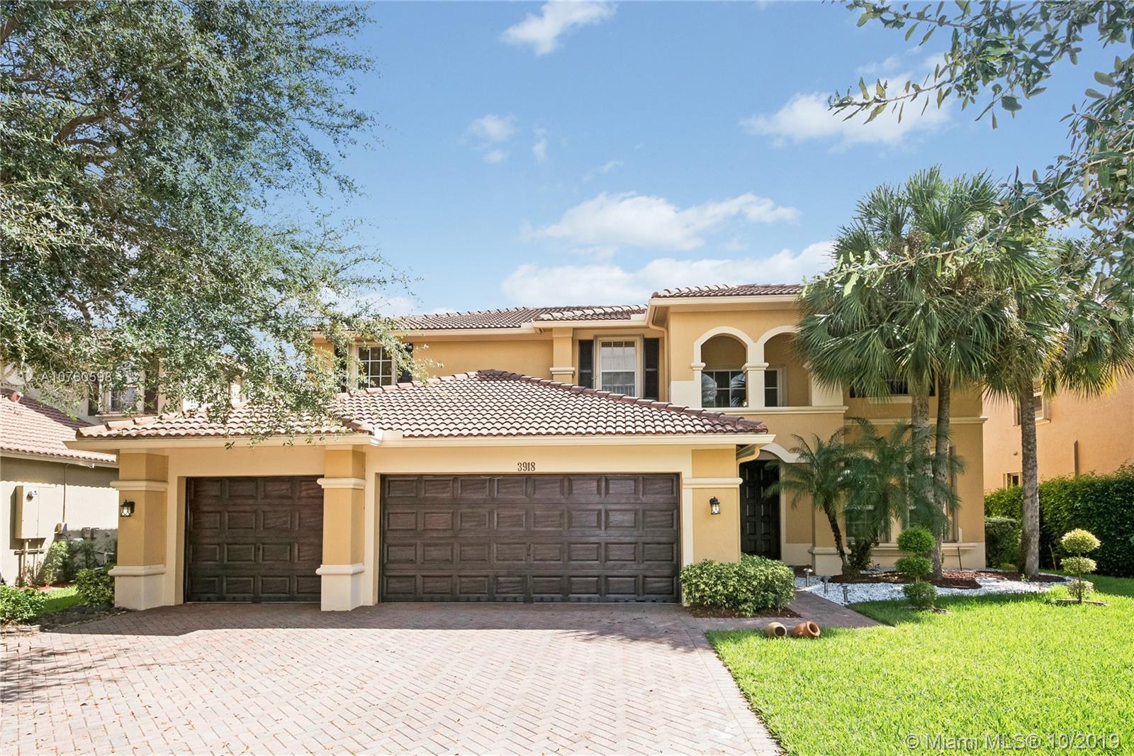 Delightful Magnolia Model, 5 bedroom, 4 bath home with a separate loft area for children’s study/computer area or home office in the prestigious community of Isles at Weston. Double door entry with high ceilings, formal living and dining areas, spacious kitchen with stainless steel appliances, 42’ kitchen cabinets, breakfast area and guest bedroom downstairs with full bath and accordion shutters. Laundry room w/utility sink and 3 car garage. Private fenced patio with amazing view of the lake, plenty of room for a pool. This house is perfect for entertaining and family gatherings. Community Club House with 2 pools, gym, party areas, volleyball & basketball court, playground and more. HOA includes cable, internet, alarm and Club House. Close distance to the Schools.