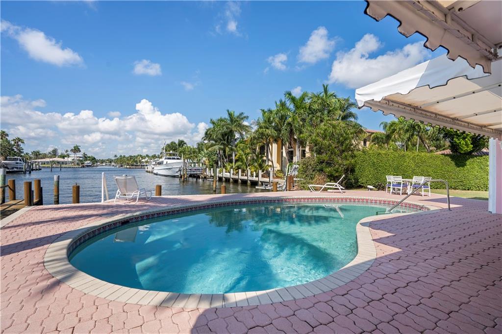 Experience breathtaking Intracoastal views & a daily parade of boats from almost every room of this deep waterfront residence. A day at sea is as close as your back door & Fort Lauderdale Beach is within walking distance of your front door. Ideal for the avid boater with protected Mediterranean dockage & mins. to the Intracoastal. The moment you enter the great room it's wide waterway views over the pool & large patio area. This home is situated on a highly desirable lot with a very large side yard. The bright open floor plan is conducive to today's lifestyle with multiple doorways blending indoor & outdoor living spaces. The kitchen opens to the dining area & overlooks the family room & great room. Multiple large storage rooms. Minutes to restaurants & shopping. Sq. ft. from IMAPP