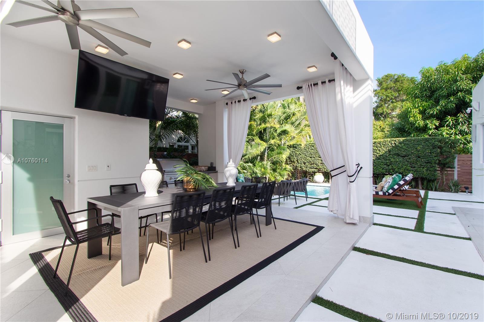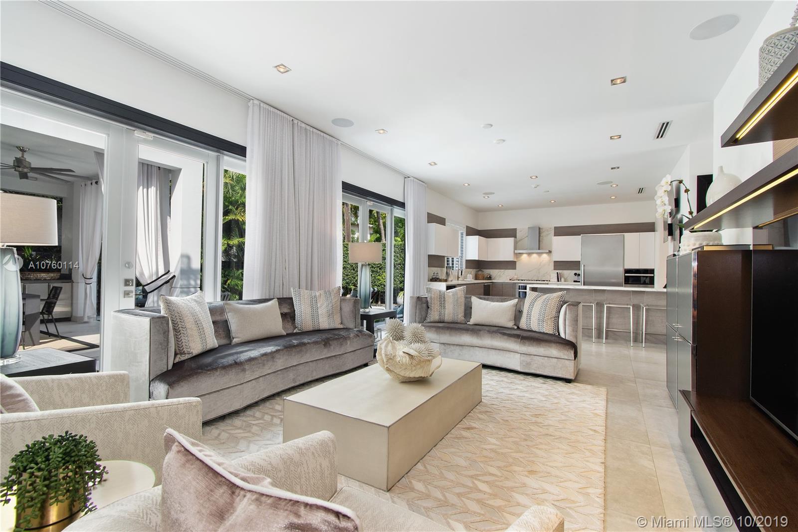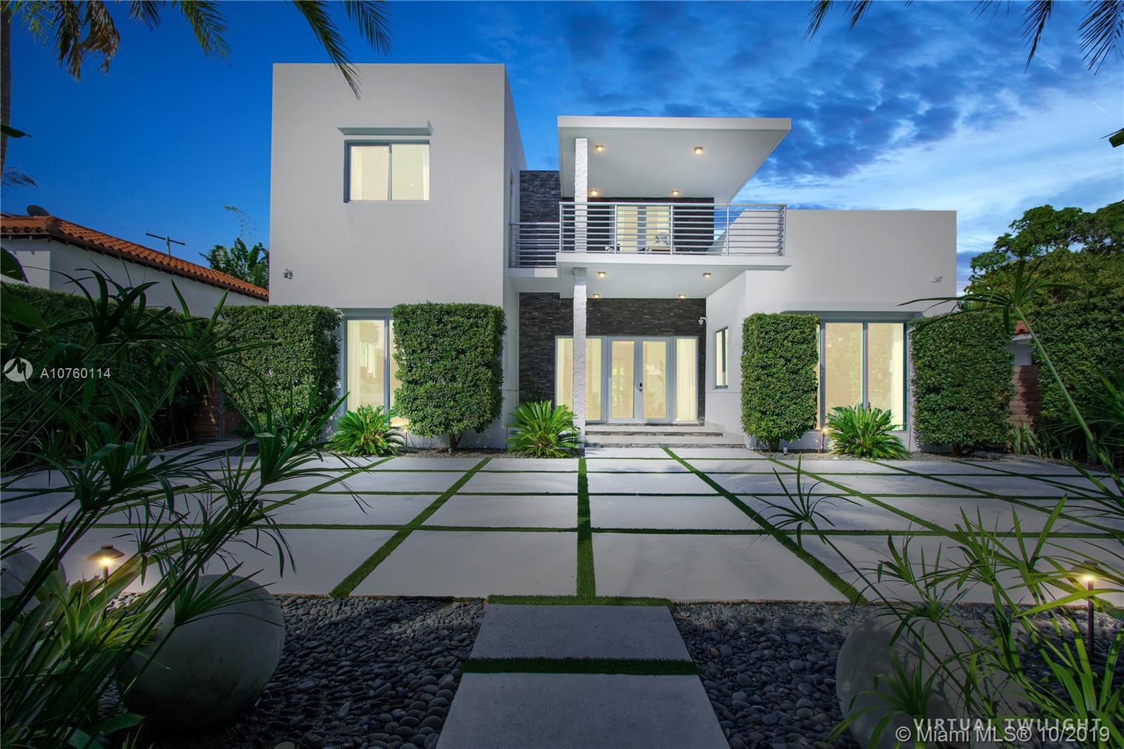 Gorgeous, professionally designed, contemporary home that was completely rebuilt in 2016. This open concept, 2-story home is in the center of the action of South Beach and across from the Miami Beach Golf Club. Beautifully landscaped exterior with a round driveway and 2 automated gates for easy in and out. This energy efficient smart home features 4 bedrooms plus an office, 4.5 baths and a stunning outdoor space complete with a heated pool, summer kitchen and a cabana bath. Master suite is conveniently situated downstairs with 2 walk-in closets and a large master bath. Kitchen is open to the living area and dining space. Kitchen features Miele appliances and quartz waterfall counters. Upstairs are an additional 3 bedrooms, 2 bathrooms and 2 patios. Impact Windows & doors throughout.