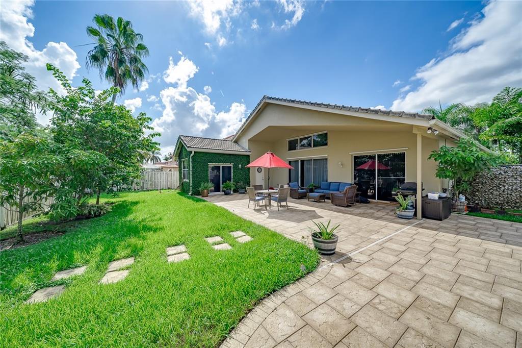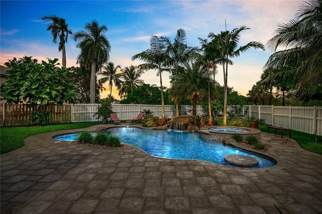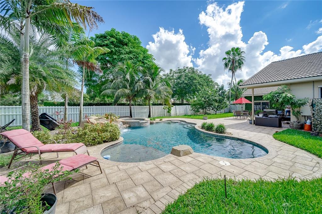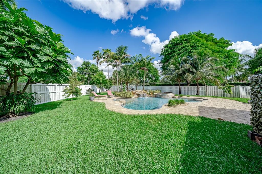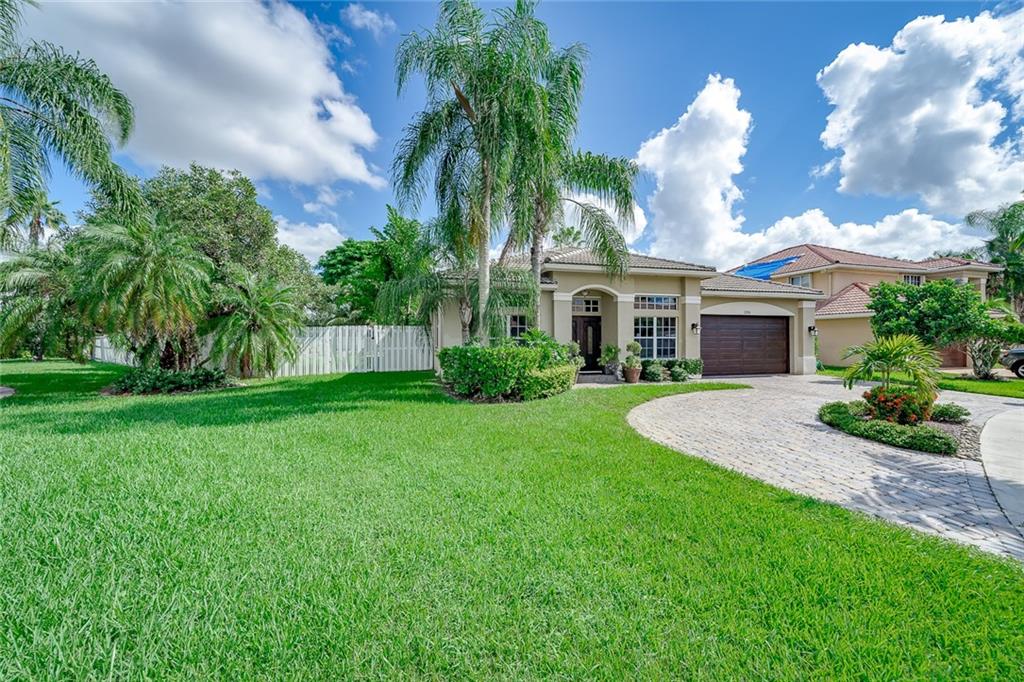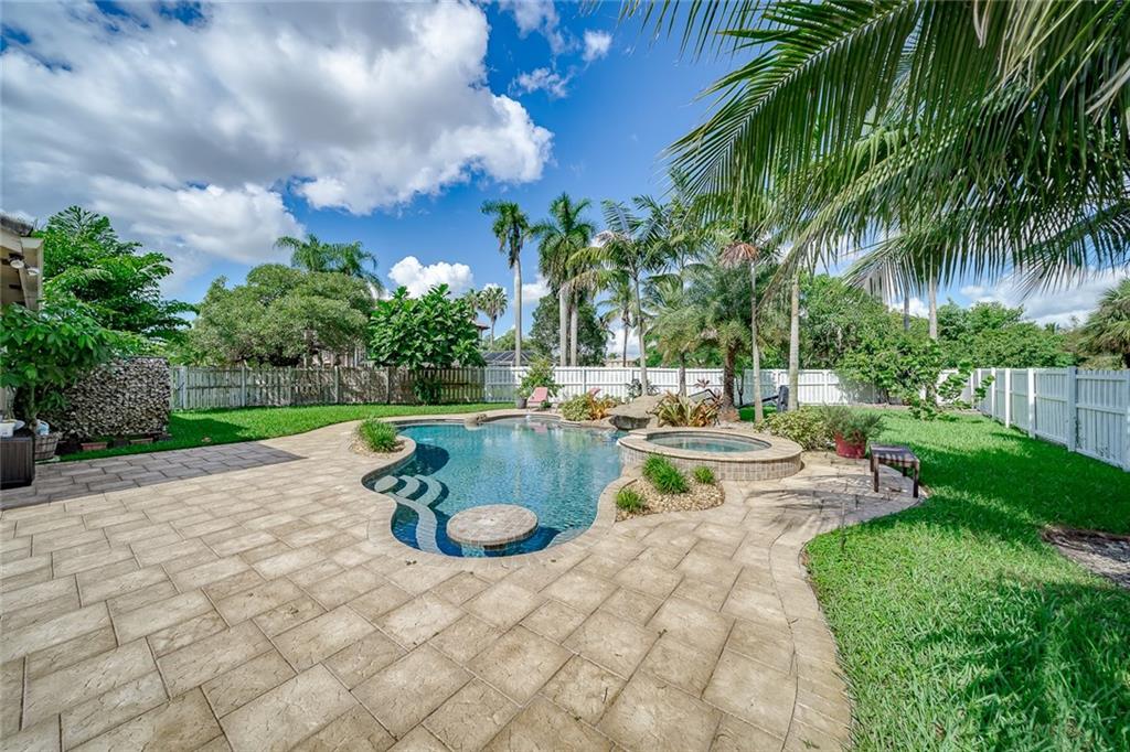 THIS ONE CHECKS ALL THE BOXES! 4 BEDROOM 2.5 BATH, SINGLE STORY, EXTENDED CIRCULAR DRIVEWAY, PARKS 6+CARS EASY, NEWER A/C, 12,000SQFT+ HUGE PIE SHAPED YARD WITH NEW SALT WATER POOL/SPA THAT FEATURES LED LIGHTING, WATERFALL, HEATED AND ALL WORKS FROM REMOTE. OPEN FLOOR PLAN, ENGINEERED HARDWOOD IN ALL BEDROOMS. GRANITE KITCHEN COUNTERS WITH SS APPLIANCES. OTHER FEATURES INCLUDE, UPDATED CABANNA BATHROOM, FULL HURRICANE PROTECTION, FRUIT TREES AND IS FULLY FENCED.