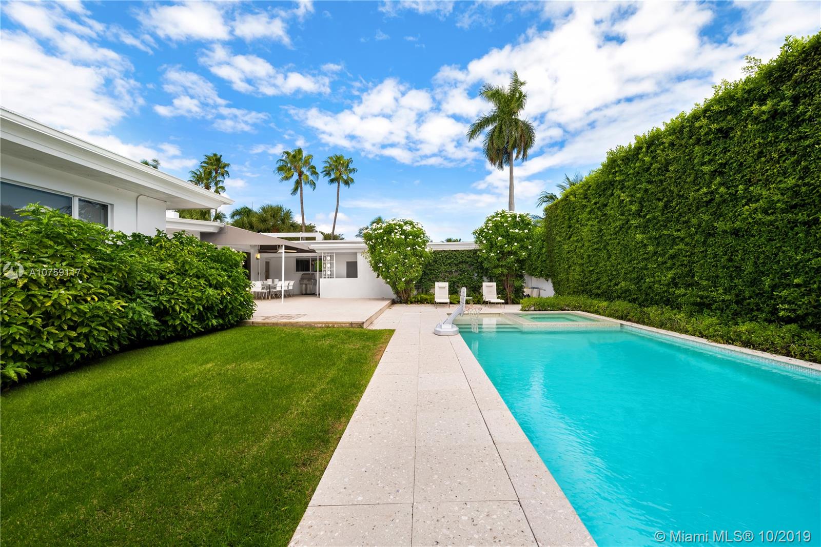 Located at the end of upper N. Bay Rd, adjacent to La Gorce Island and a charming neighborhood park, this 5 BD 4.5 BA home sits on a large 11,600 sqft lot. Originally designed by architect Donald Smith, this perfectly restored Mid-Century Modern home features limestone floors throughout. This private residence offers intricate built ins, a formal dining and living area, an attached two car garage, and is complimented with over-sized impact windows which offer abundant natural light. Gourmet eat-in kitchen, top-of-the-line appliances, including a Wolf gas range and Sub-zero refrigerator. Elegant master suite features dual sinks, a spacious walk-in shower and walk-in closet. This tranquil home is finished with a spacious backyard and a heated pool/spa.