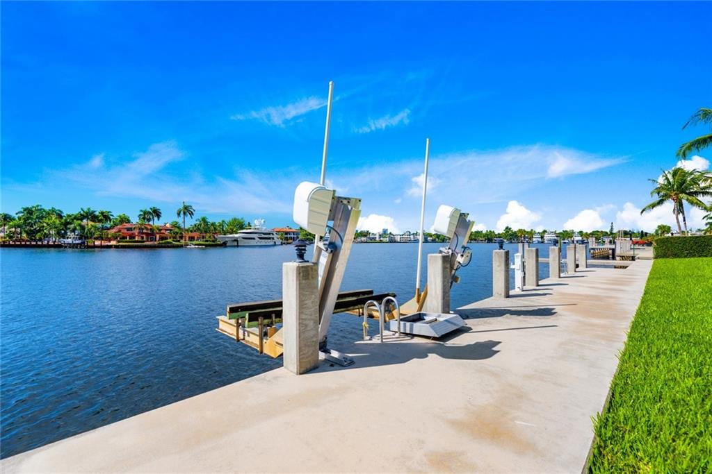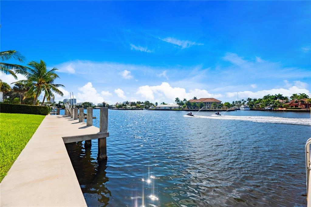 Front and center open water views of the Middle River in Gated Sunrise Intracoastal. Features include stately foyer entry with soaring ceilings, floating staircase, elevator, chef's kitchen, walk-in pantry, 3 fireplaces, 3 built-in wet bars, covered porches and more. 4 Bedrooms, 4 and one half baths. Formal Dining & Living Rooms plus large Family room with extensive views of the Middle River. Laundry rooms on both levels. Over sized lot with 109 feet of water frontage and solid concrete dock. Direct ocean access. Southern exposure with views of downtown Fort Lauderdale and the beach skylines. Great house for entertaining! Full house Generator. Bayview Elementary school district. Walking distance to the beach, shopping and restaurants. A must see!
