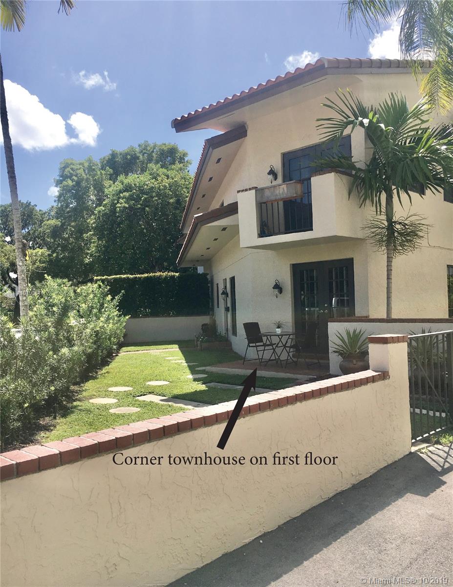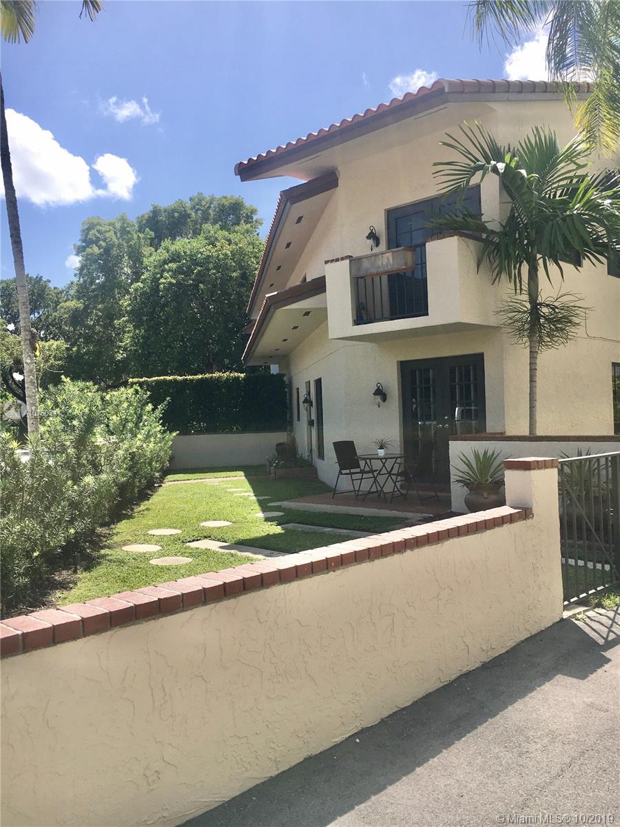 This is the one! Architectural charm and a truly unsurpassed location on "Biltmore Square" , surrounded by the best new townhouses and condominiums ever built in Coral Gables. It stands alone as a rare jewel of only three townhouses, each within their walled-in private property garden land. There are no common areas except as to the parking, therefore extremely low maintenance fee. Private entry, courtyard, two stories, plus additional concrete roof, high impact new CGI windows and French doors. Excellent the building has a brand New roof installed on July 2019. Is unique, beyond comparables. Located next to new townhouses priced three times higher. Hurry, a soon gone deal, hard to find one like this!