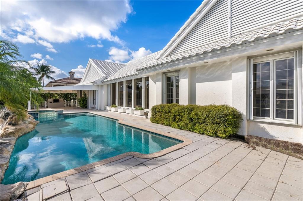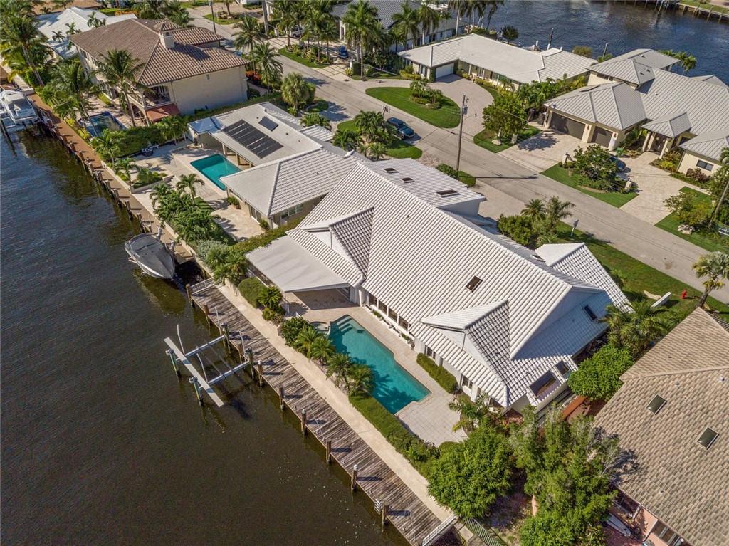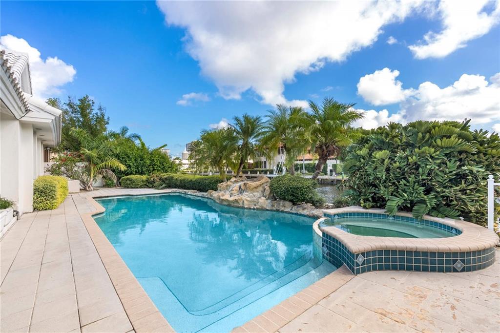 Unlimited potential with waterfront views in walking distance to the Coral Ridge Country Club. 100’ of south-facing water frontage, only 2 from the point, on the most prime street in Coral Ridge Country Club. This residence - with a modern layout, 10’ and higher ceilings, grand entry foyer and a newer roof - is ready to be customized by a new owner. 4 bedrooms - including 2 master suites, office, 4.5 bathrooms, vaulted great room ceiling, and an enormous chef’s kitchen that is open to an additional living room and dining room. Outside, a covered patio with built-in grill overlooks the pool, spa, and dock with direct Intracoastal views and a 2016 high-speed 4-motor 25,000 lb boat lift. Sq ft from BCPA, believed accurate.
