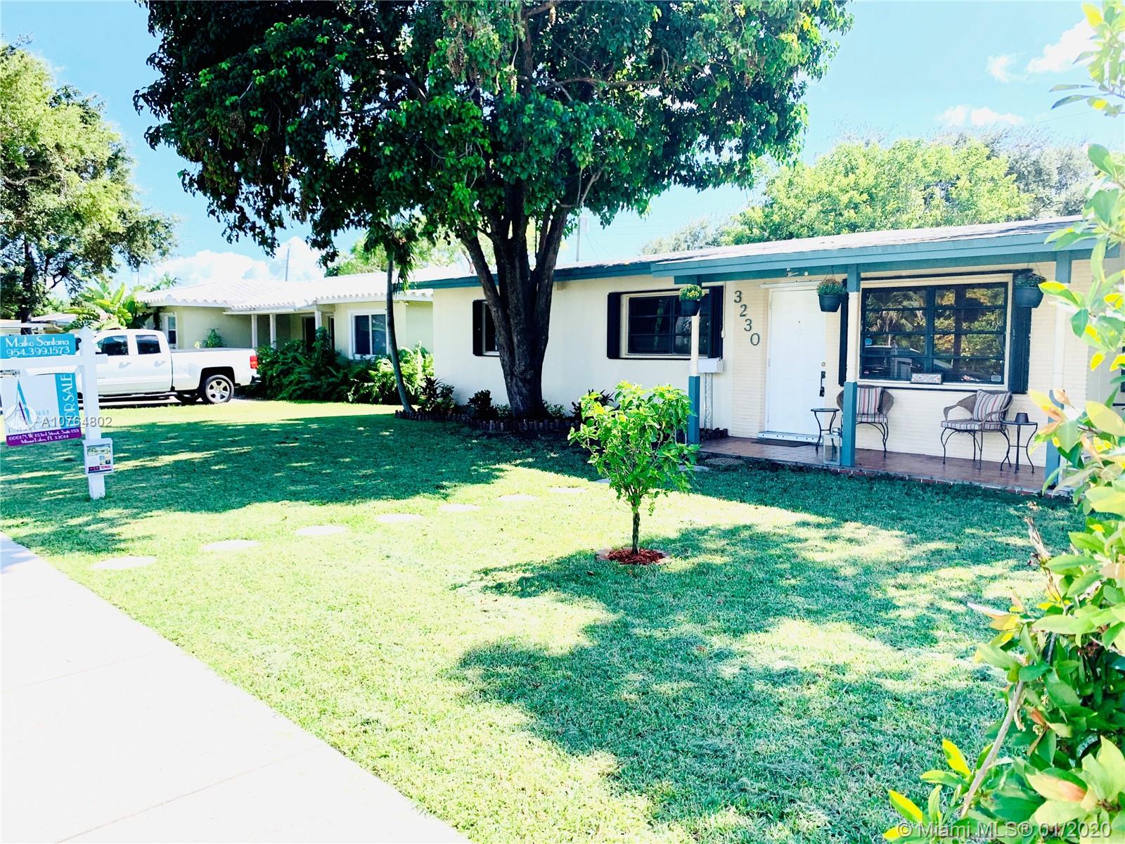 Bright & inviting spacious home, in a quiet neighborhood, centrally located in sought after Hollywood, w/in minutes of shopping, dining, major roads & schools. Featuring 3 Bdrms with Master en-suite & Guest Bathroom, Living/Dining area, Updated Kitchen w/ Granite countertops, and an oversized Den w/ fireplace that can be utilized as an additional bdrm, office or family room. Elegant vaulted wood-beamed ceiling and a natural wood paneling accent in the living area. Ceramic Tile/Carpet. Separate Laundry/Utility room with storage & full w/d. Beautiful and large fenced backyard with a gorgeous paved patio and playground. Additional Features: Furniture for Sale/Negotiable, Security Camera System; Newer Roof & AC; Concrete for shed, & Hurricane Accordion Shutters. Perfect Canvas for any Buyer!!