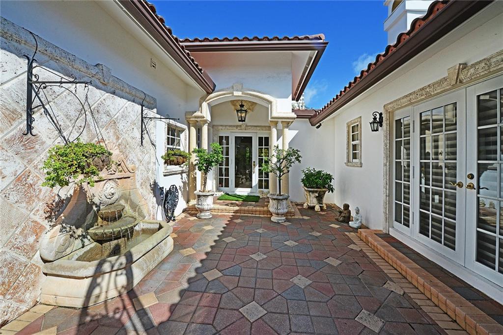 Beautiful Mediterranean home on Quiet Water Lake Mayan. This home features impact glass, light marble floors throughout, formal living room, tray ceiling in the master bedroom, gas fireplace, hardwood floors in most bedrooms, and plantation shutters. The kitchen contains maple and glass cabinetry and gas cooking. The amazing backyard features manicured hedges and gardens, multi terrace patios, awning seating areas, water fountains throughout, Trex decking, saltwater pool plus a jacuzzi spa and a gated courtyard entry. Fixed bridge ocean access and a short walk to the ocean access footbridge and optional surf club. This home is Harbor Beach at its best. Come and see the tranquillity of this beautiful home.