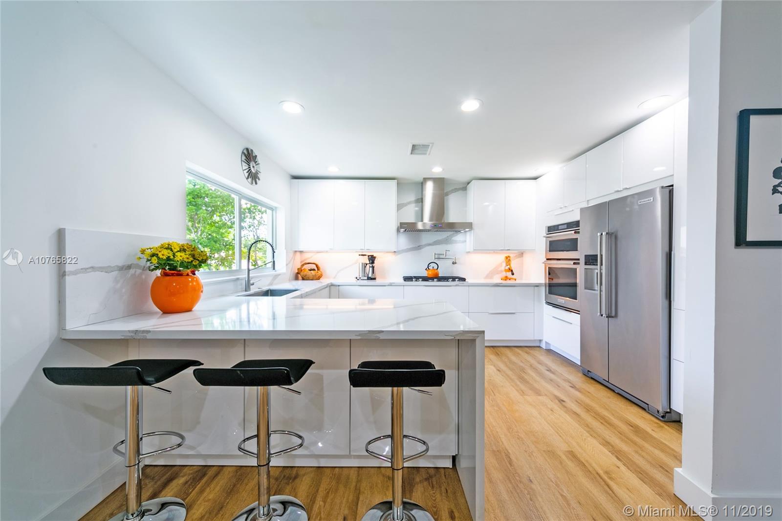 Tastefully renovated Hollywood Lakes waterfront pool home located on quiet, low-traffic cul-de-sac street. 3 bedrooms plus den/office that can be used as 4th bedroom. New custom eat-in kitchen with white cabinetry, Kitchen-Aid appliances, 5 burner gas cook-top w/pot-filler faucet and stunning white quartz counter tops. New baths, new roof (2019), new hvac, termite warranty, updated electric, plumbing and new flooring throughout make this turn-key home a rare find. The bright, open floor plan is great for easy living and entertaining. Wonderful waterfront outdoor area featuring pool with natural Pebble-Tech finish and river rock waterfall. Spacious patio areas overlooking tranquil waterway & beautiful sunsets. Professionally landscaped with many local specimen plantings. Easy to show.