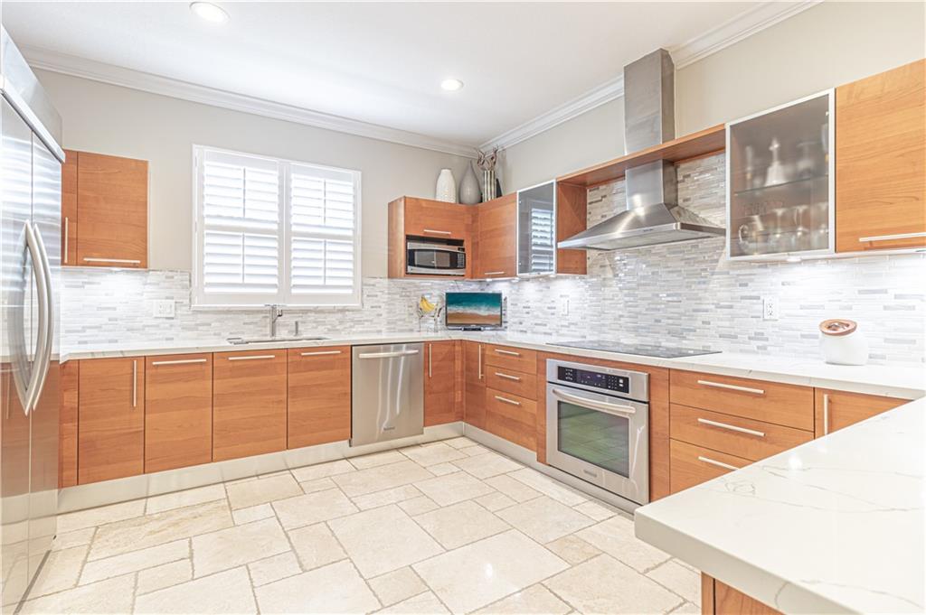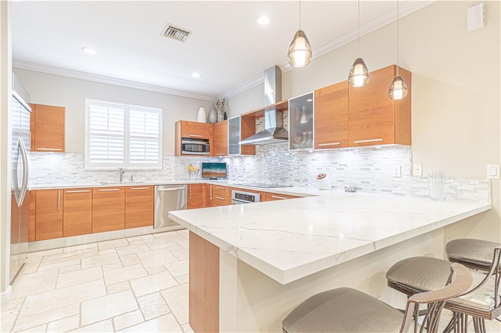 PRISTINE VICTORIA PARK THREE STORY GATED TOWNHOME WITH PRIVATE POOL, MULTIPLE TERRACES AND TWO CAR GARAGE. OVER 3,000 SQ. FT., RECENTLY UPGRADED THROUGHOUT 3 BEDROOMS 3.5 BATHS INCLUDING BEAUTIFUL MARBLE FLOORS, OPEN KITCHEN WITH QUARTZ COUNTERTOPS, STAINLESS APPLIANCES, LARGE WALK IN PANTRY, AND BREAKFAST BAR. THE FORMAL LIVING AND DINING ROOM FEATURES DRAMATIC VOLUME CEILINGS, CUSTOM WINDOW TREATMENTS, CROWN MOLDINGS AND TRIM. THE SECOND FLOOR IS DEDICATED TO THE MASTER SUITE WITH SITTING AREA, WET BAR, OVER SIZED WALK IN CLOSET, LARGE MASTER BATH WITH JETTED TUB, WALK IN SHOWER, AND DUAL VANITIES WITH QUARTIZITE COUNTER TOPS. ALL BEDROOMS ARE APPOINTED WITH CUSTOM WINDOW TREATMENTS, CROWN MOLDINGS, SPACIOUS CLOSETS, ENSUITE BATHS AND PRIVATE TERRACES.