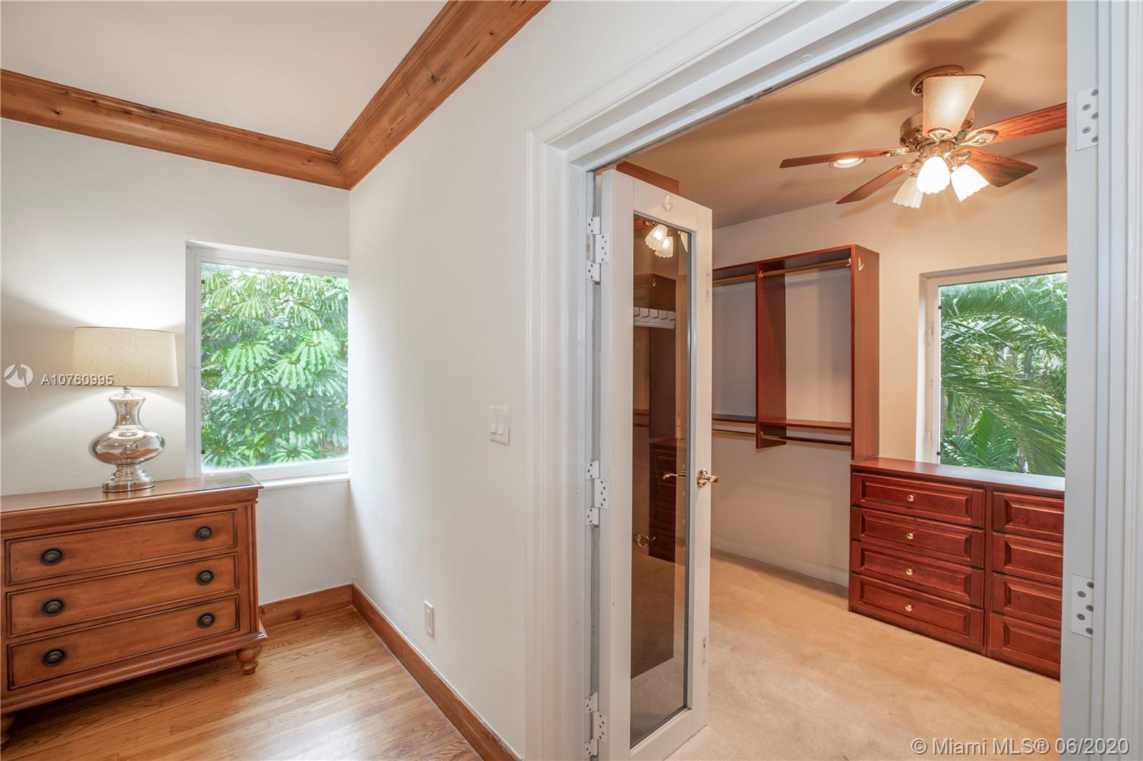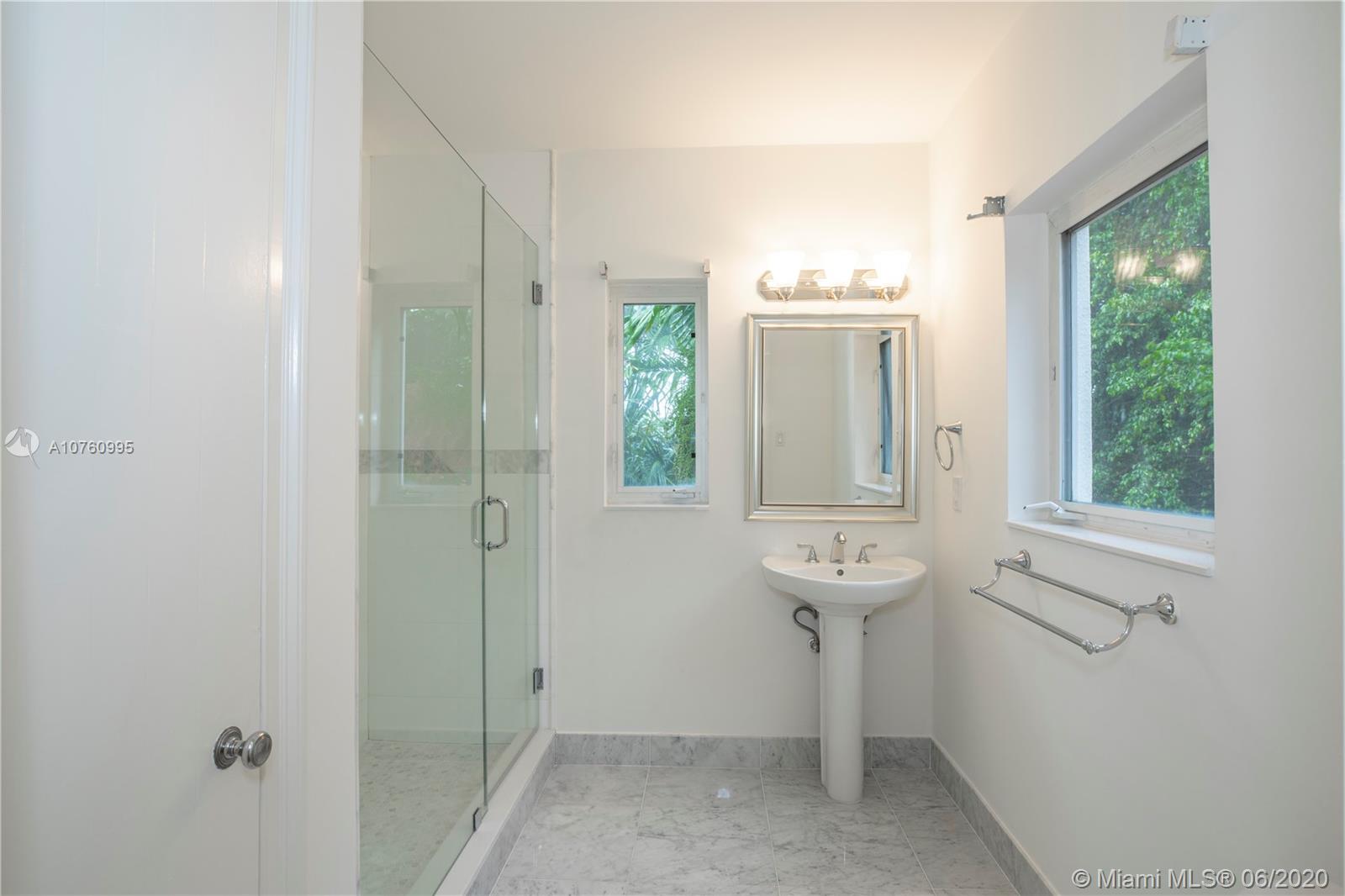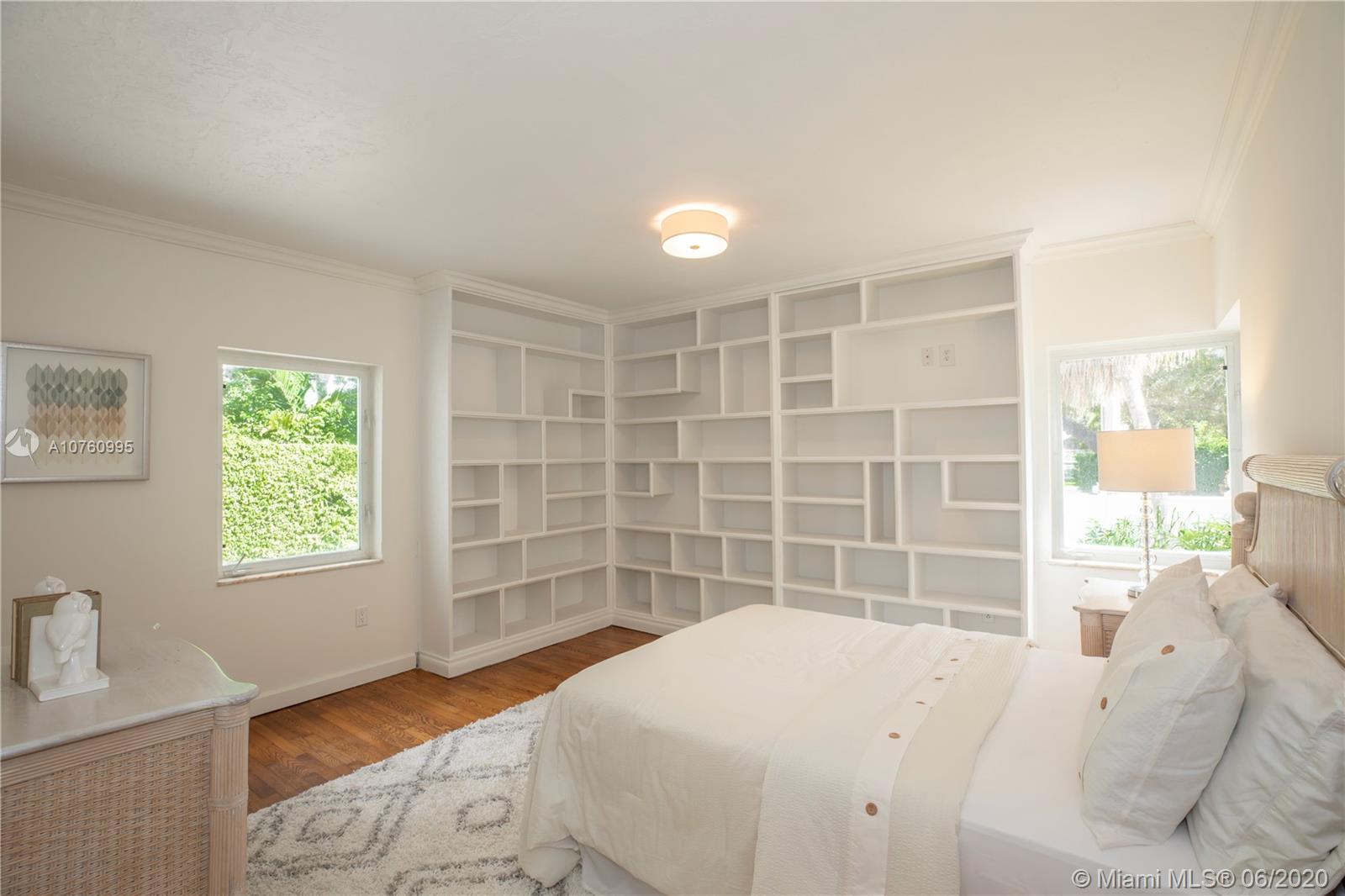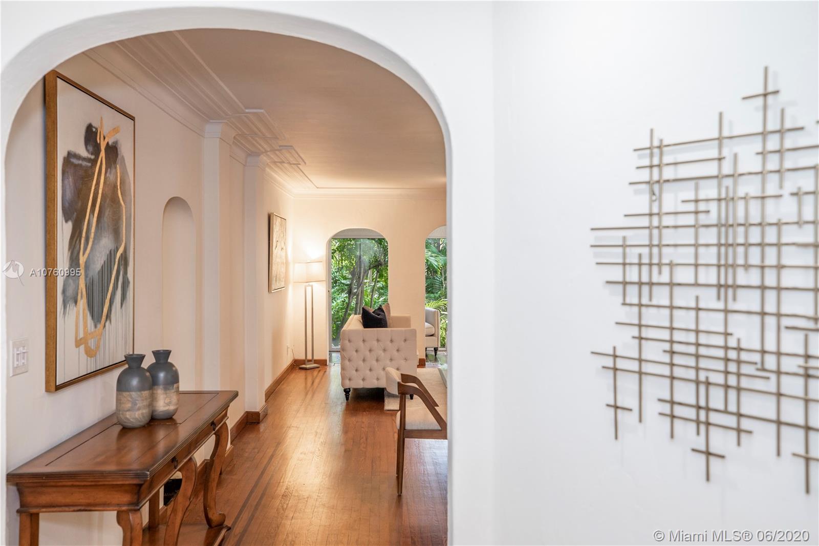 Centrally located retreat is larger than you think! This charming and gated 1930's Gables home boasts 5 bedrooms, 4.5 bath + home office. Escape the hustle and bustle and enjoy this tropical, peaceful Miami oasis. High ceilings, wood floors, cozy fireplace and lots of surprise alcoves like a wine bar off the living room make this home an unexpected rare find! Wide open living space leads to peaceful sunroom with floor to ceiling windows overlooking lushly landscaped yard. The heated pool and spa feature a cascading tropical-style waterfall that is a beautiful focal point. Bring your toothbrush and move in or consider some minor renovations to open up the floor plan even more - see renderings included with photos. Owner will include plans with purchase. Spacious guest house.