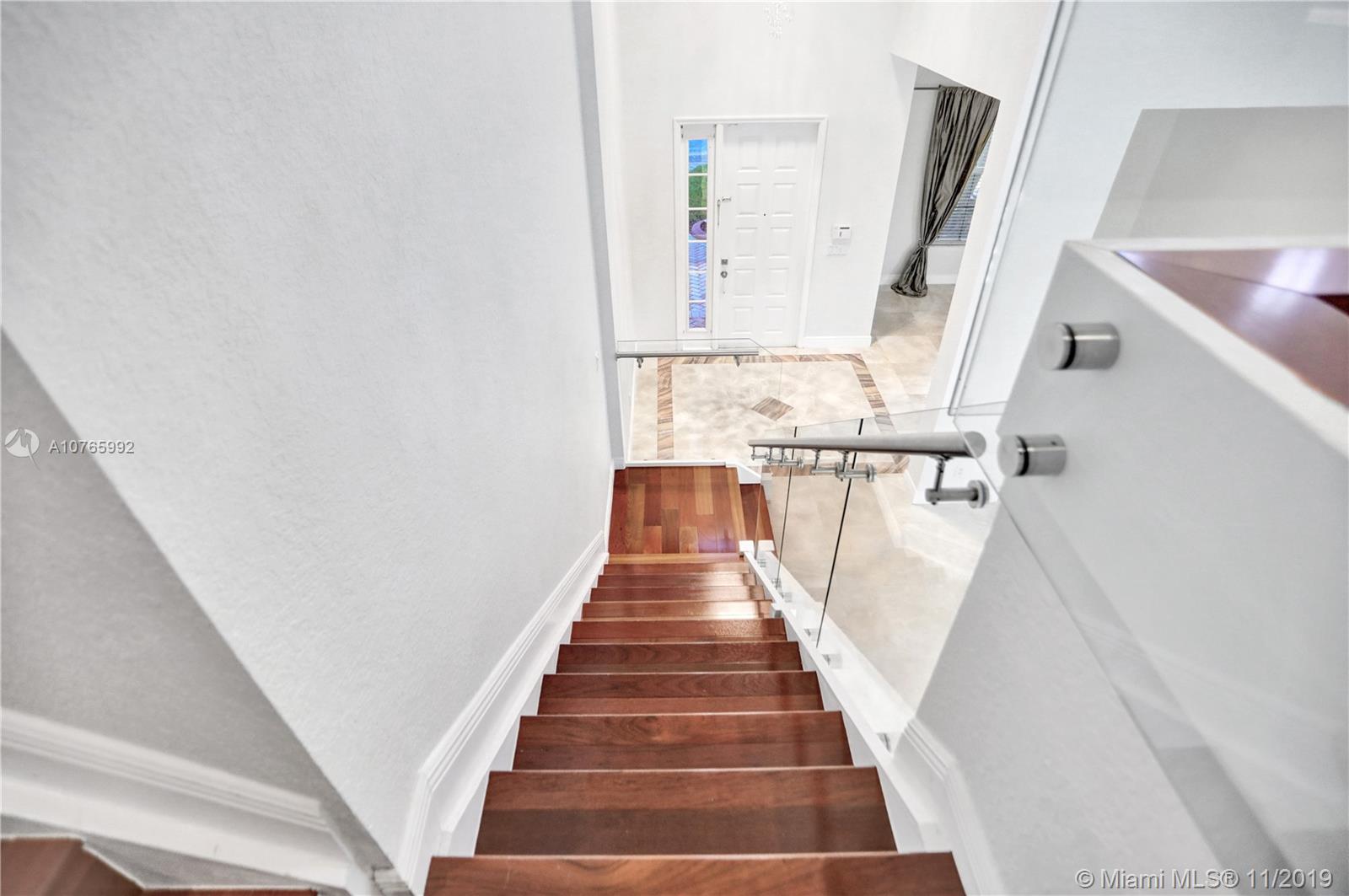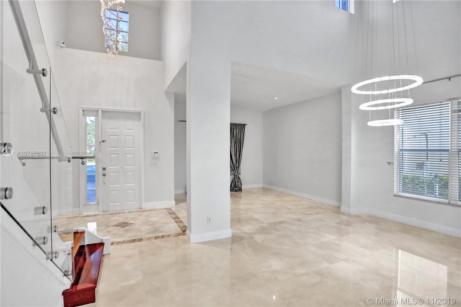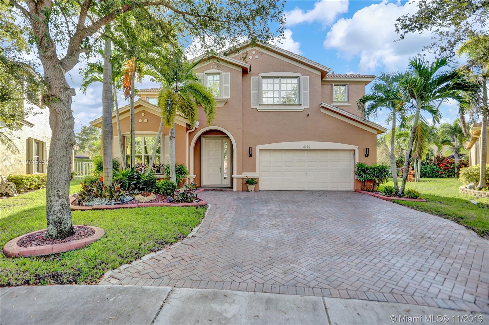 Looking for a home/tech move-in ready home? Come and see this astonishing 5BR/4BA home located in the Prestigious Community of Isles of Weston. The house sits on a cul de sac with an open pie shape lot. The first floor has a beautiful marble floor through/2nd floor has Brazilian hardwood floor through. Wireless control of the refrigerator, garage door, sprinkler system, and the lights. The spacious upgraded family room comes with a built-in electric fireplace along with a bar with a wine cooler. There is one bedroom downstairs with a fully renovated bathroom. The appliances /AC are less than 2 years old. Glass railing on the stairs along with crystal chandeliers gives that touch of modern. Laundry room upstairs. Accordion shutters.Association fees include internet, cable, alarm, clubhouse