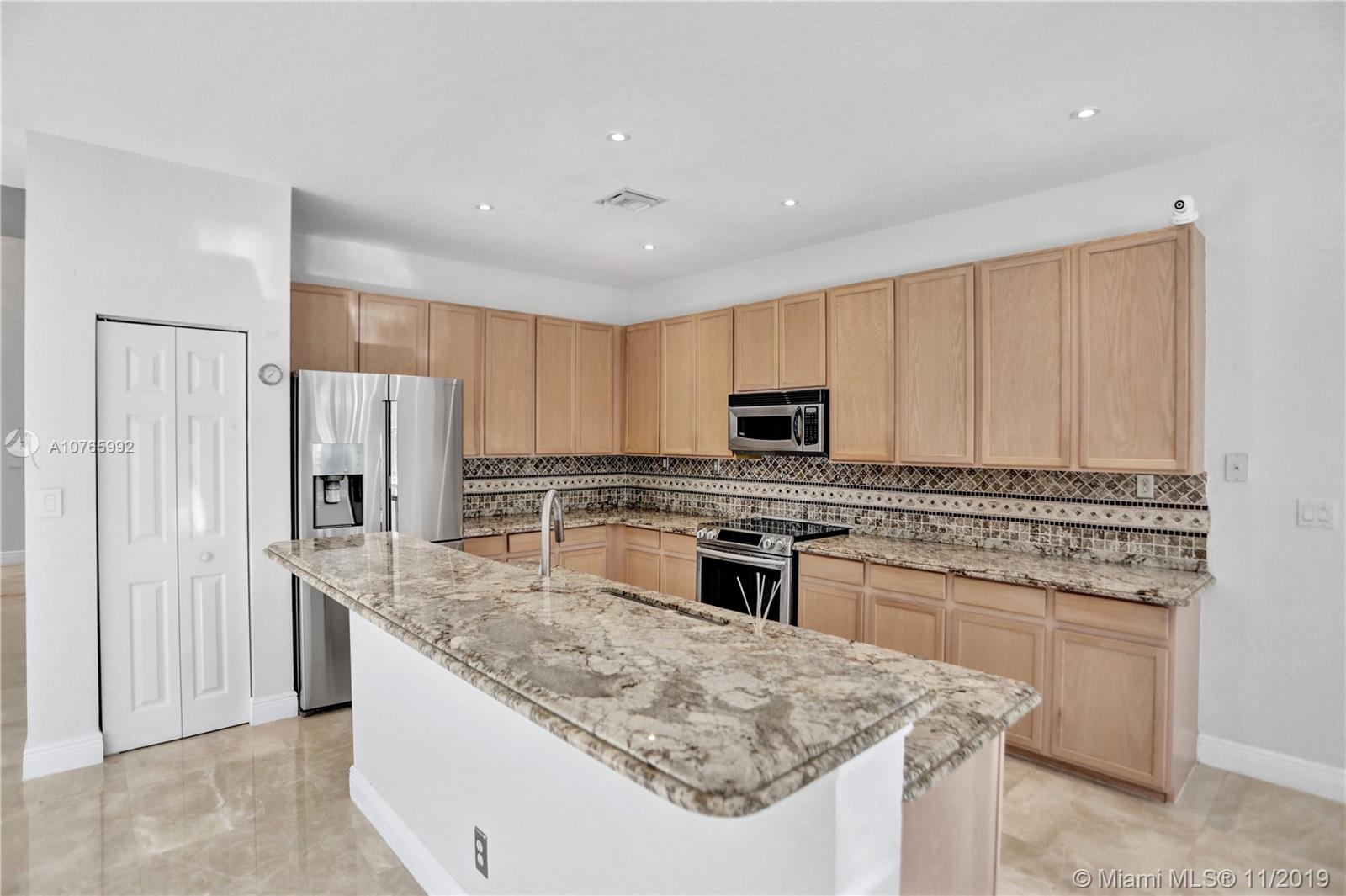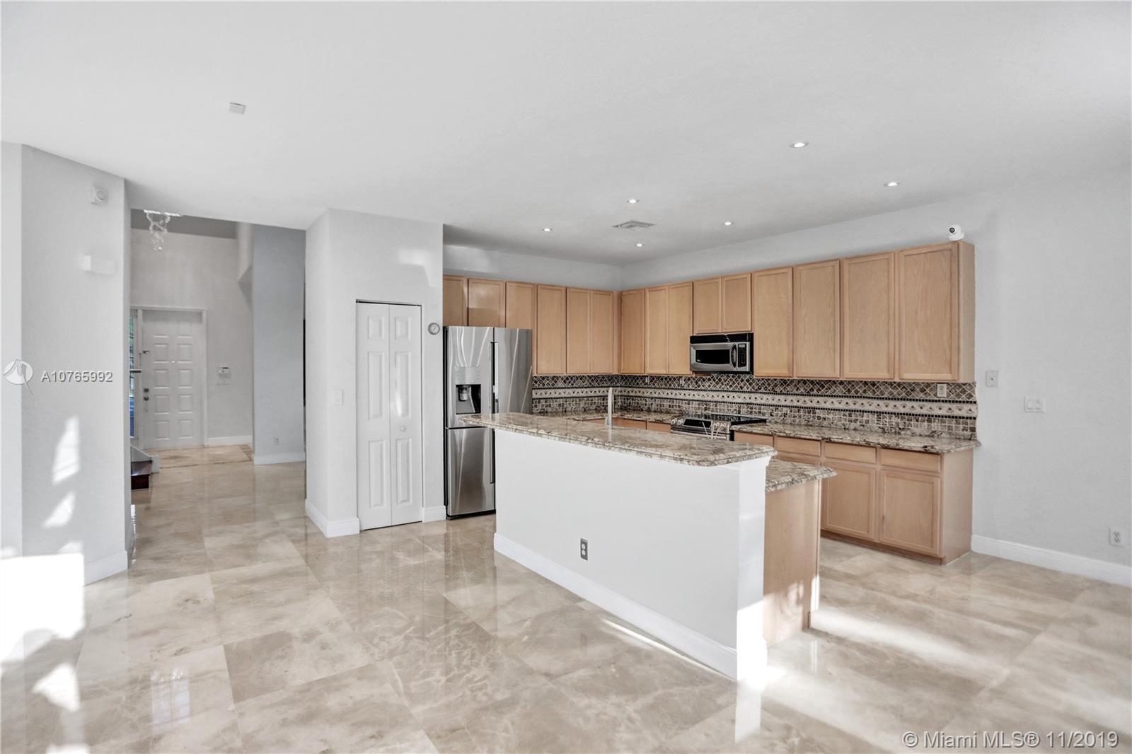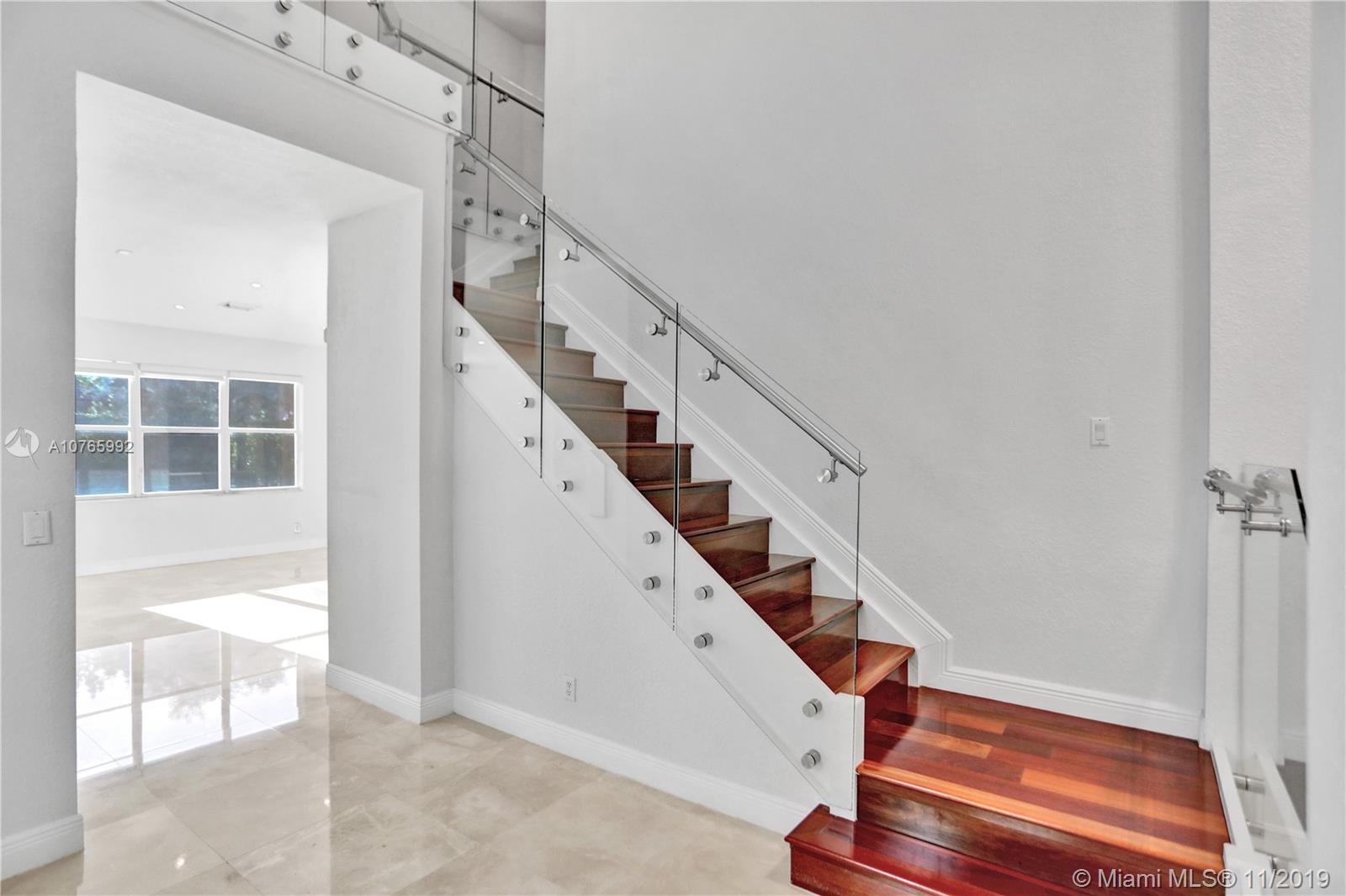 Looking for a home/tech move-in ready home? Come and see this astonishing 5BR/4BA home located in the Prestigious Community of Isles of Weston. The house sits on a cul de sac with an open pie shape lot. The first floor has a beautiful marble floor through/2nd floor has Brazilian hardwood floor through. Wireless control of the refrigerator, garage door, sprinkler system, and the lights. The spacious upgraded family room comes with a built-in electric fireplace along with a bar with a wine cooler. There is one bedroom downstairs with a fully renovated bathroom. The appliances /AC are less than 2 years old. Glass railing on the stairs along with crystal chandeliers gives that touch of modern. Laundry room upstairs. Accordion shutters.Association fees include internet, cable, alarm, clubhouse