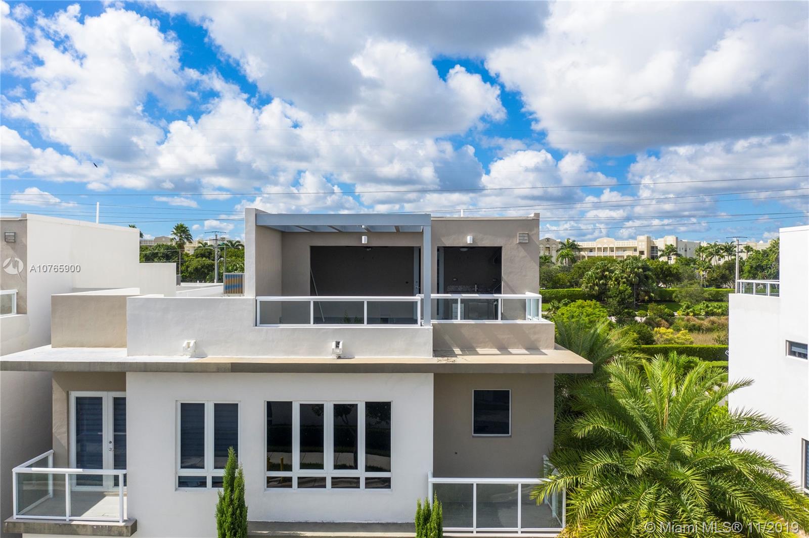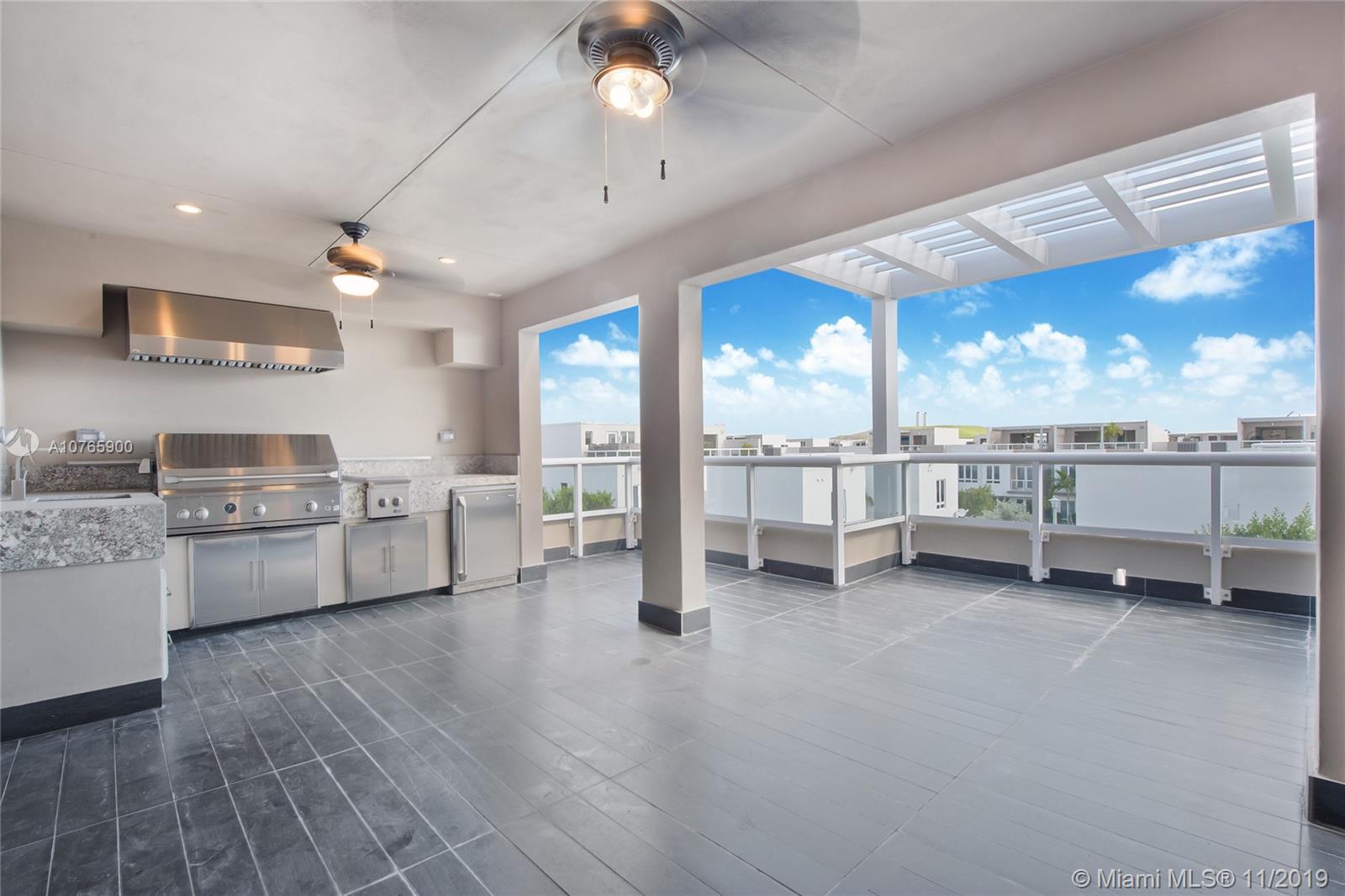 Welcome to this luxurious, three-story, corner townhome at LandMark! This exquisite, Skyview unit was built for the family who enjoys entertaining guests and living a posh and comfortable lifestyle. This Smart townhome features an open floor plan with large windows to allow light to filter in; a courtyard that is perfect for cozy dinner plans and a rooftop terrace with a summer kitchen and a view for larger affairs; custom cabinetry and quartz countertops; top of the line, kitchen appliances complete with a baker's oven, glass top range with hood and wine cooler; impact windows and doors; and separate guests quarters. Enjoy all the community has to offer, including a private juice bar, fitness center and tennis courts. Be quick! This unique townhome is the most affordable of its kind.
