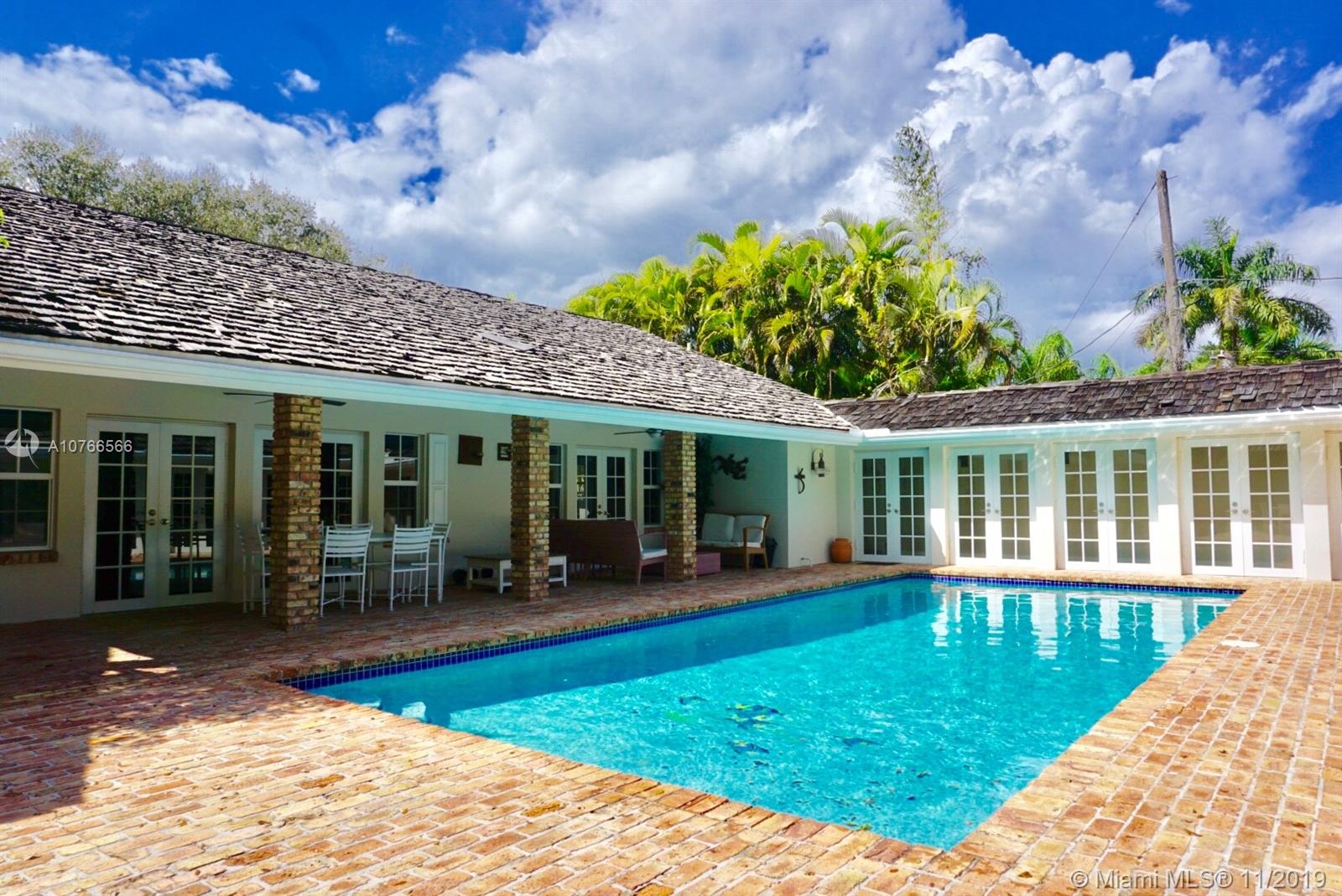 New England style home in North Pinecrest. This beautiful house is nestled in an amazing lot surrounded by mature Oak trees. Entertaining areas have direct access to Chicago brick roofed patio, sparkling pool and beautiful backyard. Spacious family room with chimney perfect for gatherings. The main house has 5 bedrooms and 4 remodeled bathrooms and wood floors. Hurricane impact windows throughout. House is hooked up and ready to install a generator. The cottage has 1 Bedroom and 1 Bath and a two car garage with high ceilings that can easily be converted into a 2 bedroom house with good size living area, an art studio or a generous home office.