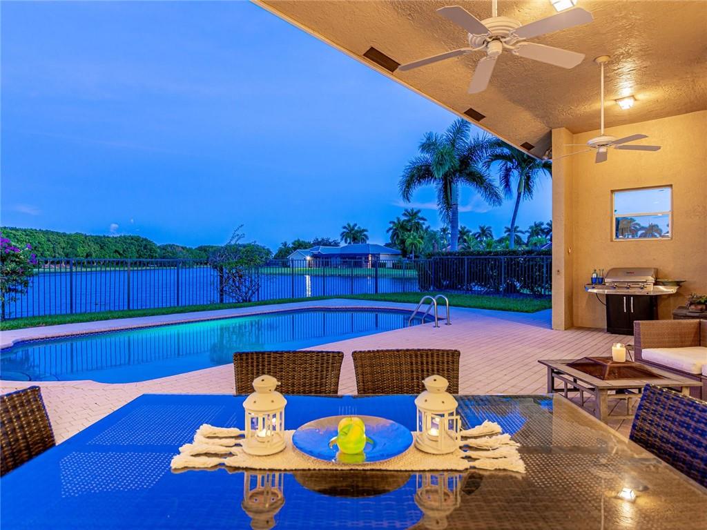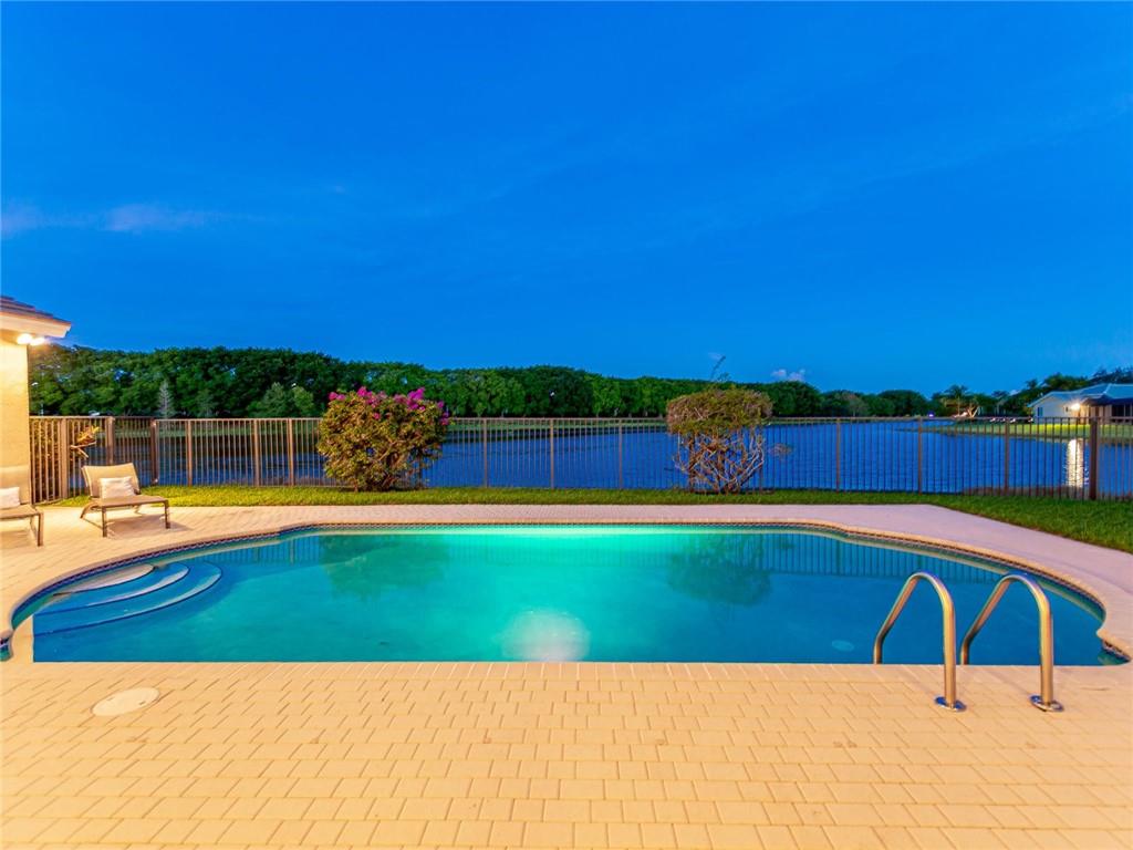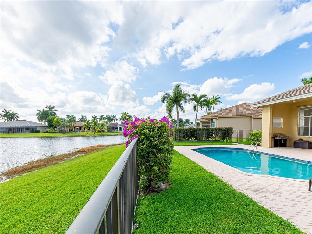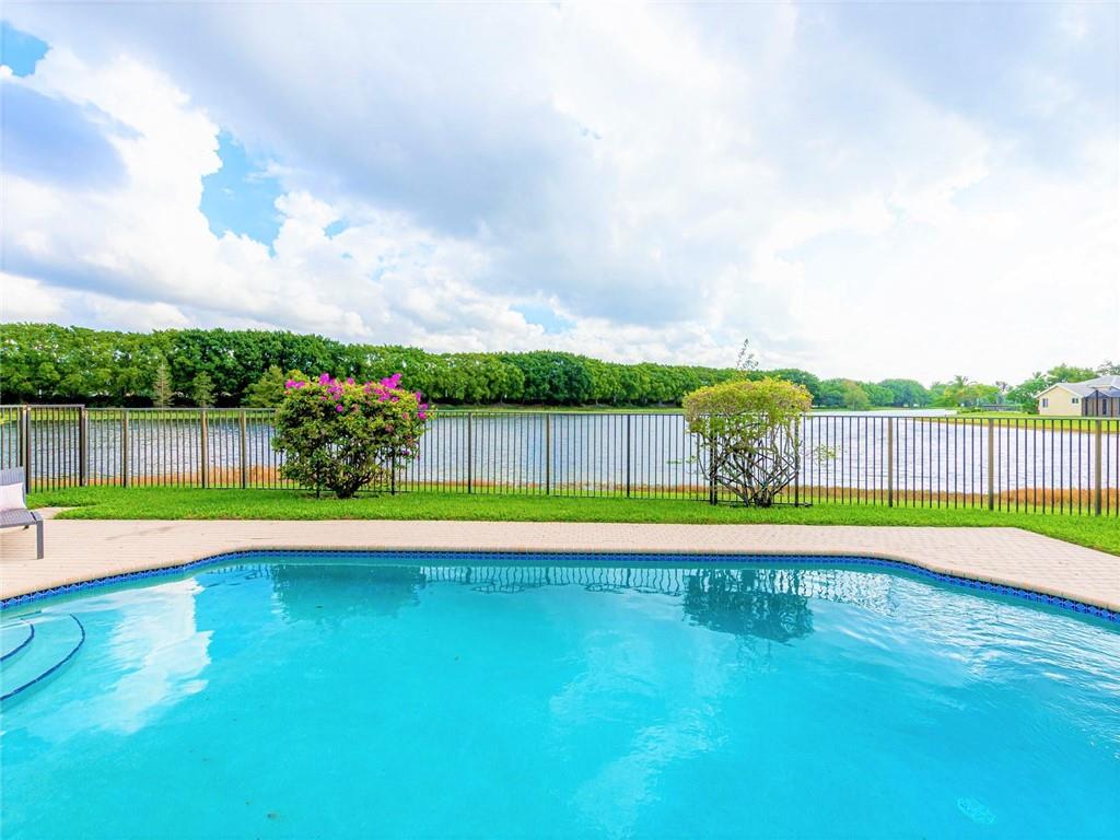 Situated on a spectacular pie-shaped lakefront lot of 0.35 acres with extensive water views ending with Weston Hills tour course in the near distance, this custom 5BD/3.5BA/3CG single story boasts a large extended covered patio with covered BBQ grill niche, pool & fully fenced yard, perfect for outdoor entertaining! Brand new roof 2019! Spacious, light, bright, triple split floor plan w/ high volume ceilings & views from almost everywhere! Huge granite kitchen with tall white cabinetry, large center island, walk-in pantry, newer stainless appliances & modern lighting over snackbar. Cabana style bathroom with guest suite off family room is perfect as in-law suite. Adjacent to master suite is a den with closet, great as office or nursery. (Pls see Broker Remarks for some post closing info.)
