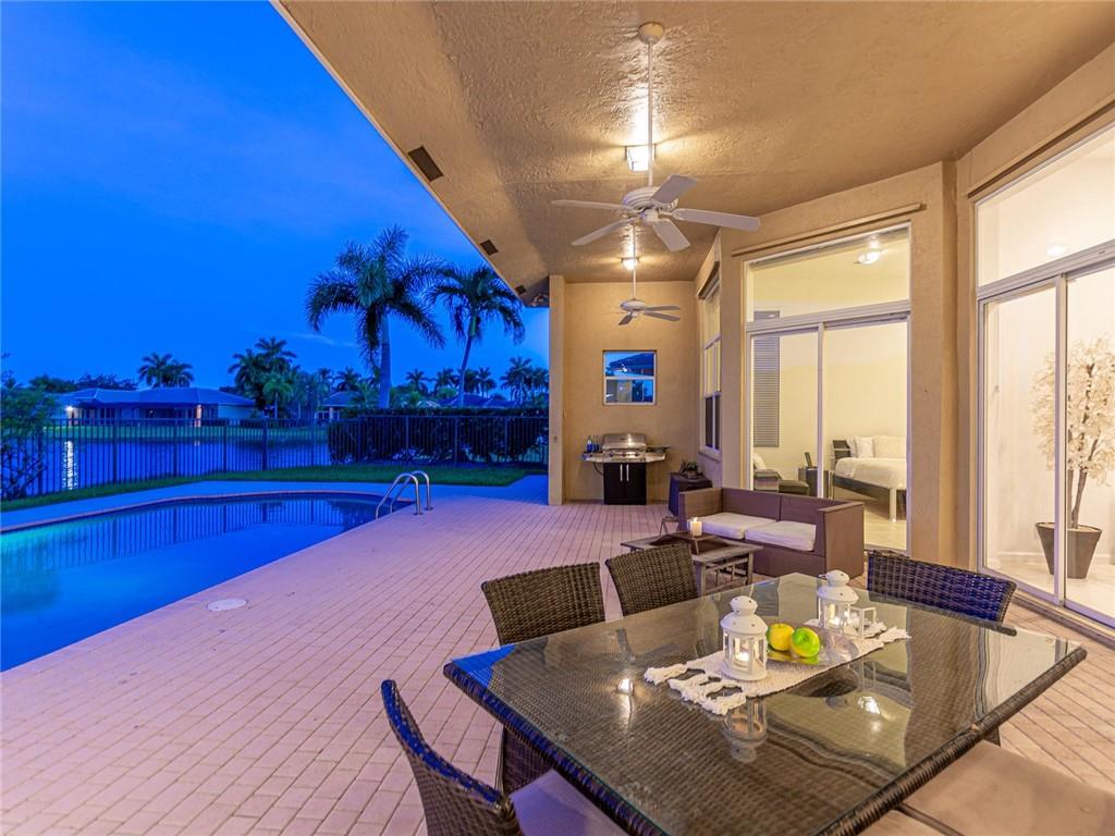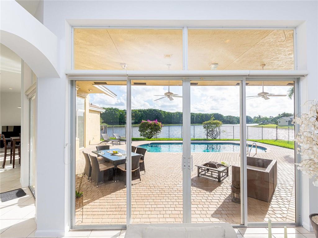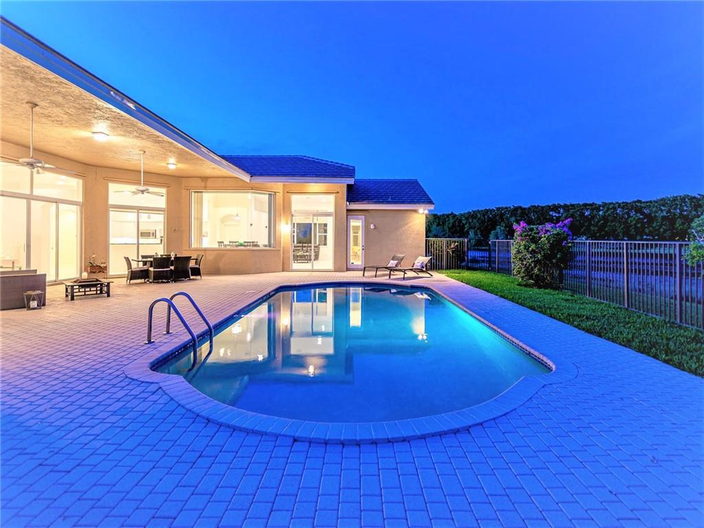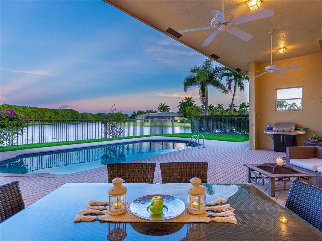 Situated on a spectacular pie-shaped lakefront lot of 0.35 acres with extensive water views ending with Weston Hills tour course in the near distance, this custom 5BD/3.5BA/3CG single story boasts a large extended covered patio with covered BBQ grill niche, pool & fully fenced yard, perfect for outdoor entertaining! Brand new roof 2019! Spacious, light, bright, triple split floor plan w/ high volume ceilings & views from almost everywhere! Huge granite kitchen with tall white cabinetry, large center island, walk-in pantry, newer stainless appliances & modern lighting over snackbar. Cabana style bathroom with guest suite off family room is perfect as in-law suite. Adjacent to master suite is a den with closet, great as office or nursery. (Pls see Broker Remarks for some post closing info.)
