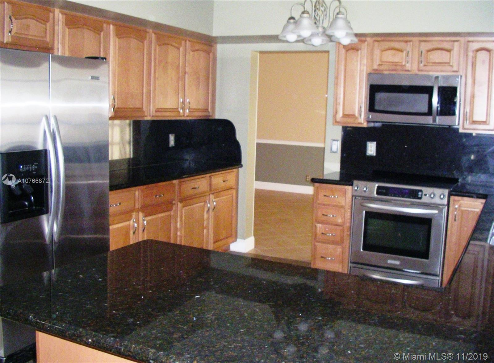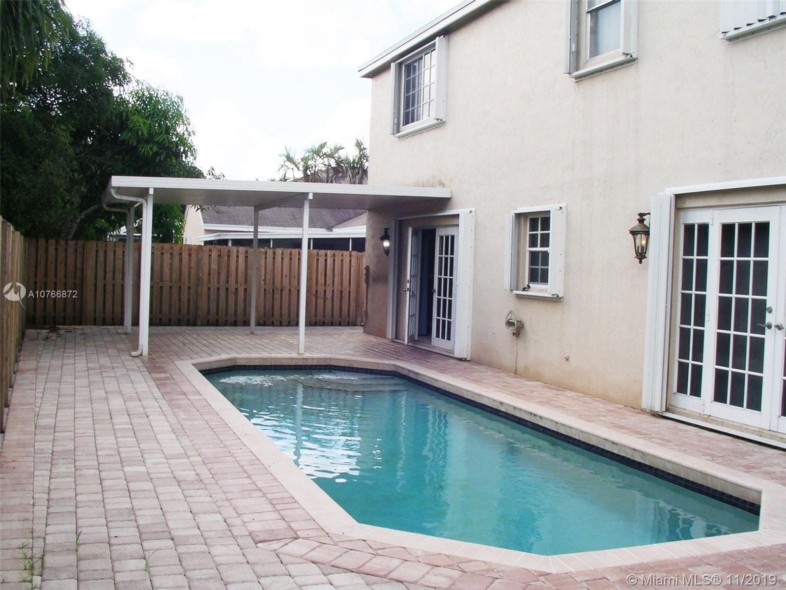 If you're looking for distinction in a Miramar-River Run home, this superbly upgraded 2-story, 4-bed 2.5-bath home with a pool is beyond elegance and is worth a look. Wake up looking forward to a stunning interior with 18x18 tiles and its large upgraded kitchen featuring black granite counters and back-splash and wide raised counter, stainless appliances, and plenty of wood cabinetry. The over-sized family room can accommodate many furnishings and accessories, and leads out to the large fenced paver patio through french doors with a refreshing 14x20 pool and covered area. The foyer entry leads to a spacious living / dining area with an elegant volume ceiling. Go upstairs and find a large master bedroom with an elegantly upgraded master bath, and laminate floors throughout 2nd floor.