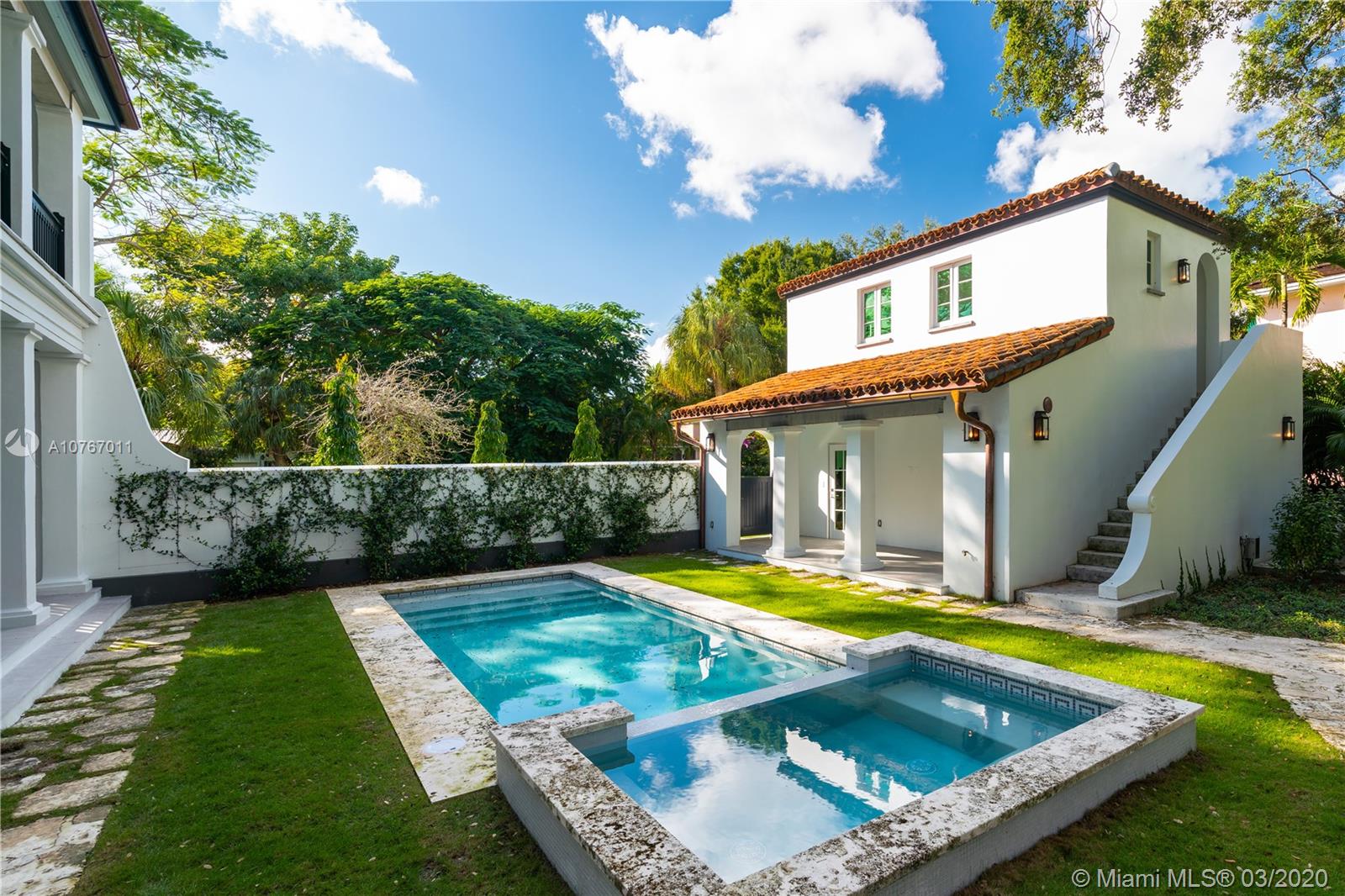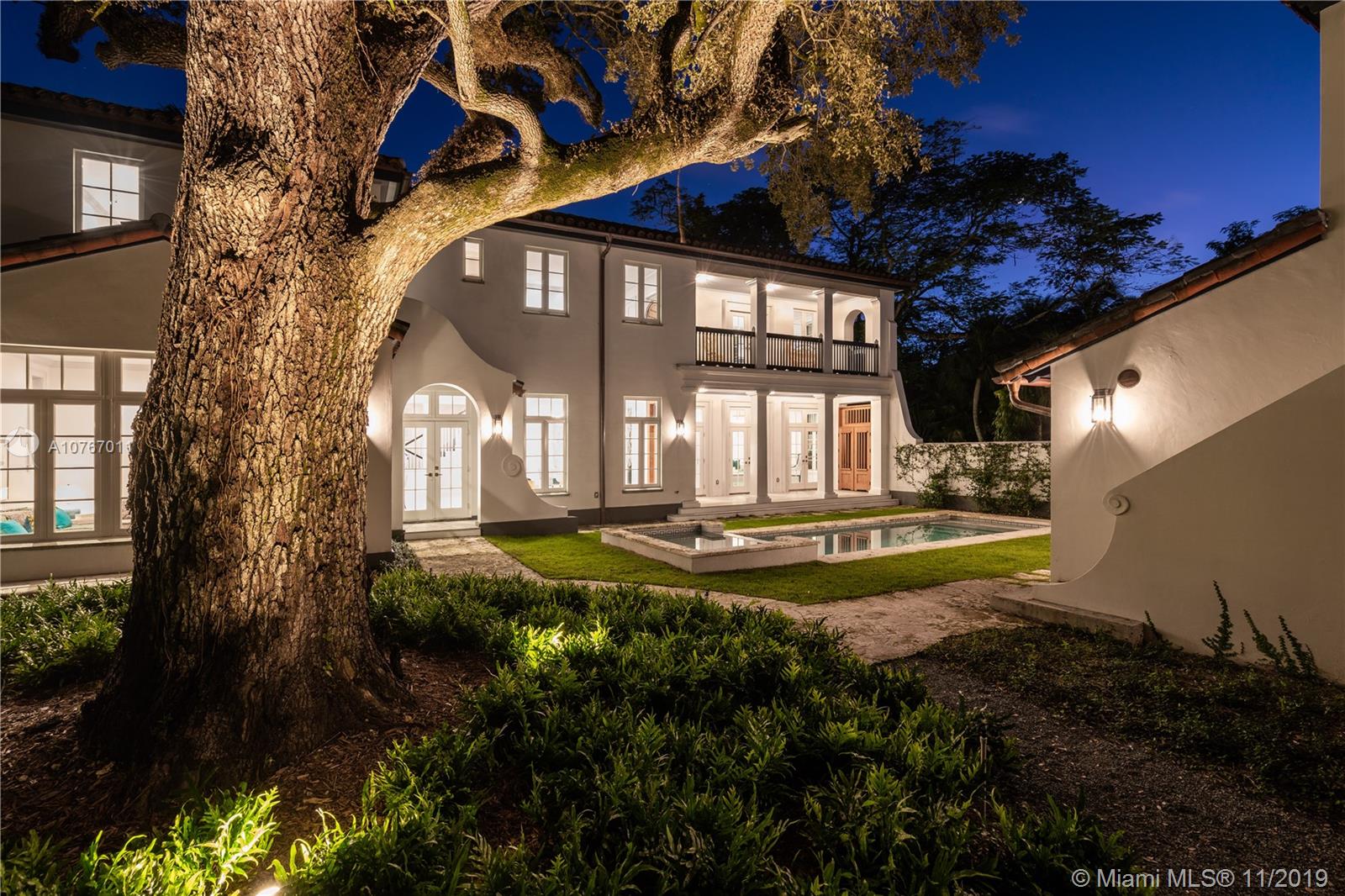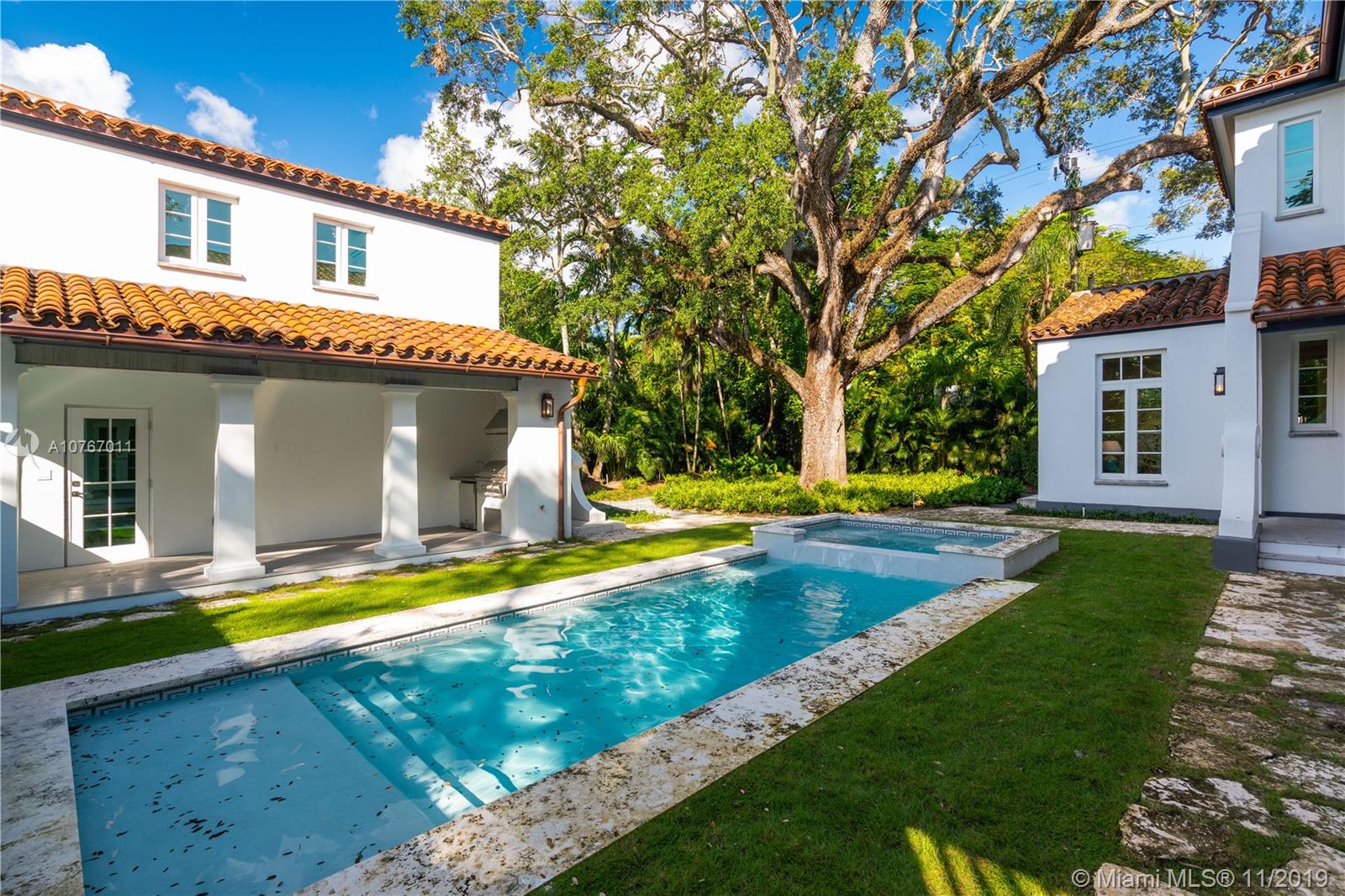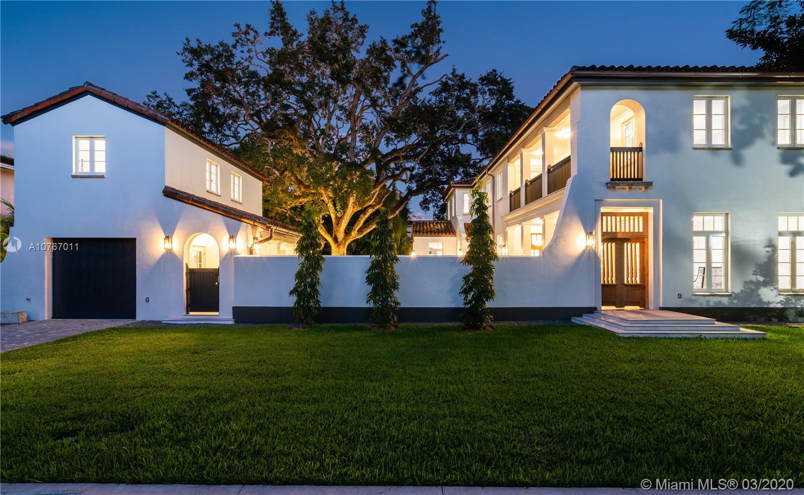 Over $200,000 Price Adjustment, Easy to show. Stunning new custom home offers unparalleled Coral Gables living. This 2-story home with detached garage and guest suite is located blocks from the Biltmore Hotel and Granada Golf Course. Its lushly landscaped yard, centered around a century old oak tree, boasts a heated pool, spa and summer kitchen and was thoughtfully created for year round use. The home has over 4,500+ SF adj. with 4 bdrs, each with adjoining bathrooms in the main house, in addition to 1 guest suite located over the garage. Master Suite amenities includes a midnight kitchen, steam shower and walk-in closet. The ground floor open plan, anchored by the gourmet kitchen outfitted top of the line appliances. This bespoke home was just awarded a 2019 ICAA Award.