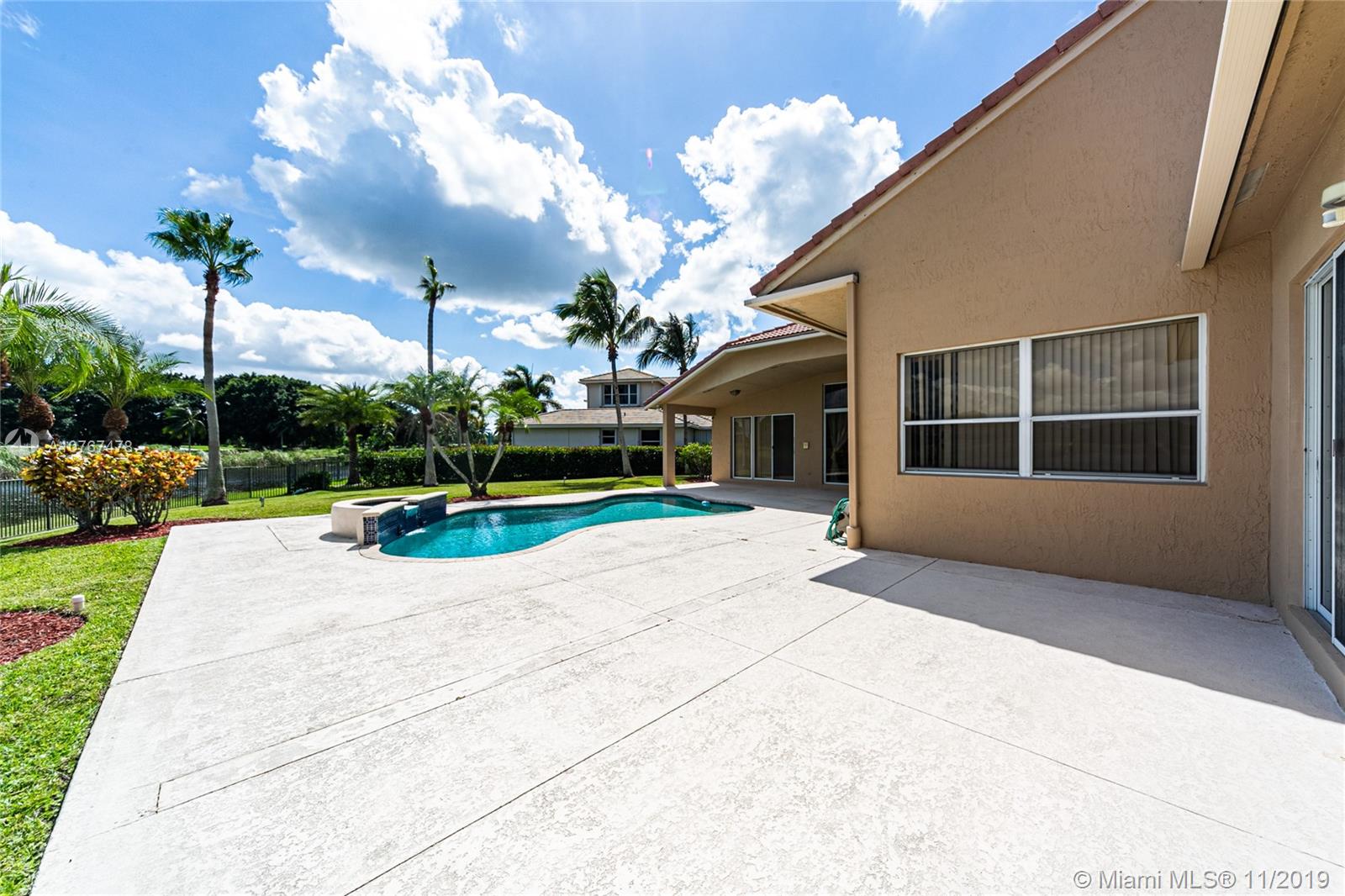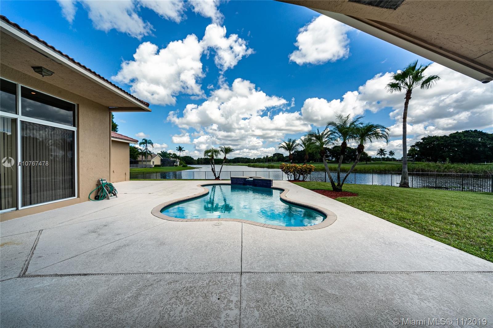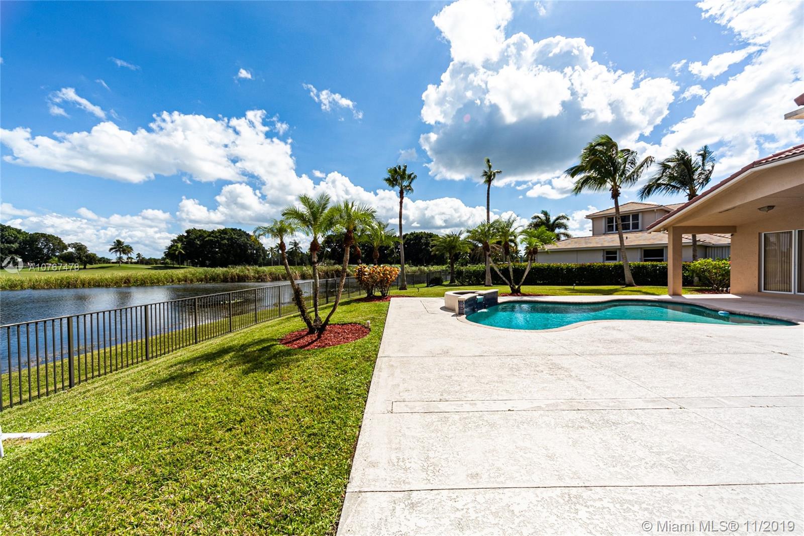 LIVE IN A SPACIOUS HOME IN EXCELLENT CONDITION, LOCATED ON A FABULOUS PRIVATE LOT ON A CUL DE SAC STREET. 5BR/3BA. WITH LAKEFRONT AND GOLF COURSE VIEW, FEATURES: SPLIT FLOOR PLAN,OFFERS A GREAT OUTDOOR SPACE, TERRACE, BACKYARD, JUST PAINTED, ATTRACTIVE LANDSCAPING, GRANITE COUNTER TOPS, OPEN KITCHEN, ELEGANT DINING/LIVING, 2 CAR GARAGE, POOL, PERFECT HOUSE FOR ENTERTAINING FOR YOU AND YOUR FAMILY.