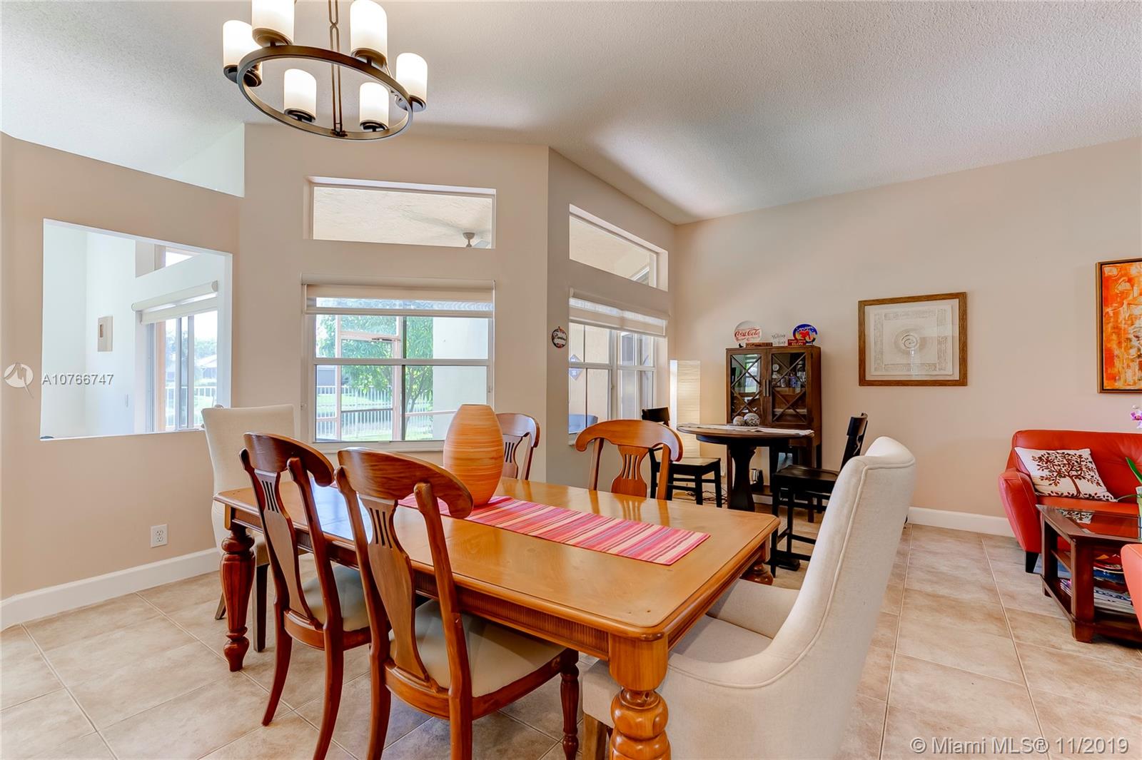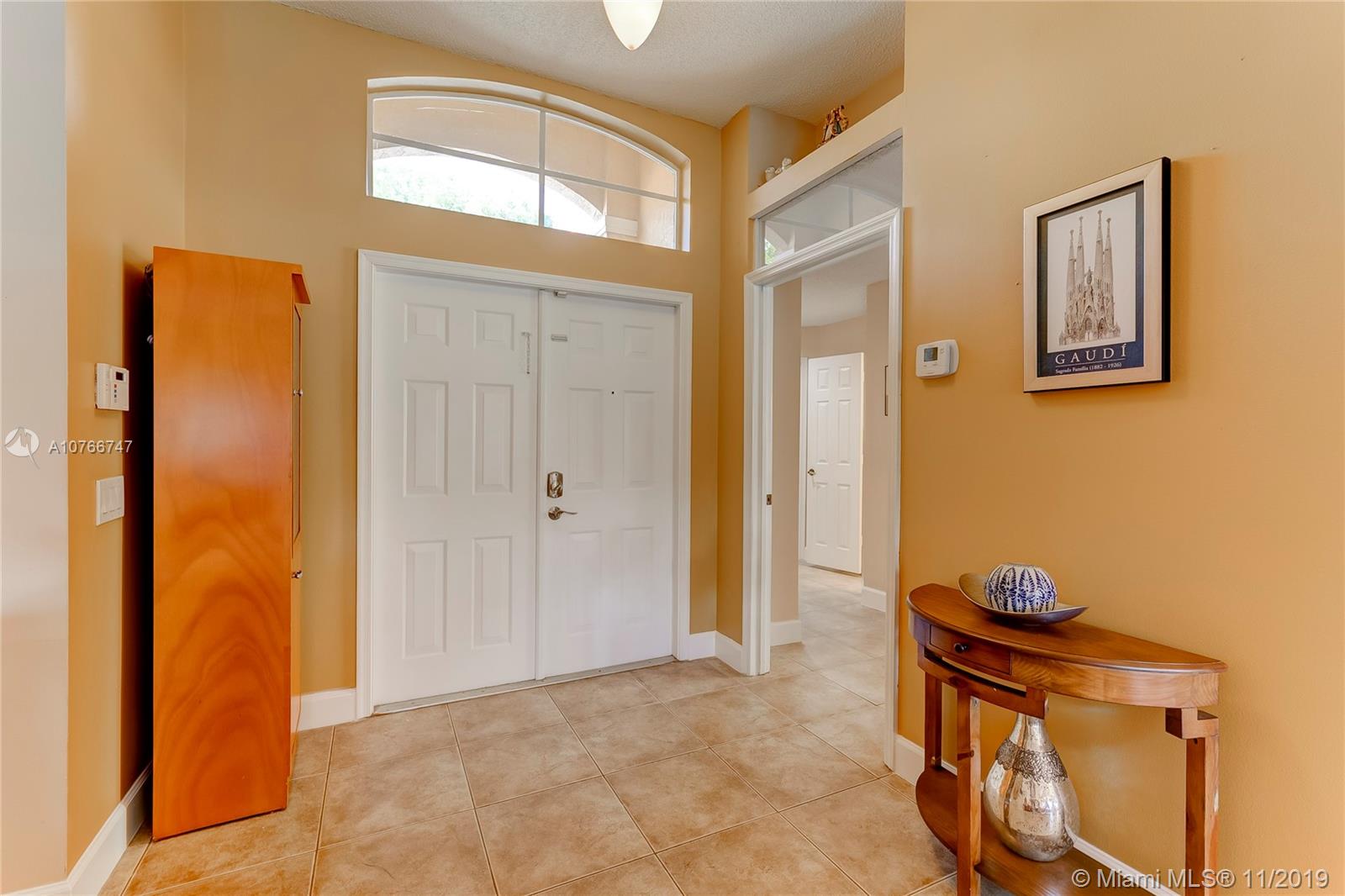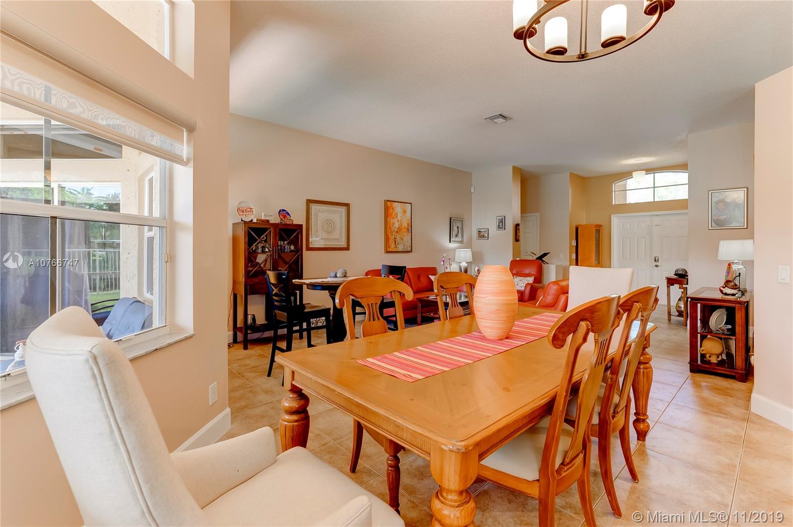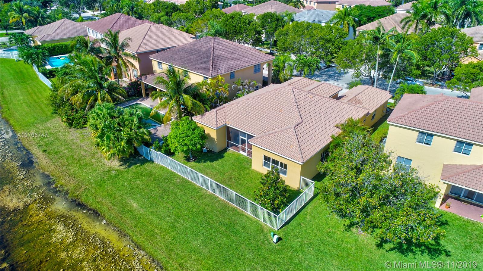 This incomparable well cared home is located in the famous subdivision of Savanna with the best club house in Weston offering resort style amenities. The floor plan shows spaciousness in the main living areas with great lake views. The split bedroom design has the master bedroom on the right side of the home and 3 other bedrooms on the left side. High ceilings. All bathrooms updated, kitchen with cooking island, elegant tile floors through out the home. Enjoy the sunset and views to the serene lake from the covered screened patio and fenced green backyard. This community counts with two gated entrance 24 hour security, A+ rated schools, parks, shopping, restaurants and easy access to I75.