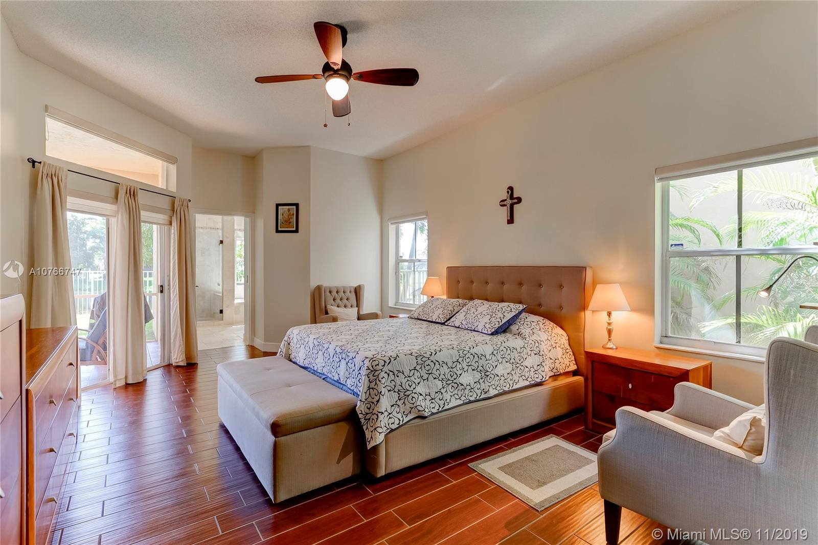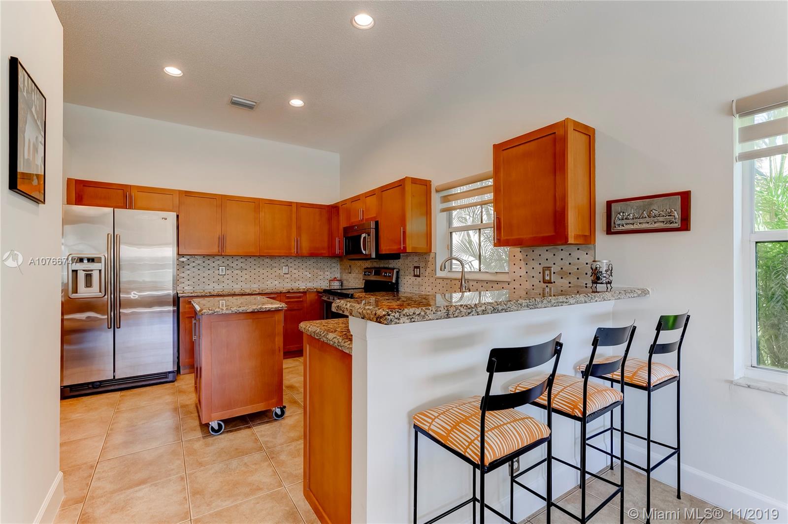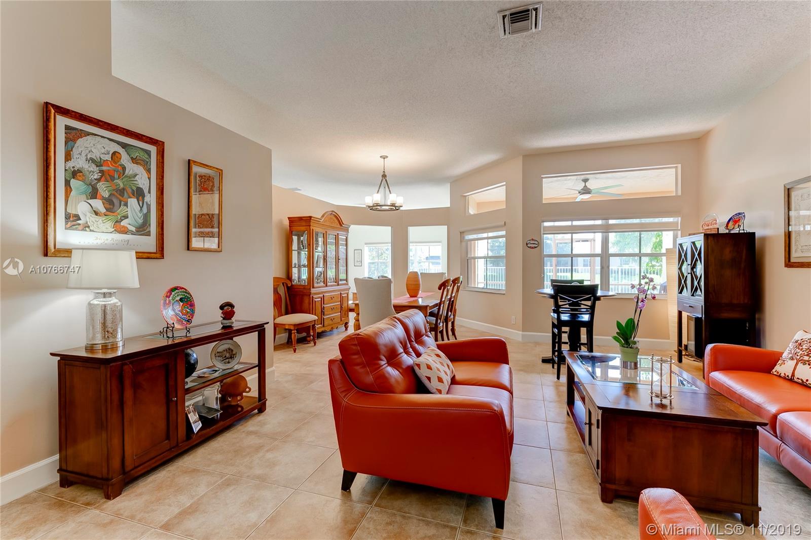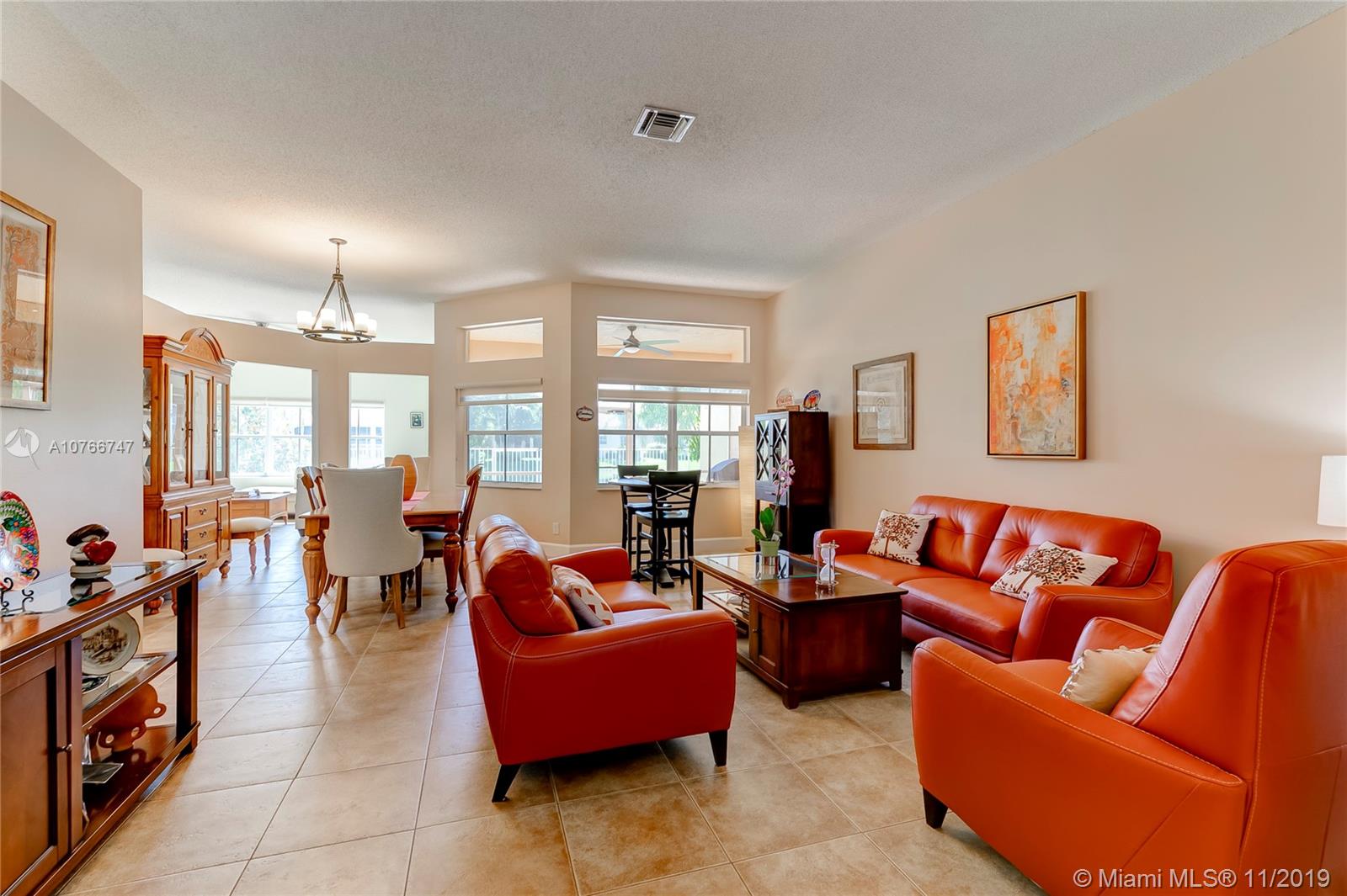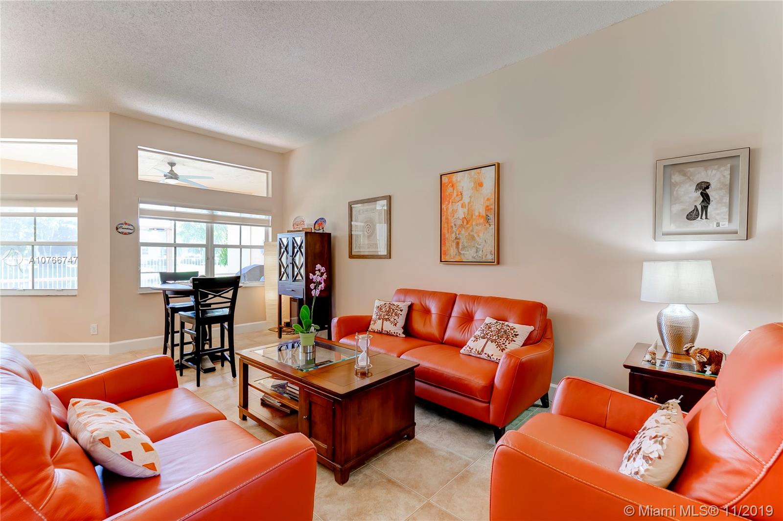 This incomparable well cared home is located in the famous subdivision of Savanna with the best club house in Weston offering resort style amenities. The floor plan shows spaciousness in the main living areas with great lake views. The split bedroom design has the master bedroom on the right side of the home and 3 other bedrooms on the left side. High ceilings. All bathrooms updated, kitchen with cooking island, elegant tile floors through out the home. Enjoy the sunset and views to the serene lake from the covered screened patio and fenced green backyard. This community counts with two gated entrance 24 hour security, A+ rated schools, parks, shopping, restaurants and easy access to I75.