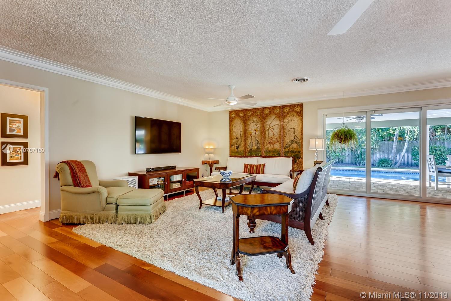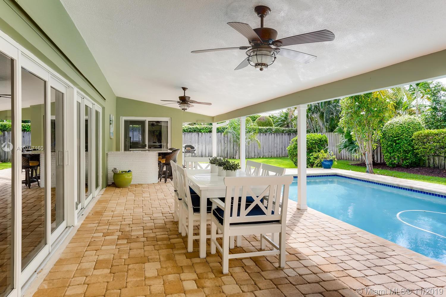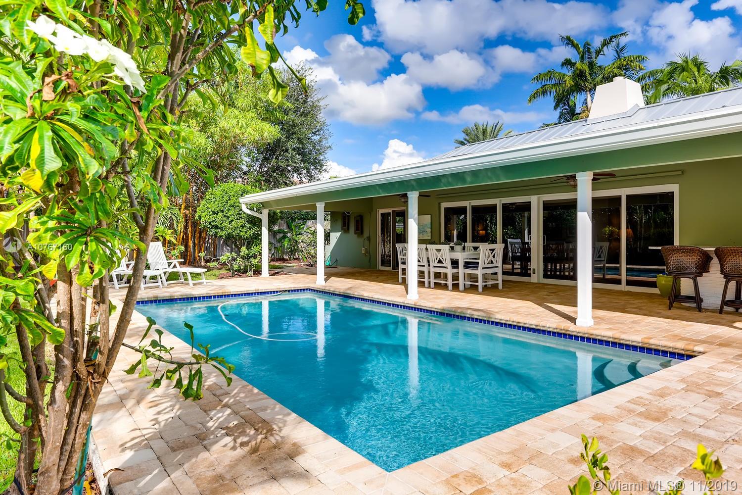 This exquisite Coral Ridge Country Club residence has it all! Prime location minutes away from the beach and walking distance to the golf course. 3 bedrooms, 2.5 bath with covered patio, patio wet bar and heated saltwater POOL! Home interiors include rich hard wood floors throughout, white cabinetry in kitchen with quartz counter-tops and stainless steel appliances. Main living area boasts pool views with a near full wall of sliding glass doors that can be opened wide to enjoy the Florida sea breeze in your tropical oasis. New roof, HVAC, A/C Ductwork, sprinkler system, impact Windows throughout entire home, and so much more. Schedule your showing today!