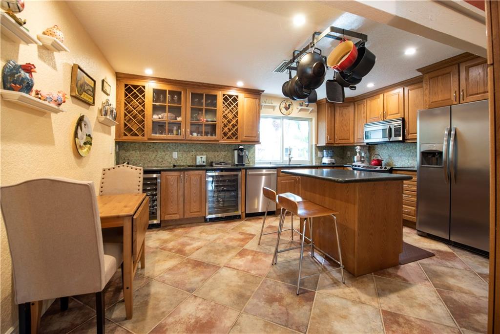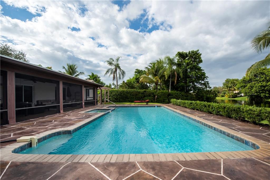 This is the house you have been looking for in desirable Rock Creek! Beautiful, fully upgraded, 4/2 house on a cul de sac, with a large pool, oversized lot, on the lake. This house has it all. Roof is only 3 years old. Impact windows throughout, updated large eat in kitchen with 2 wine fridges! Both bathrooms have been meticulously updated as well. Split plan with spacious bedrooms. AC is only 3 years old. Crown molding in all bedrooms; interior laundry room with newer washer and dryer; 12x40 screened in patio perfect for entertaining and with easy access to a large, heated pool & spa and beautiful lake view. Landscape lighting throughout exterior. There are too many upgrades to list. Call now to see. Do not miss out on this beautiful fully turn-ey home!