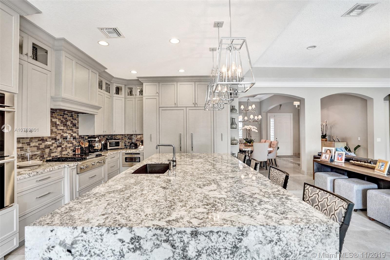 Magnificent highly upgraded home located in the heart of Davie. This home is truly a 10 !! From the moment you walk in you will be wowed by the10' high ceilings and the custom upgrades at each and every turn. Beautiful marble and wood flooring thru-out - high-end kitchen that would make any professional Chief happy. Custom cabinetry and top of the line appliances Viking - Thermador surround a gigantic 10' granite waterfall center island. Wood and natural stone media center are center stage in the living area. Custom window treatments thru-out. Summer kitchen with built-in grill and wet bar overlook the Spa - Pool area. Impact windows and Doors - 3 car garage. This home has it all!!